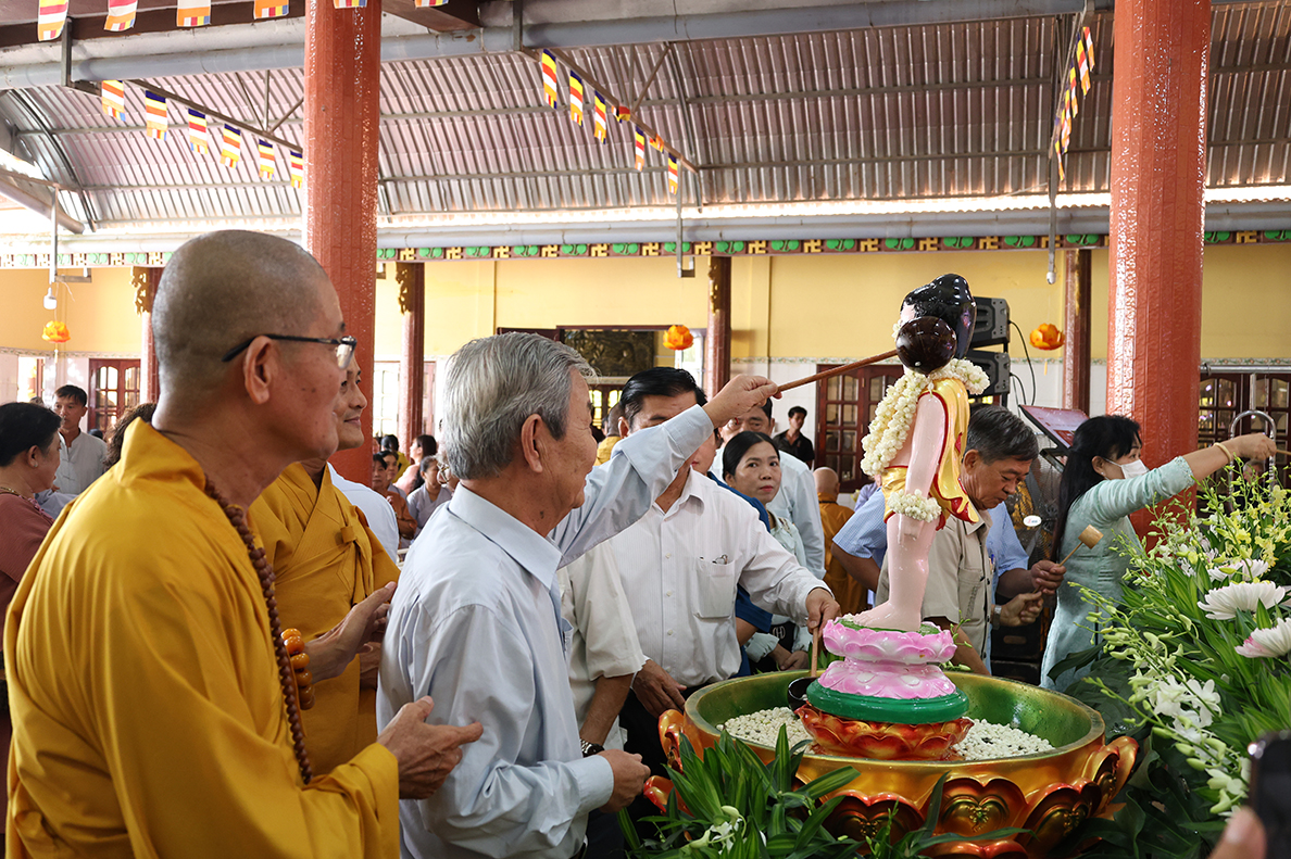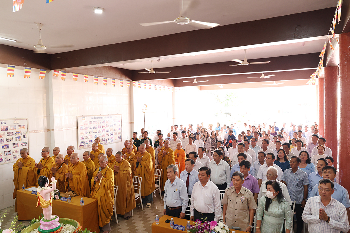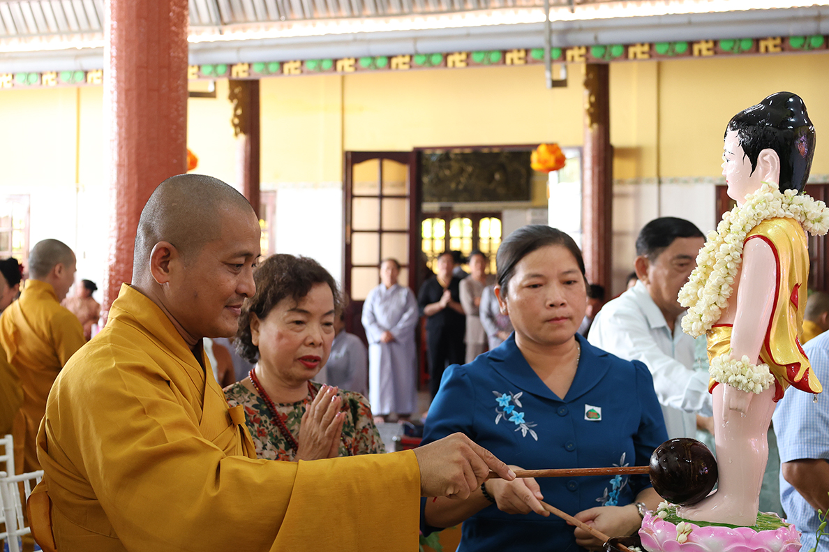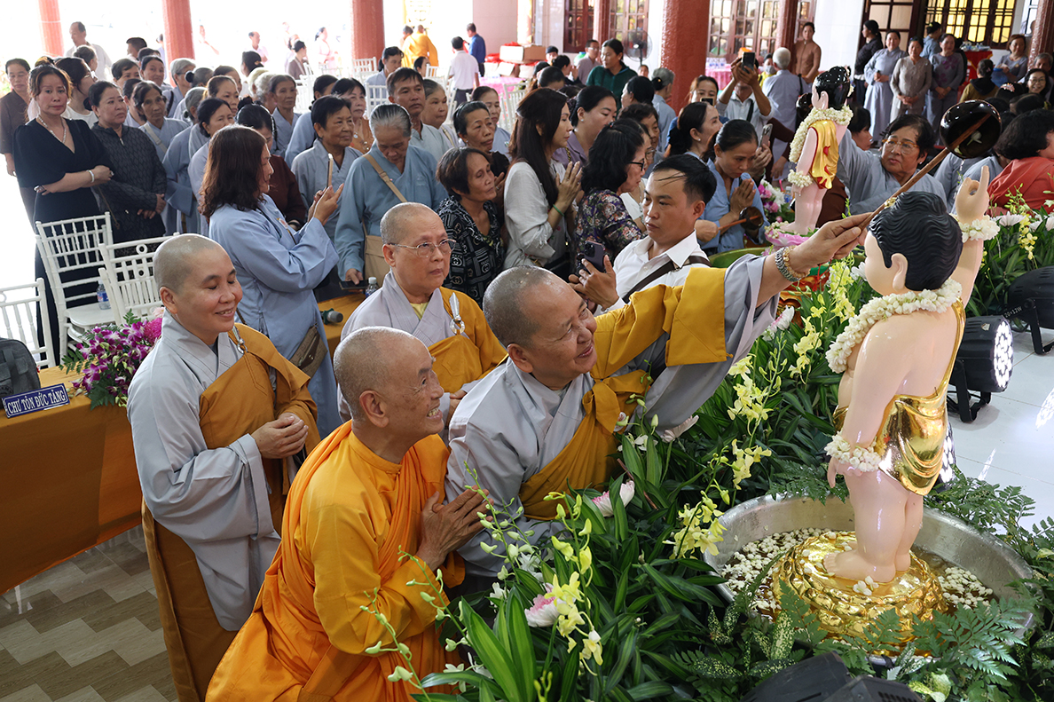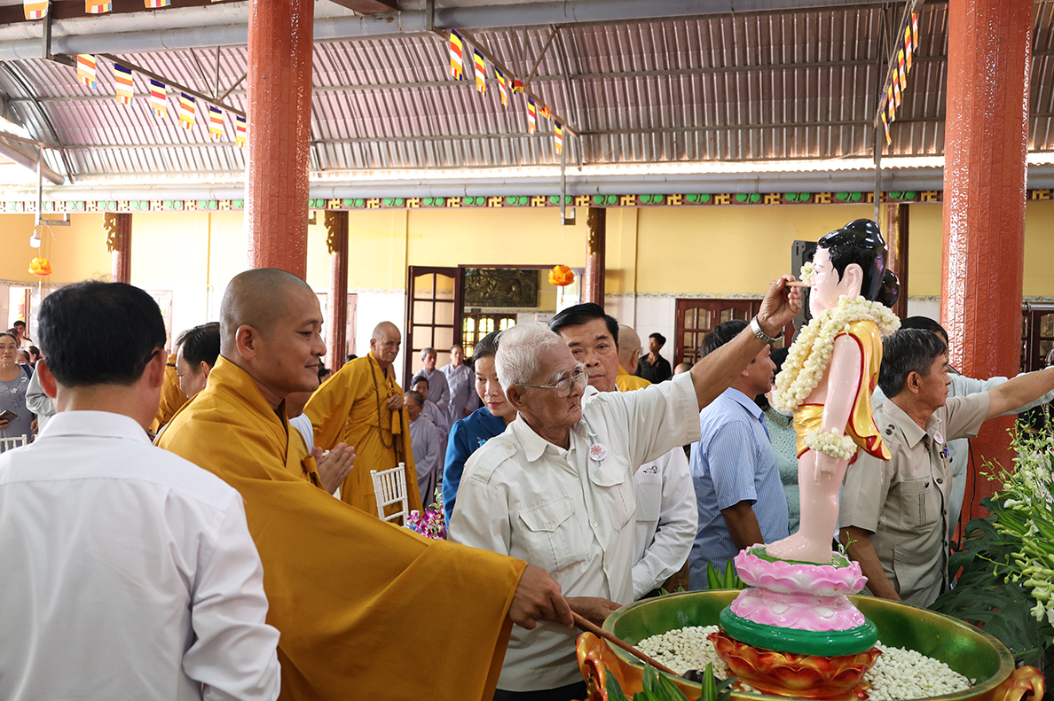 Buổi lễ được hoàn mãn sau lời phát biểu cảm tạ của TT. Thích Lệ Tấn – Trưởng BTS GHPGVN huyện. Sau lễ hành chính, Chư Tôn đức và lãnh đạo chính quyền đã trang nghiêm thực hiện nghi thức cúng dường Phật Đản và tưởng niệm Bồ-tát Thích Quảng Đức.