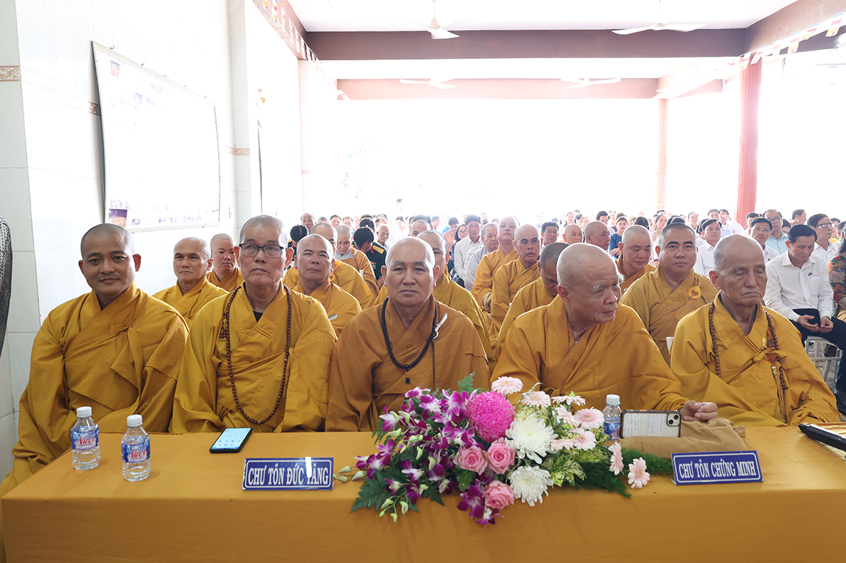 Quang lâm về chứng minh và tham dự buổi lễ có: HT. Thích Quảng Ý – Chứng minh BTS GHPGVN tỉnh Long An, huyện Tân Thạnh; HT. Thích Thiện Bình – Phó BTS kiêm Trưởng Ban Hoằng pháp GHPGVN tỉnh An Giang; HT. Thích Từ Thiện – Chứng minh BTS GHPGVN huyện Tân Trụ; ĐĐ. Thích Lệ Duyên – Phó ban kiêm Chánh Thư ký BTS GHPGVN tỉnh, Trưởng BTS GHPGVN huyện Đức Hòa; TT. Thích Lệ Tấn – UVTT BTS GHPGVN tỉnh, Trưởng BTS GHPGVN huyện Tân Thạnh; cùng Chư Tôn đức Ban Thường trực BTS GHPGVN huyện Tân Thạnh, Chư Tôn đức các tự viện trong huyện đồng về tham dự.