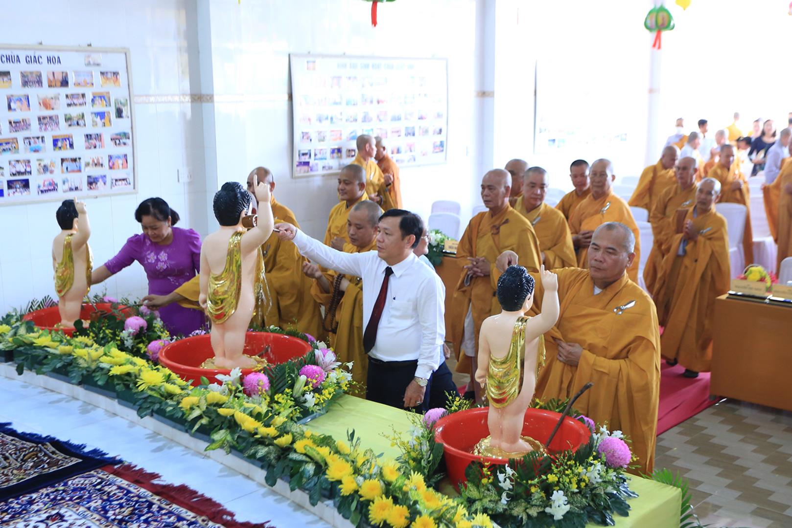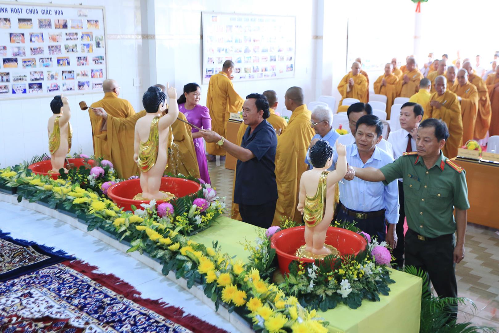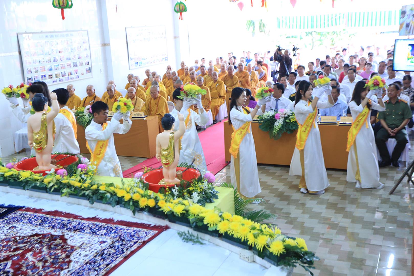 Sau lễ hành chính, Nghi thức Tắm Phật được diễn ra trong không khí trang ngiêm, trọng thể.