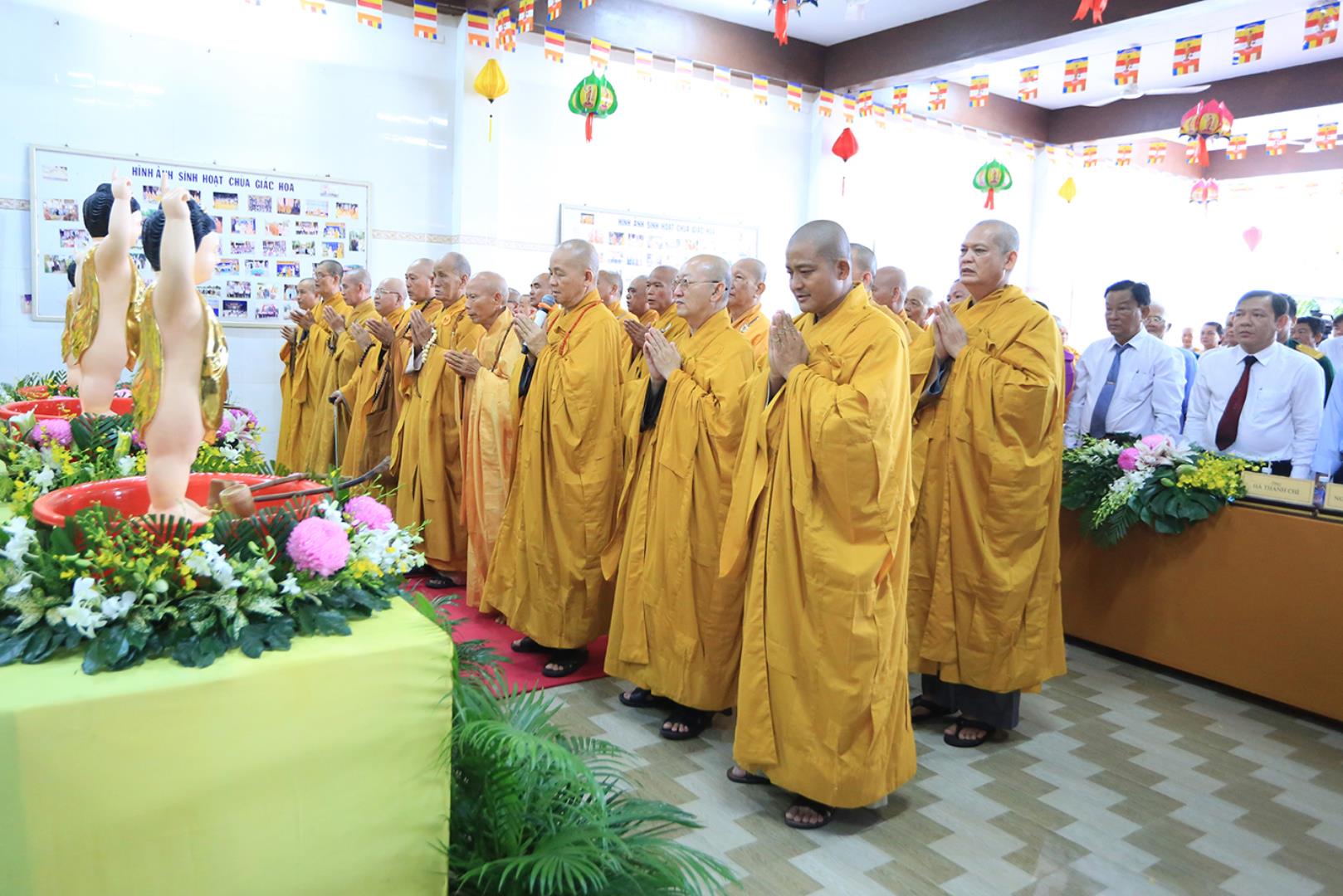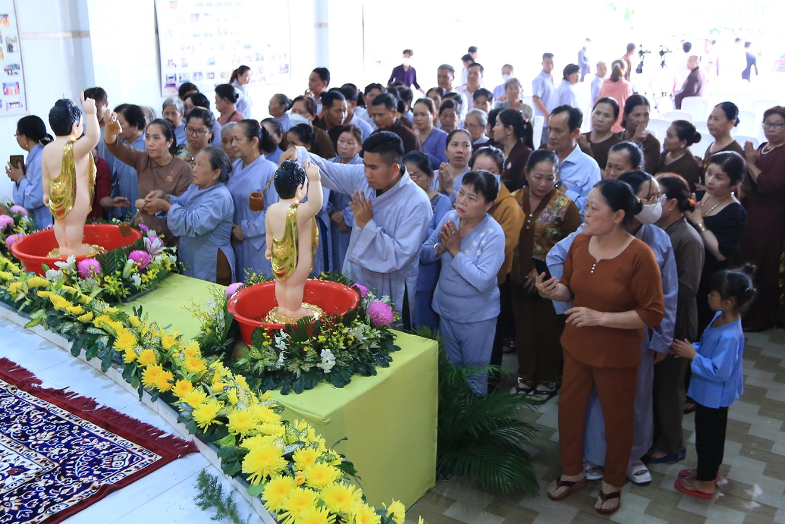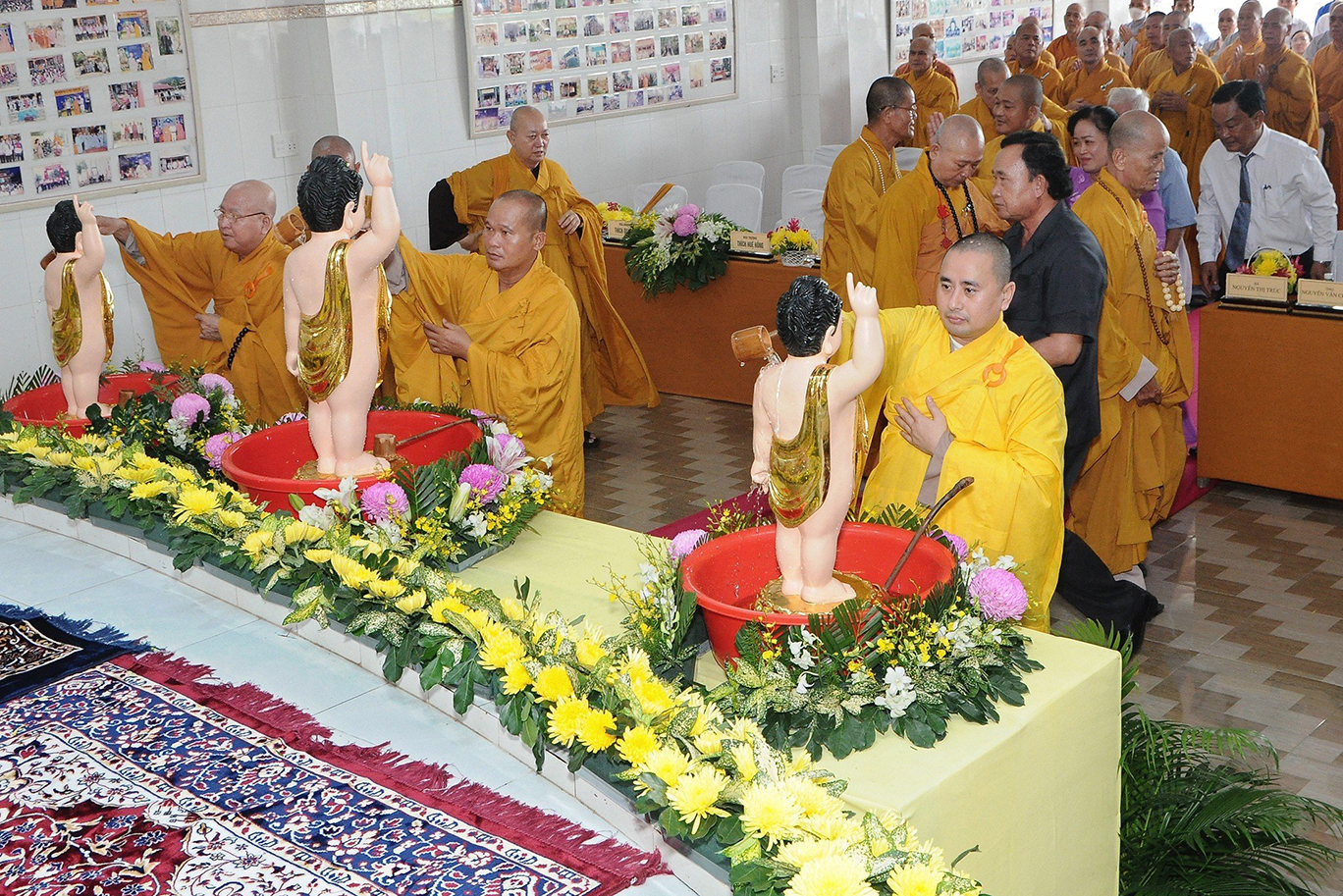 Sau lễ hành chính, Nghi thức Tắm Phật được diễn ra trong không khí trang ngiêm, trọng thể.