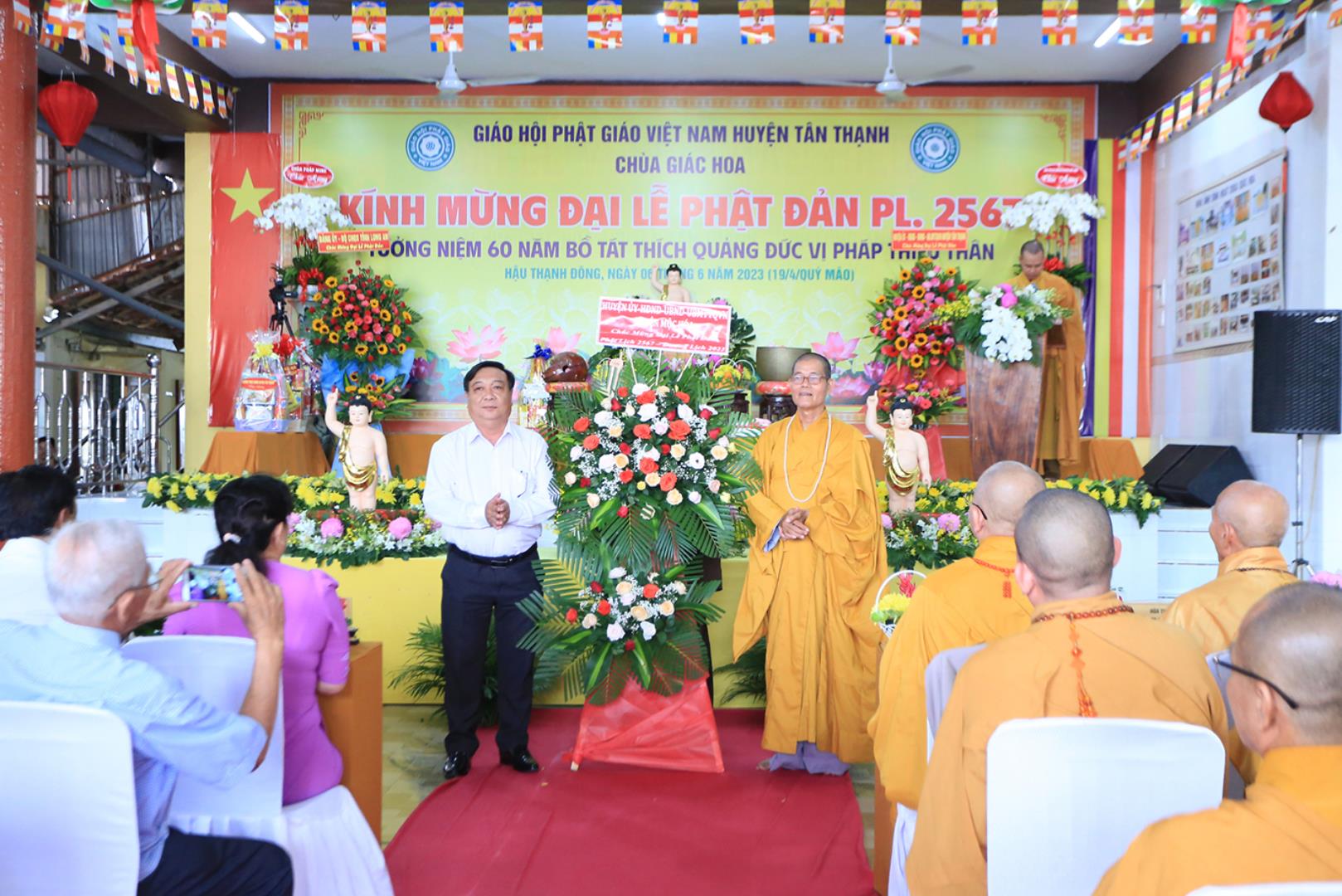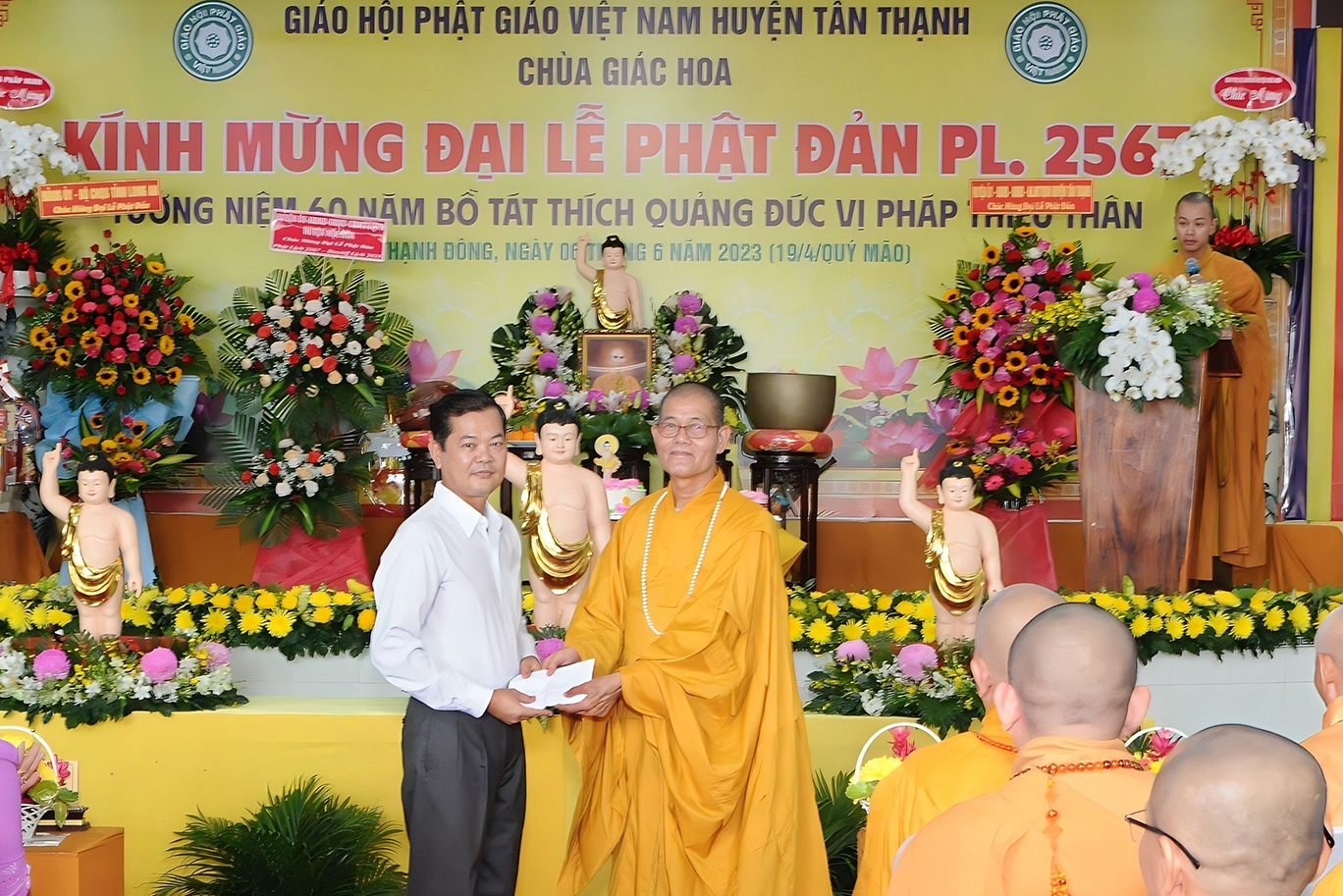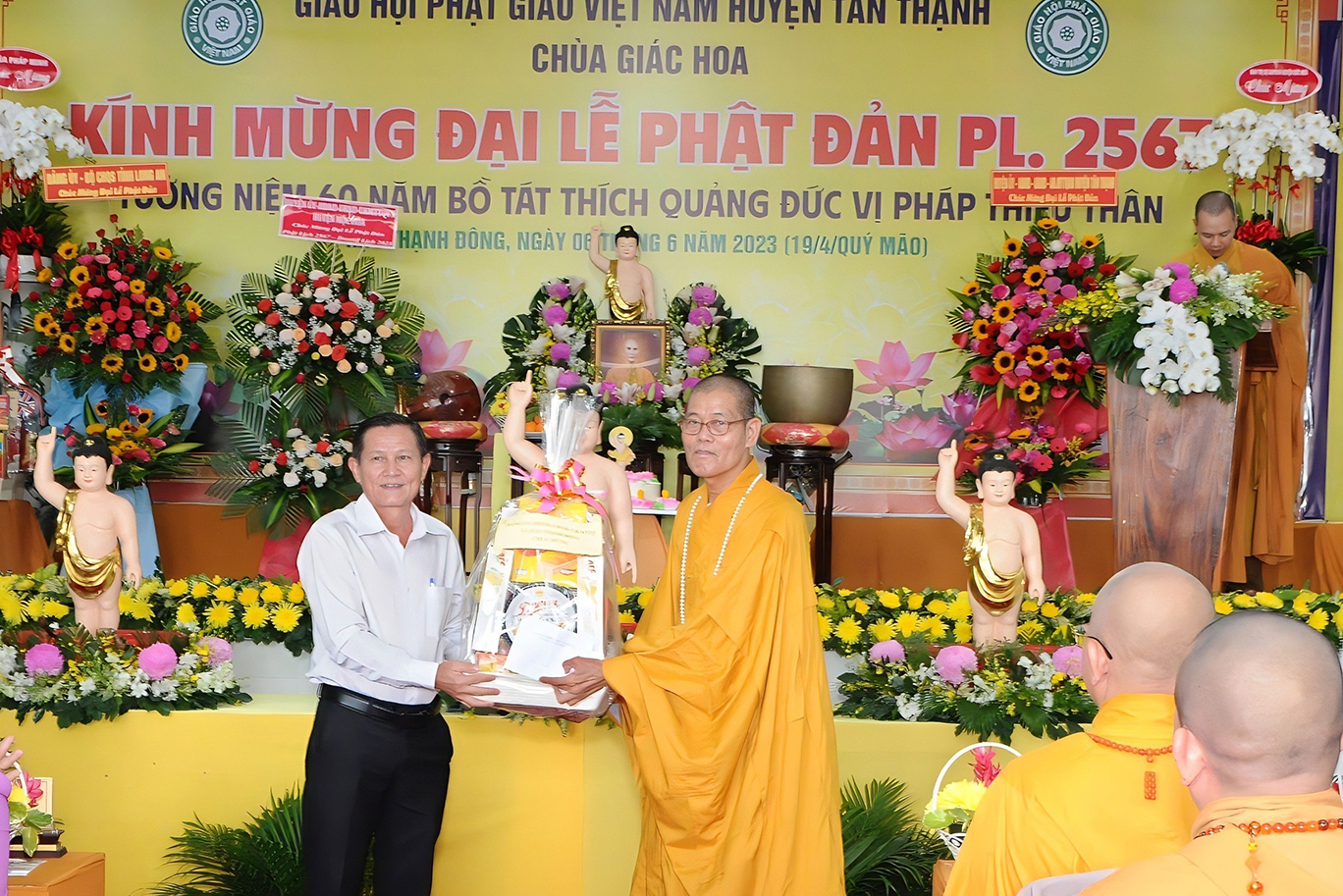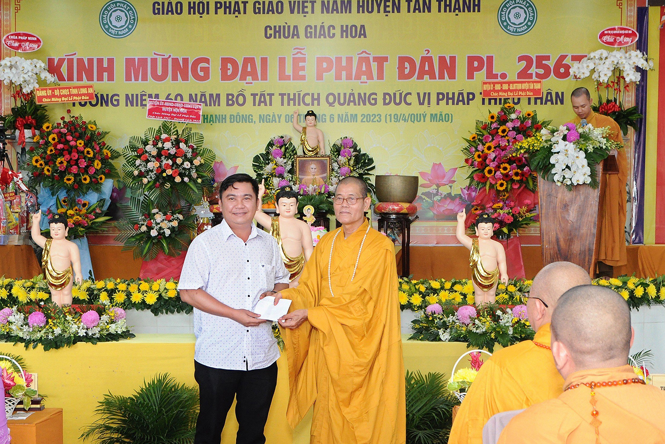 Sáng ngày 06 tháng 6 năm 2023 (19/4/Quý Mão), tại chùa Giác Hoa, xã Hậu Thạnh Đông, huyện Tân Thạnh, tỉnh Long An, TT. Thích Lệ Tấn – UVTT BTS GHPGVN tỉnh Long An, Trưởng BTS GHPGVN huyện Tân Thạnh, Trụ trì chùa Giác Hoa long trọng tổ chức Đại Lễ Phật Đản Phật lịch 2567 – Dương lịch 2023 và Tưởng niệm 60 năm Bồ tát Thích Quảng Đức vị pháp thiêu thân (1963-2023).