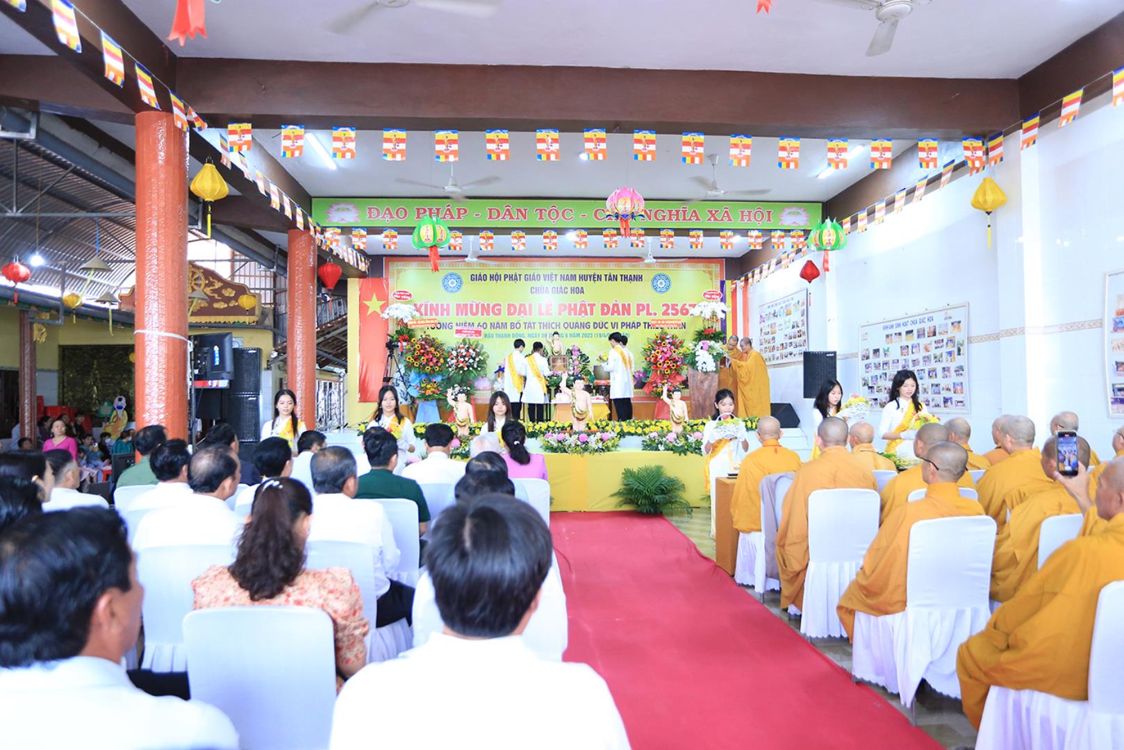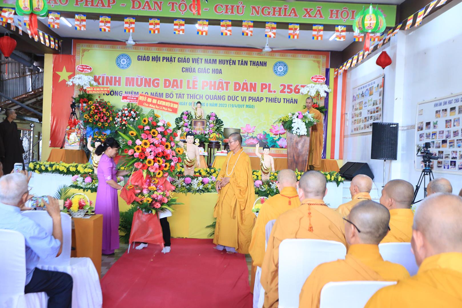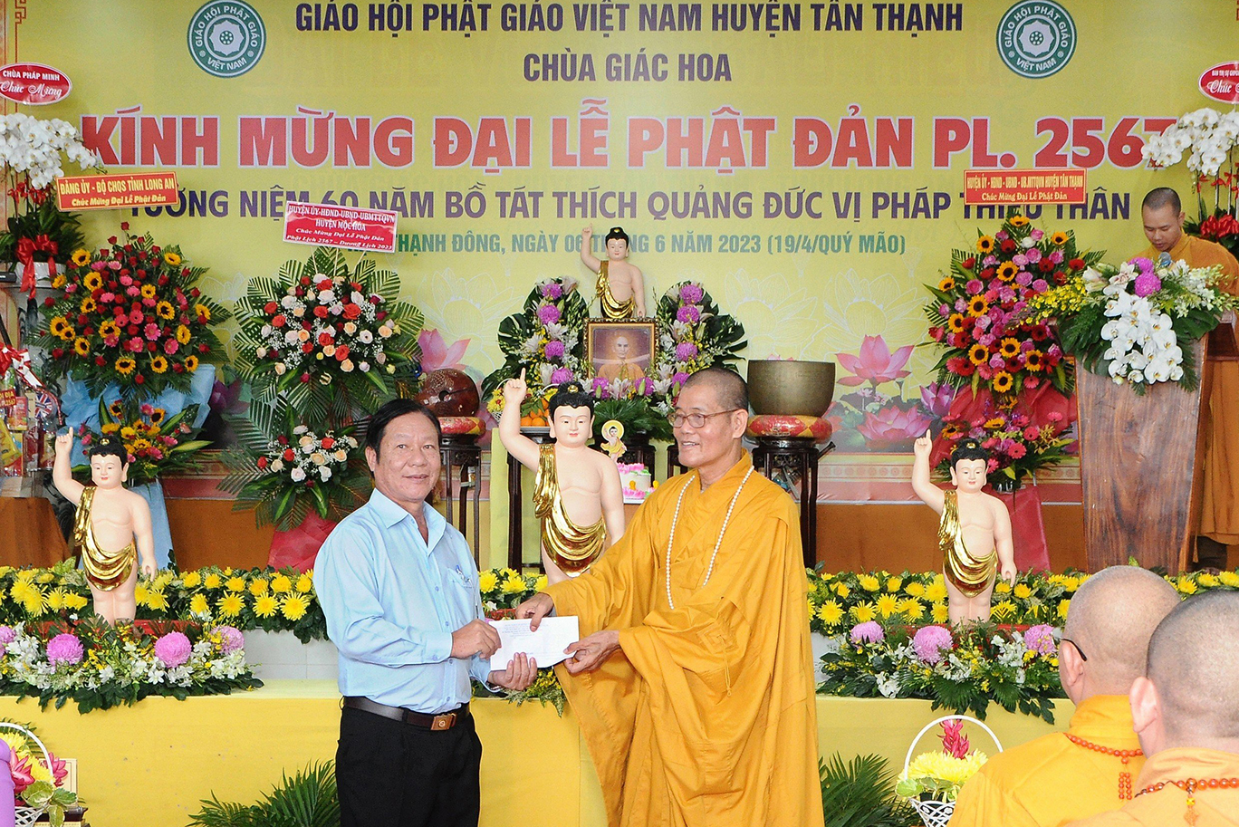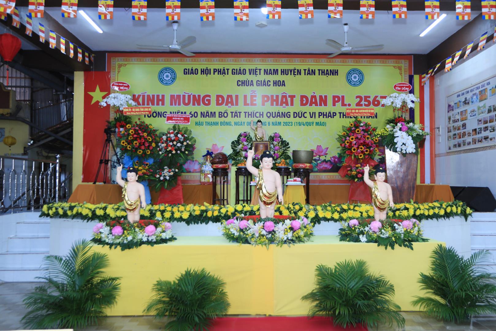 Sáng ngày 06 tháng 6 năm 2023 (19/4/Quý Mão), tại chùa Giác Hoa, xã Hậu Thạnh Đông, huyện Tân Thạnh, tỉnh Long An, TT. Thích Lệ Tấn – UVTT BTS GHPGVN tỉnh Long An, Trưởng BTS GHPGVN huyện Tân Thạnh, Trụ trì chùa Giác Hoa long trọng tổ chức Đại Lễ Phật Đản Phật lịch 2567 – Dương lịch 2023 và Tưởng niệm 60 năm Bồ tát Thích Quảng Đức vị pháp thiêu thân (1963-2023).