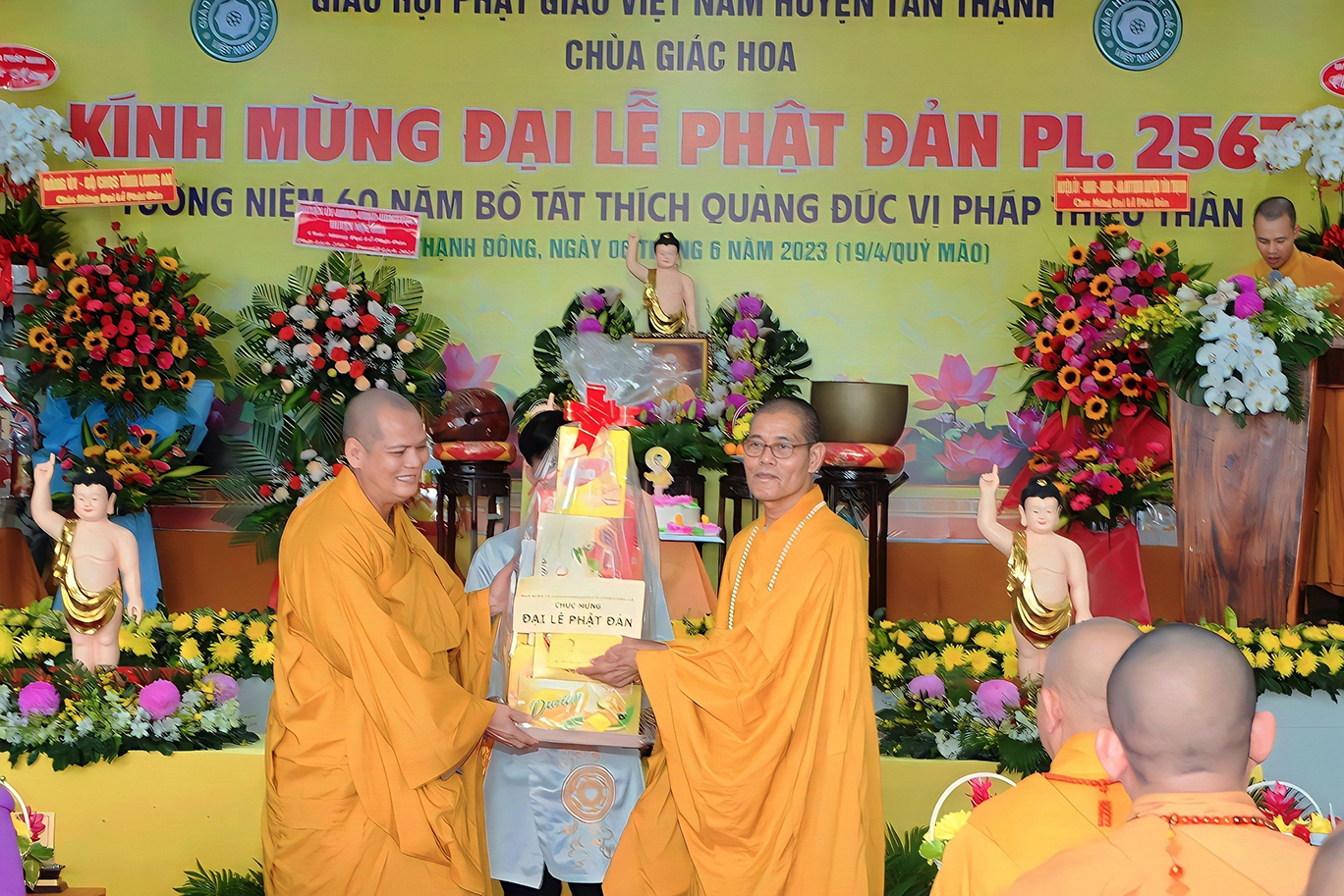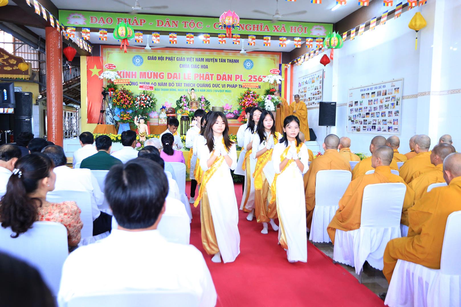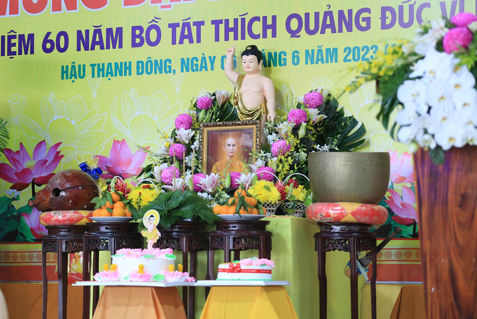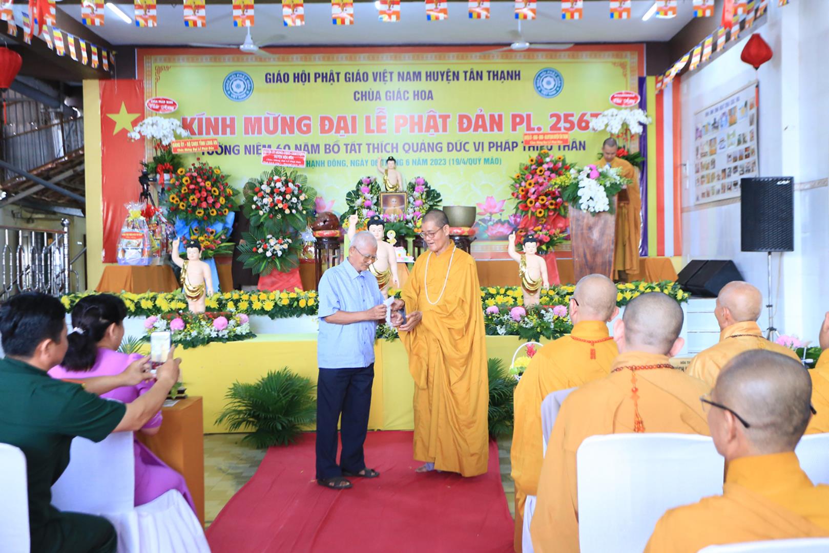 Sáng ngày 06 tháng 6 năm 2023 (19/4/Quý Mão), tại chùa Giác Hoa, xã Hậu Thạnh Đông, huyện Tân Thạnh, tỉnh Long An, TT. Thích Lệ Tấn – UVTT BTS GHPGVN tỉnh Long An, Trưởng BTS GHPGVN huyện Tân Thạnh, Trụ trì chùa Giác Hoa long trọng tổ chức Đại Lễ Phật Đản Phật lịch 2567 – Dương lịch 2023 và Tưởng niệm 60 năm Bồ tát Thích Quảng Đức vị pháp thiêu thân (1963-2023).