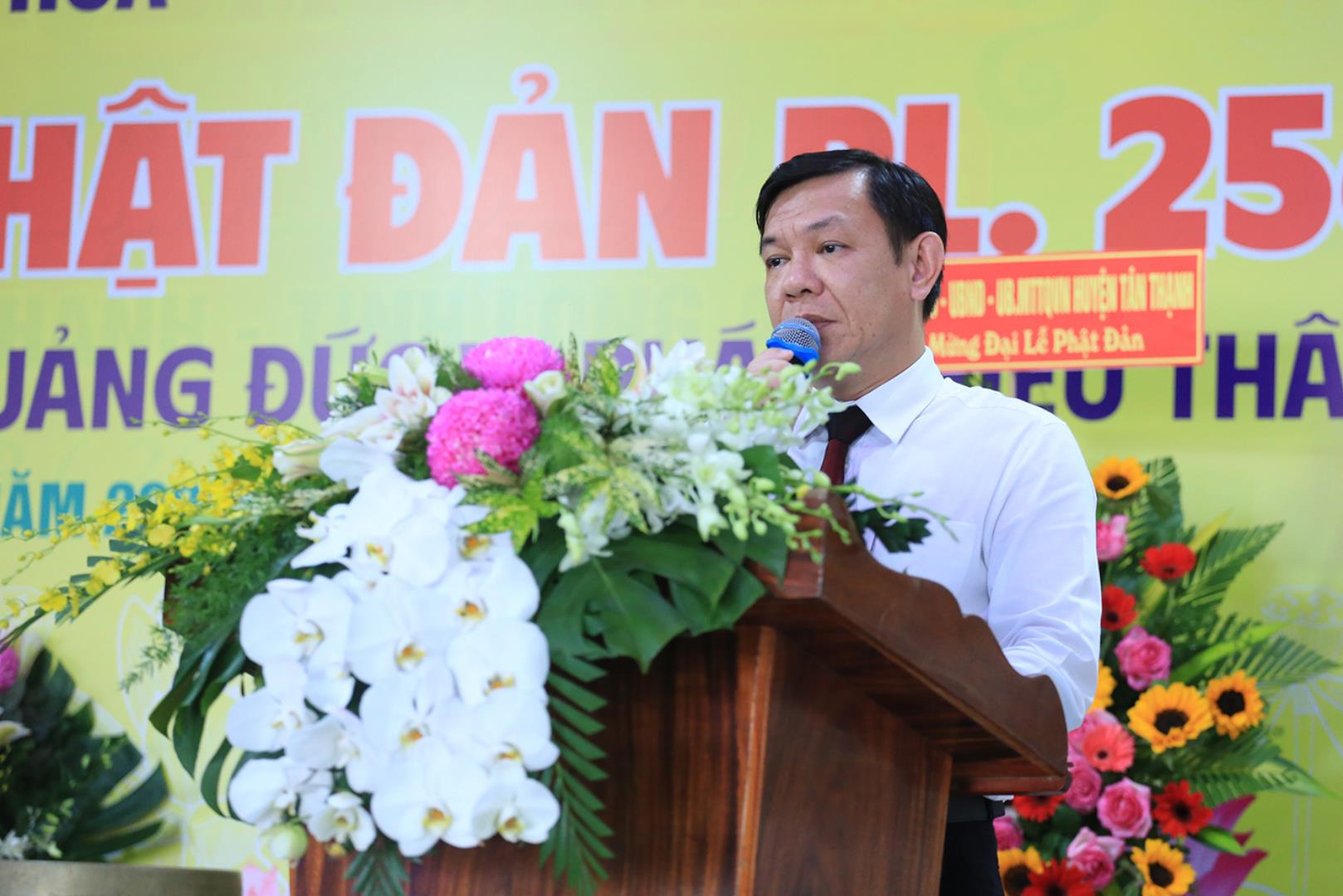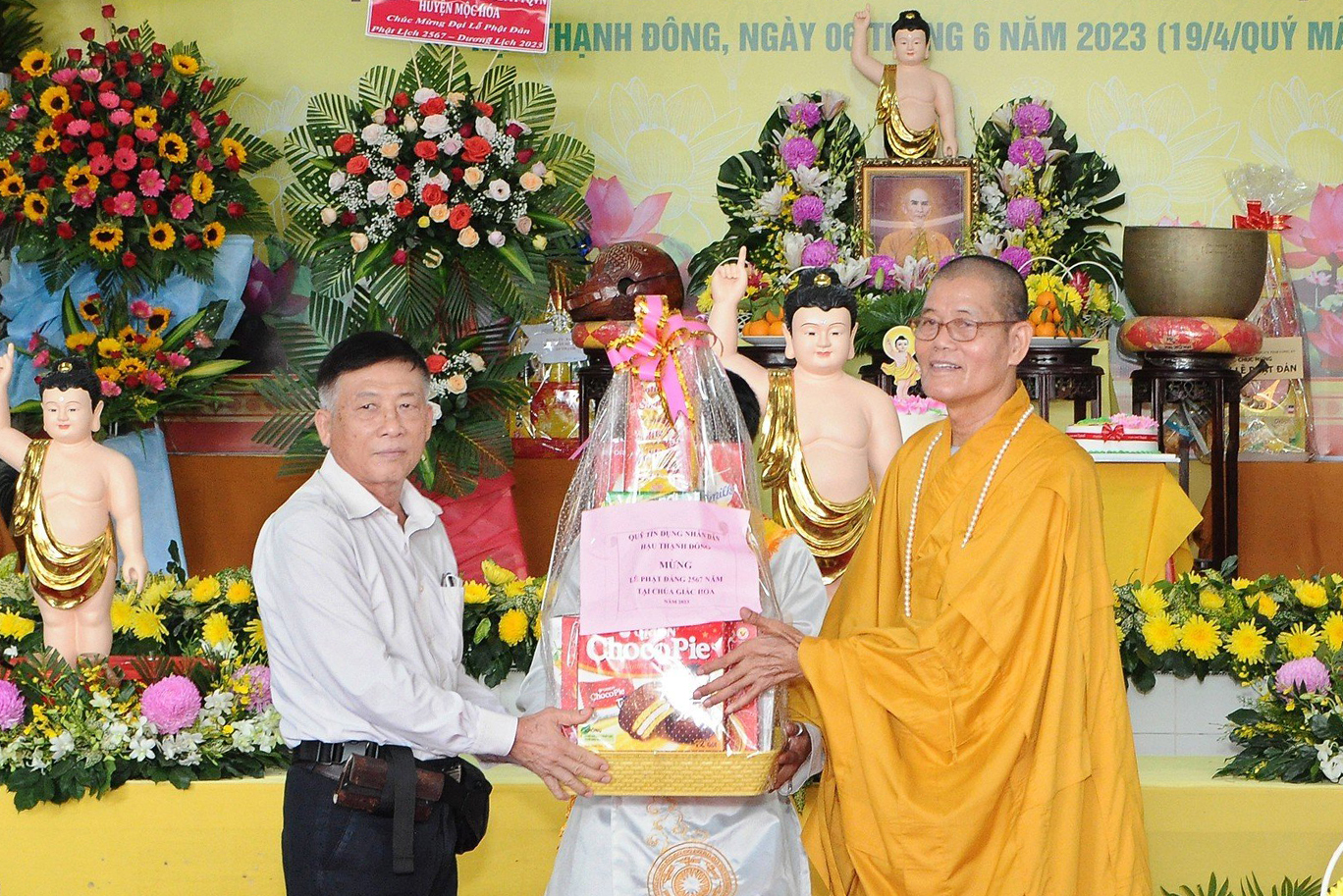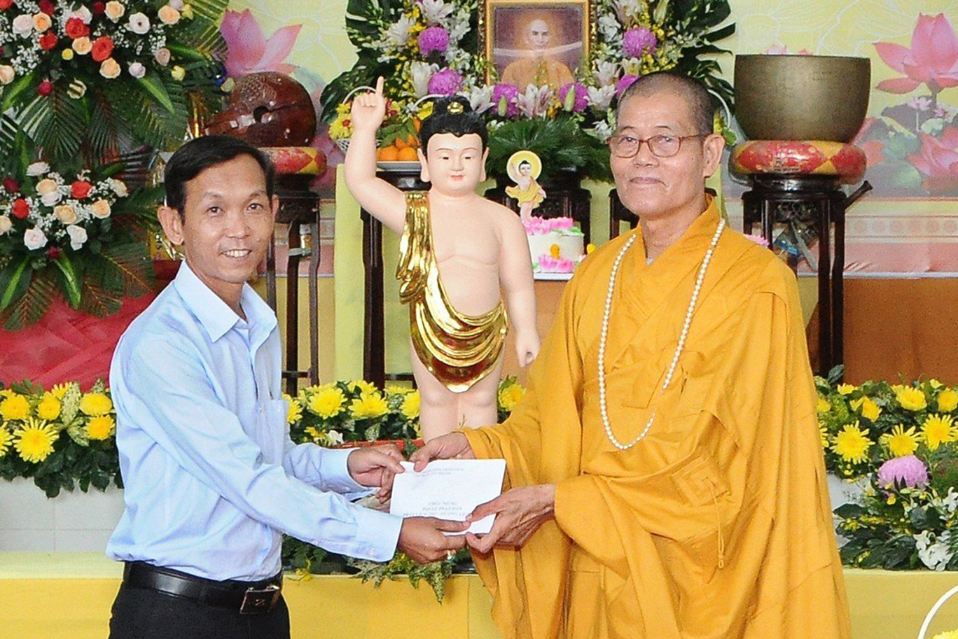 Đại diện các cấp lãnh đạo chính quyền, ông Hà Thanh Chì đọc thư chúc mừng của Chủ tịch UBND tỉnh Long An gửi đến Tăng Ni, Phật tử tỉnh nhân dịp mùa Phật đản năm nay. Sau đó ông có lời phát biểu tại buổi lễ với những cảm xúc khi được dự buổi lễ kính mừng Phật đản và lễ tưởng niệm Bồ tát Thích Quảng Đức. Ông đã nói về sự vĩ đại của đức Phật cũng như lời dạy của Ngài. Bên cạnh đó, ông cũng bày tỏ niềm xúc cảm về việc vị pháp thiêu thân cao quý của Bồ tát Thích Quảng Đức, đã để lại Trái tim bất diệt minh chứng cao quý cho sự thành công trong công cuộc chống lại chính sách của chính quyền bấy giờ. Ông tin tưởng với sự lãnh đạo của Hòa thượng Trưởng BTS PG tỉnh Long An, Phật giáo sẽ tiếp tục đồng hành cùng dân tộc, ngày càng phát triển vững mạnh, đem lại nhiều lợi ích cho đồng bào, nhân dân theo đúng những gì đức Phật dạy và theo đúng quy định của Giáo hội.