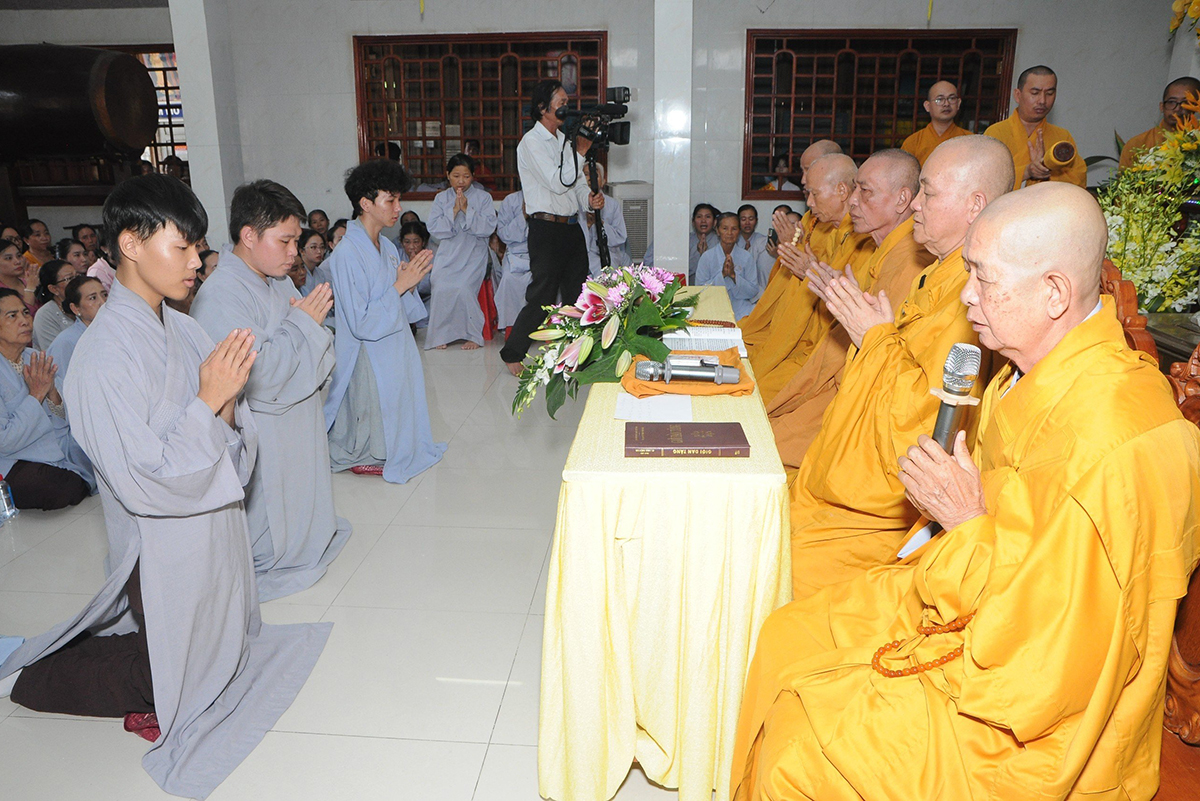 Dịp này, chư Tôn đức giáo phẩm cũng đã chứng minh lễ thế phát cho 3 thiện nam đã hội đủ duyên lành, vượt qua thời gian thử thách được đầu Phật xuất gia chính thức trở thành một Tu sĩ Phật giáo, tiếp nối mạng mạch Phật pháp và sự nghiệp hoằng hóa độ sanh.