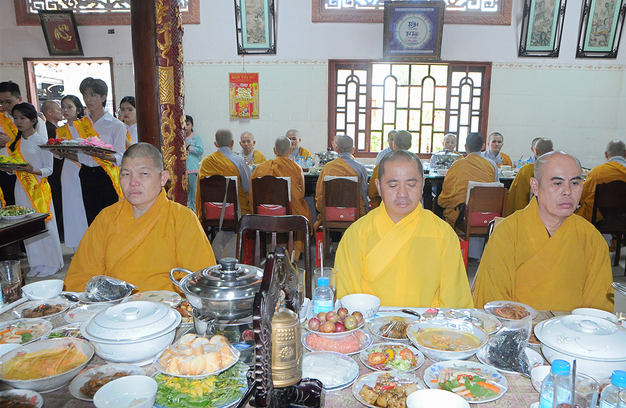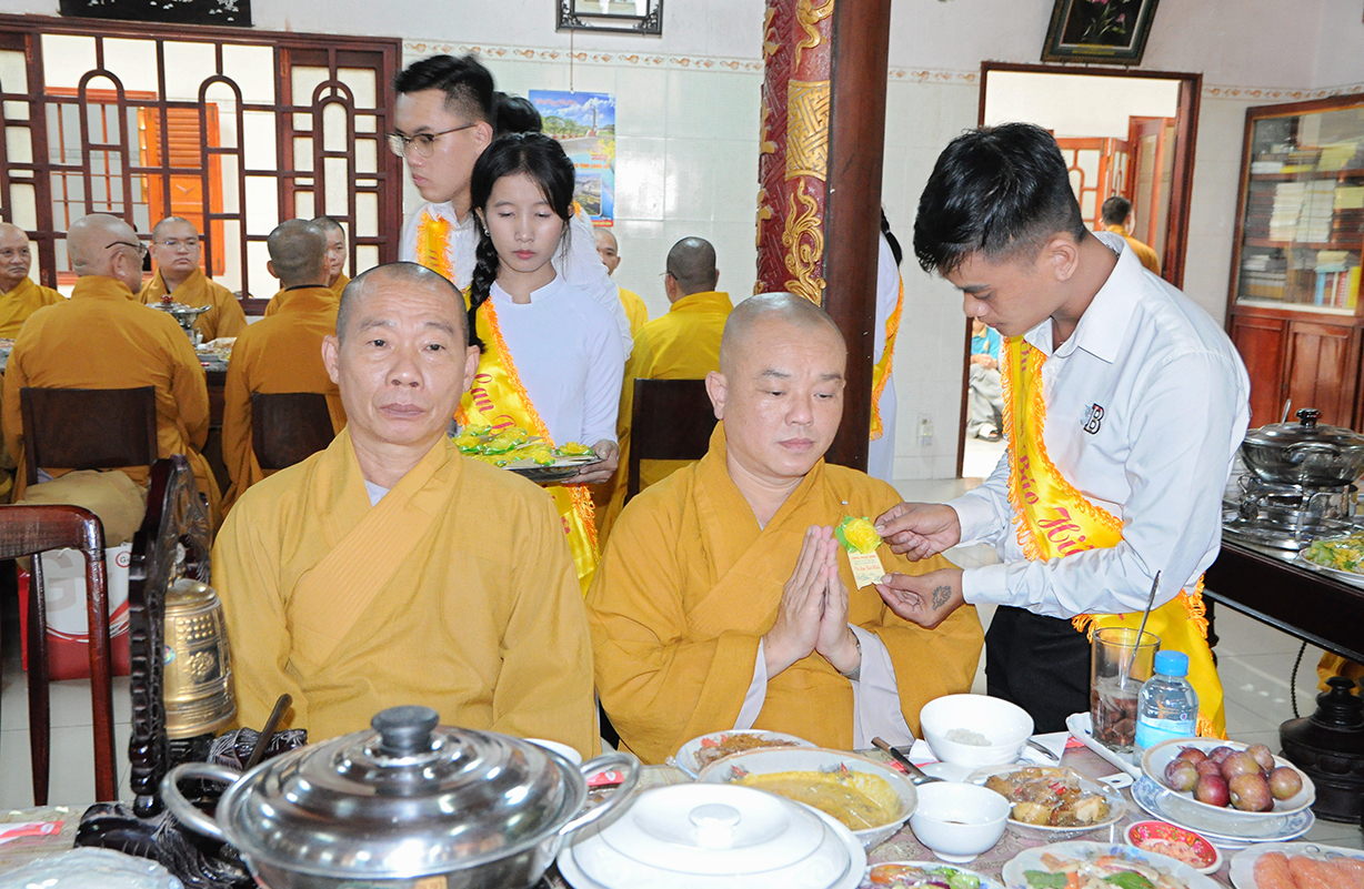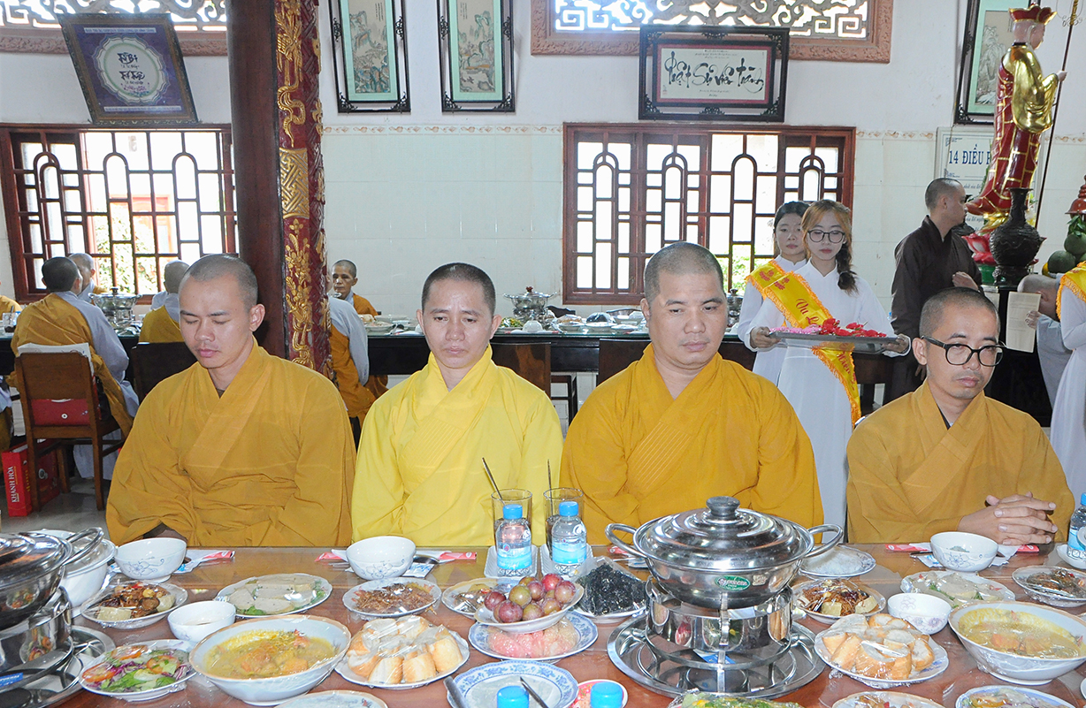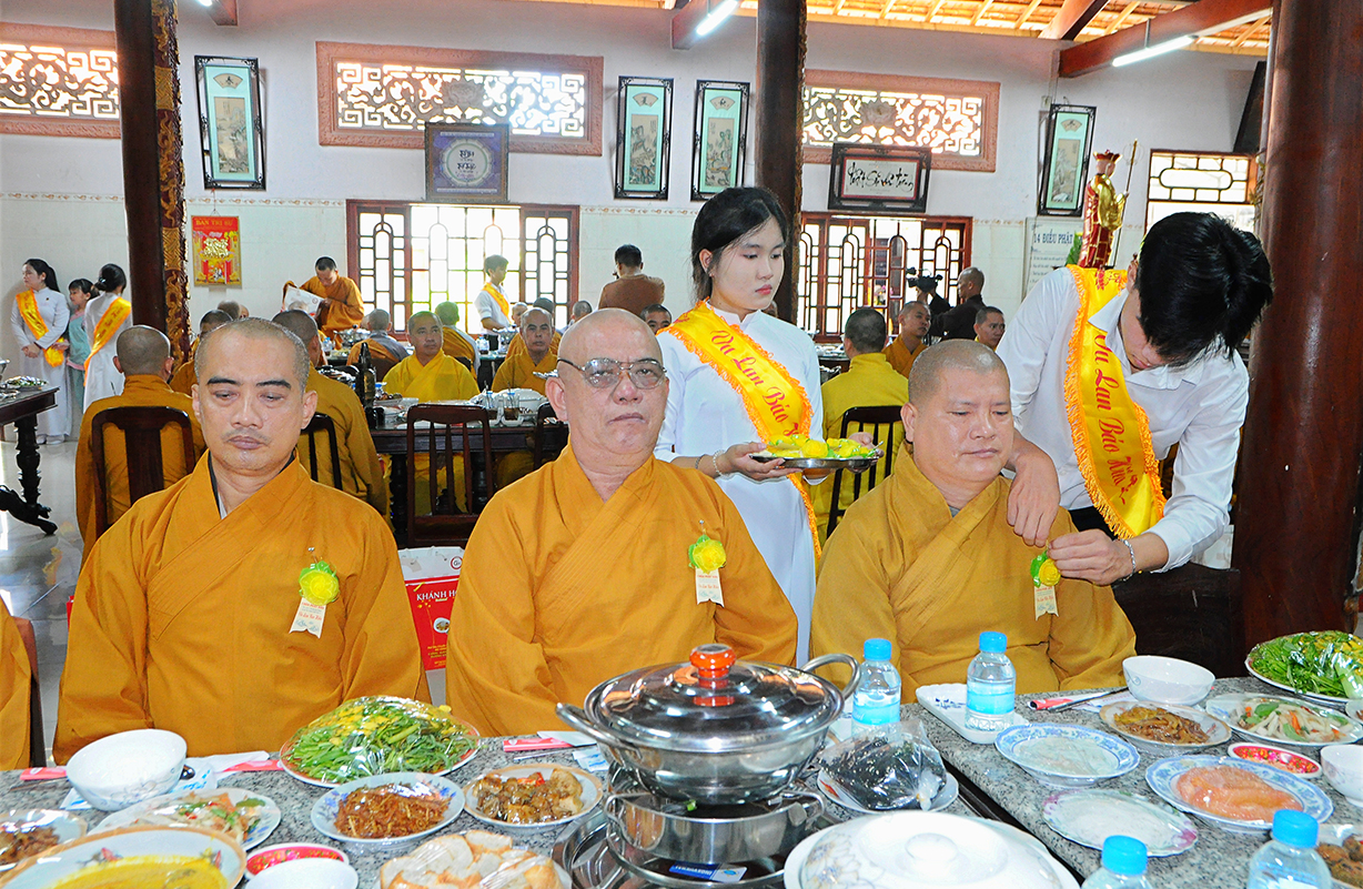 Kết thúc buổi lễ là lễ Thọ trai, quý Phật tử chùa Phật Bửu dâng vật phẩm cúng dường Chư Tôn đức theo nghi lễ truyền thống của Phật giáo.