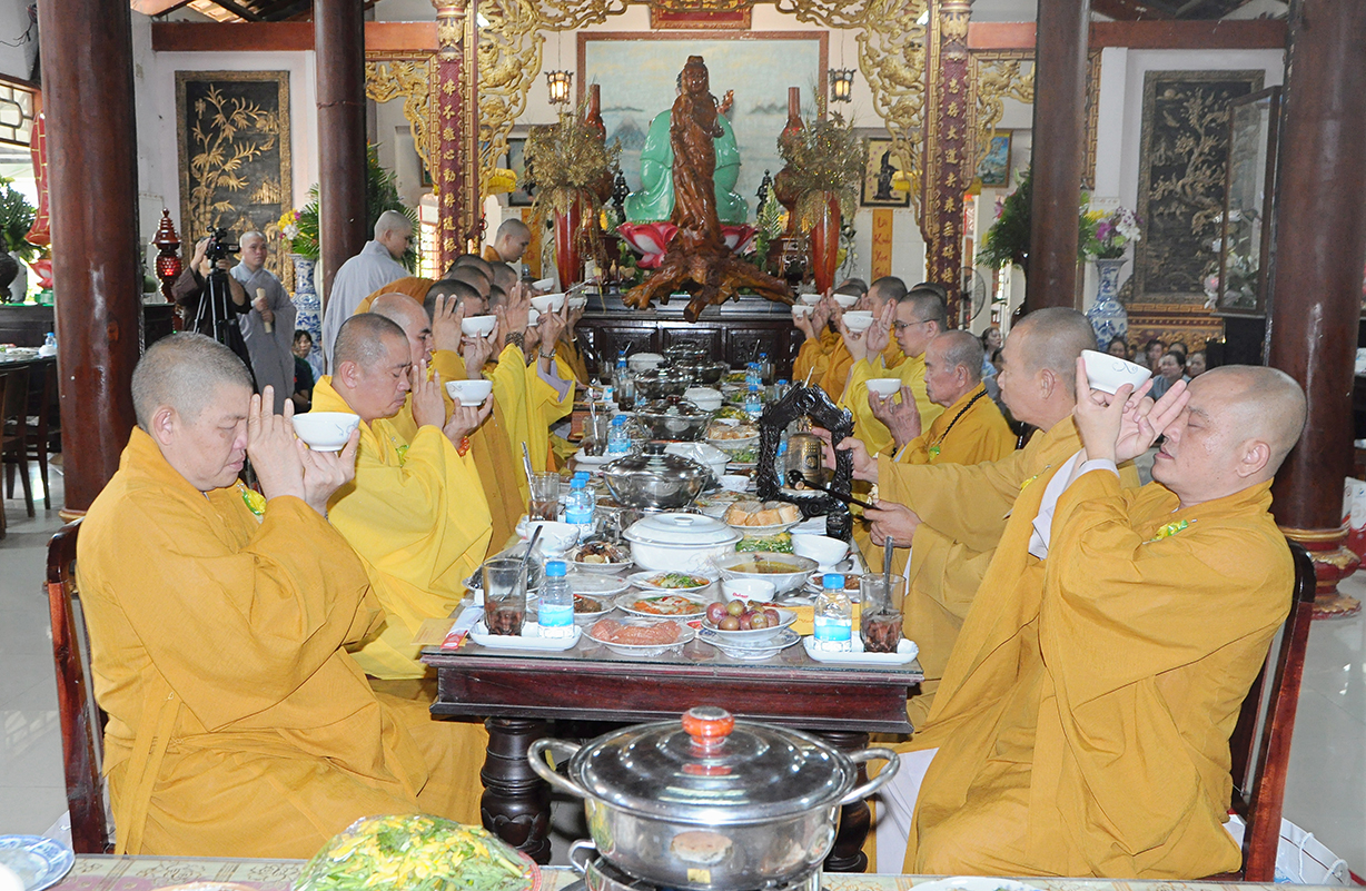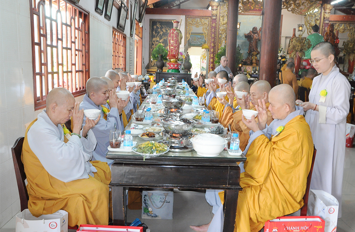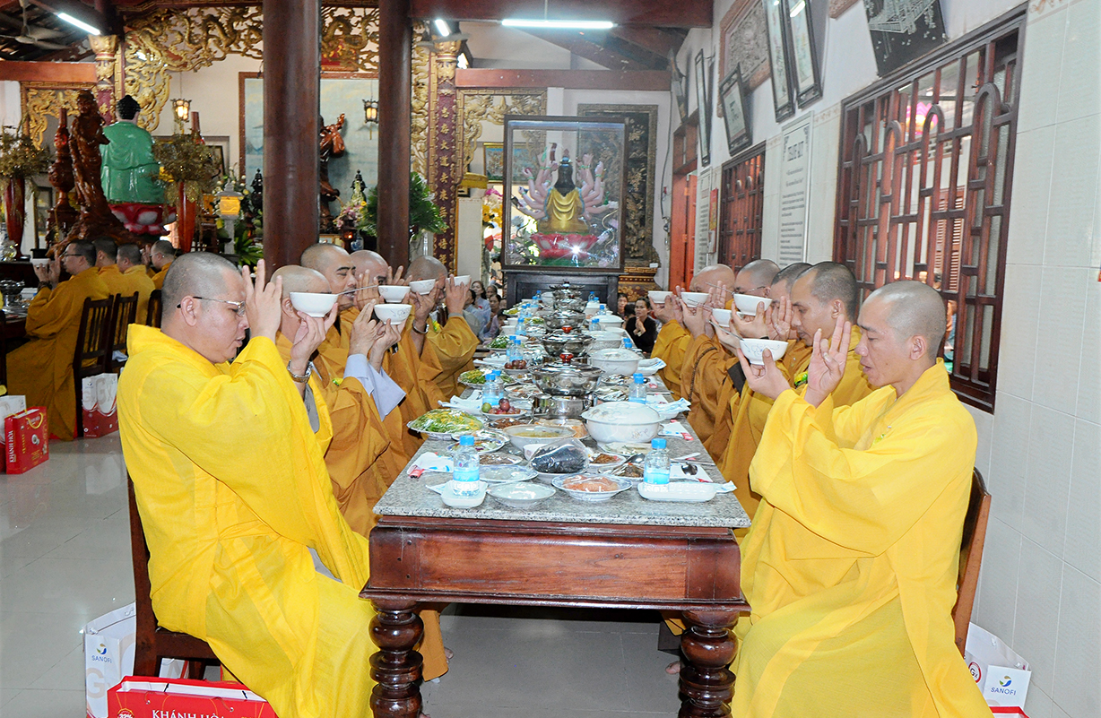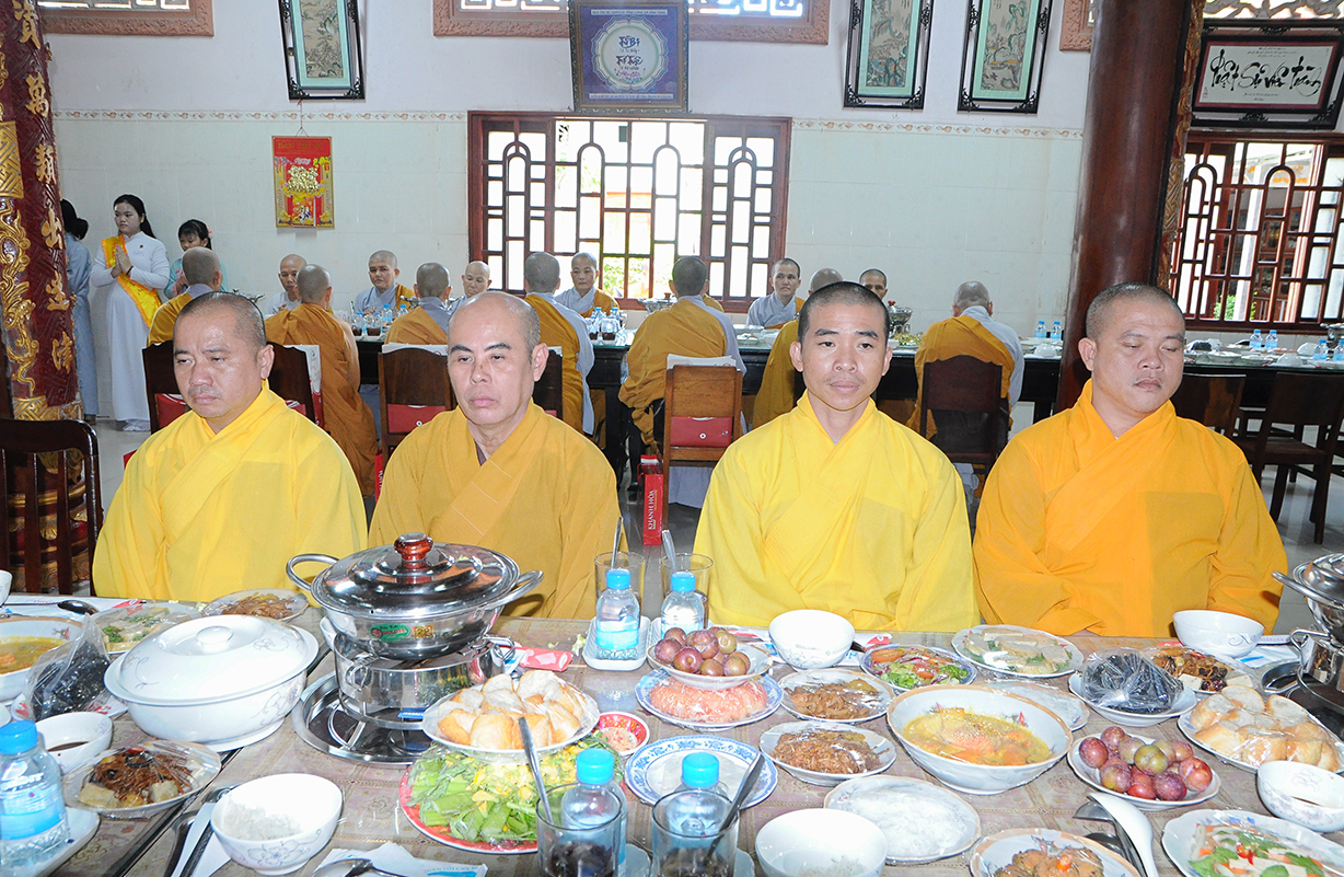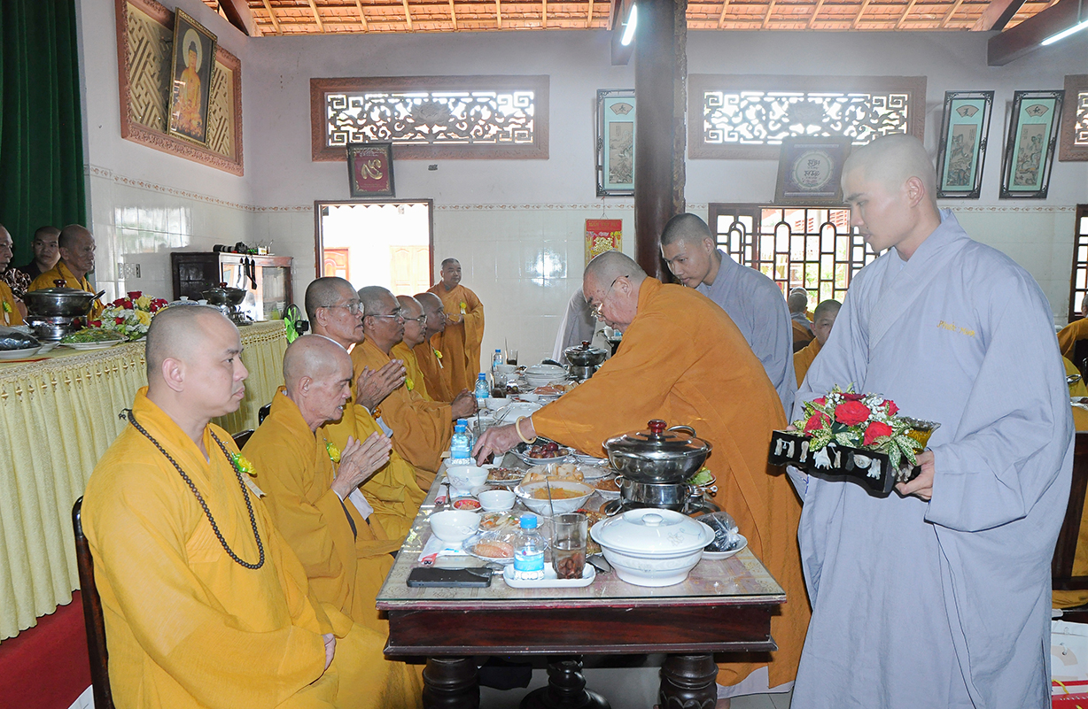 Kết thúc buổi lễ là lễ Thọ trai, quý Phật tử chùa Phật Bửu dâng vật phẩm cúng dường Chư Tôn đức theo nghi lễ truyền thống của Phật giáo.
