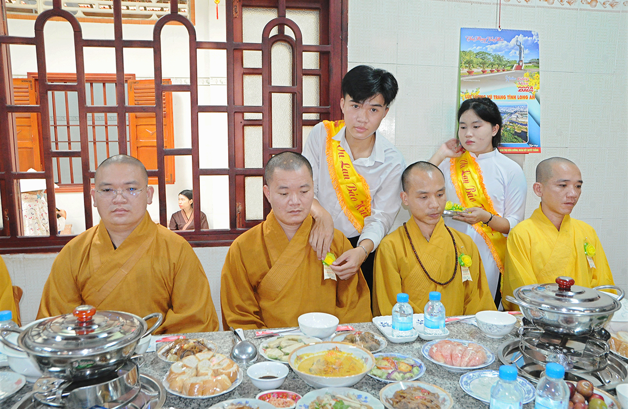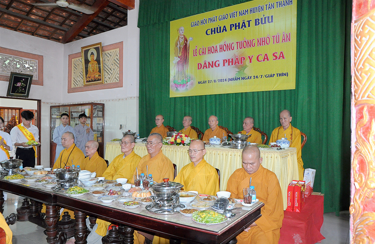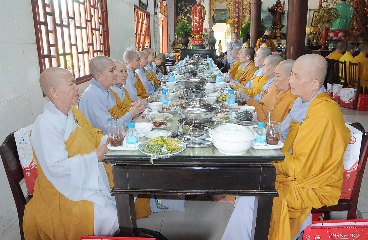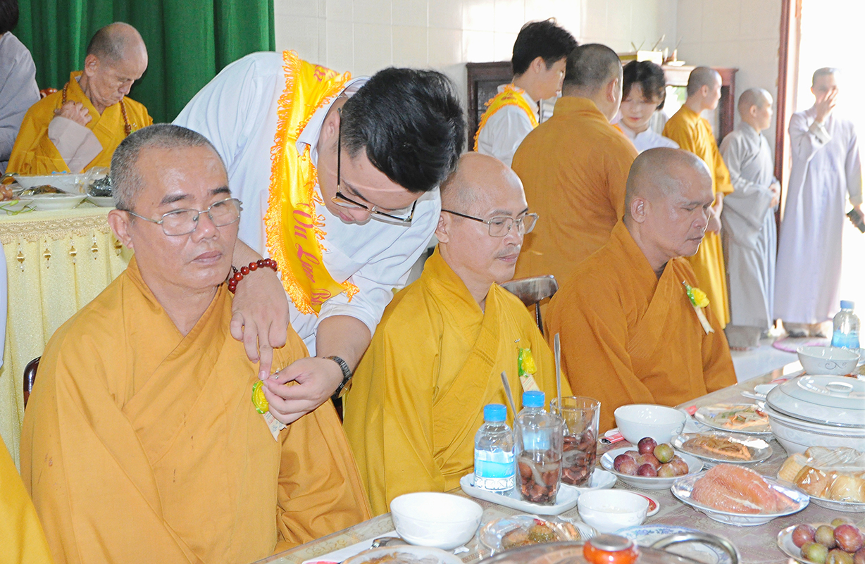 Kết thúc buổi lễ là lễ Thọ trai, quý Phật tử chùa Phật Bửu dâng vật phẩm cúng dường Chư Tôn đức theo nghi lễ truyền thống của Phật giáo.