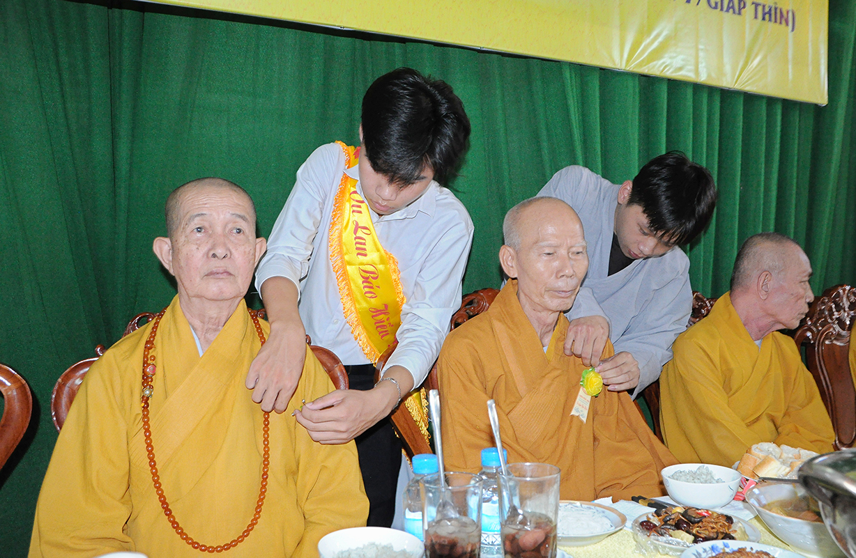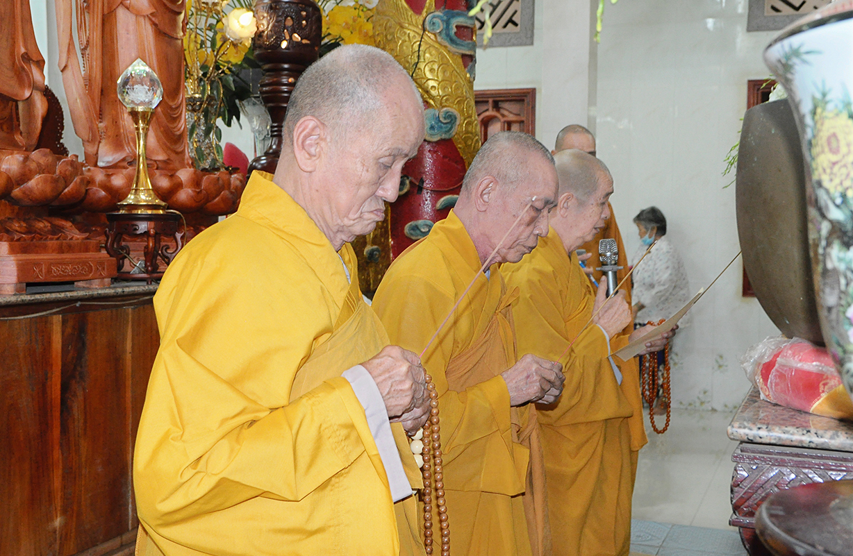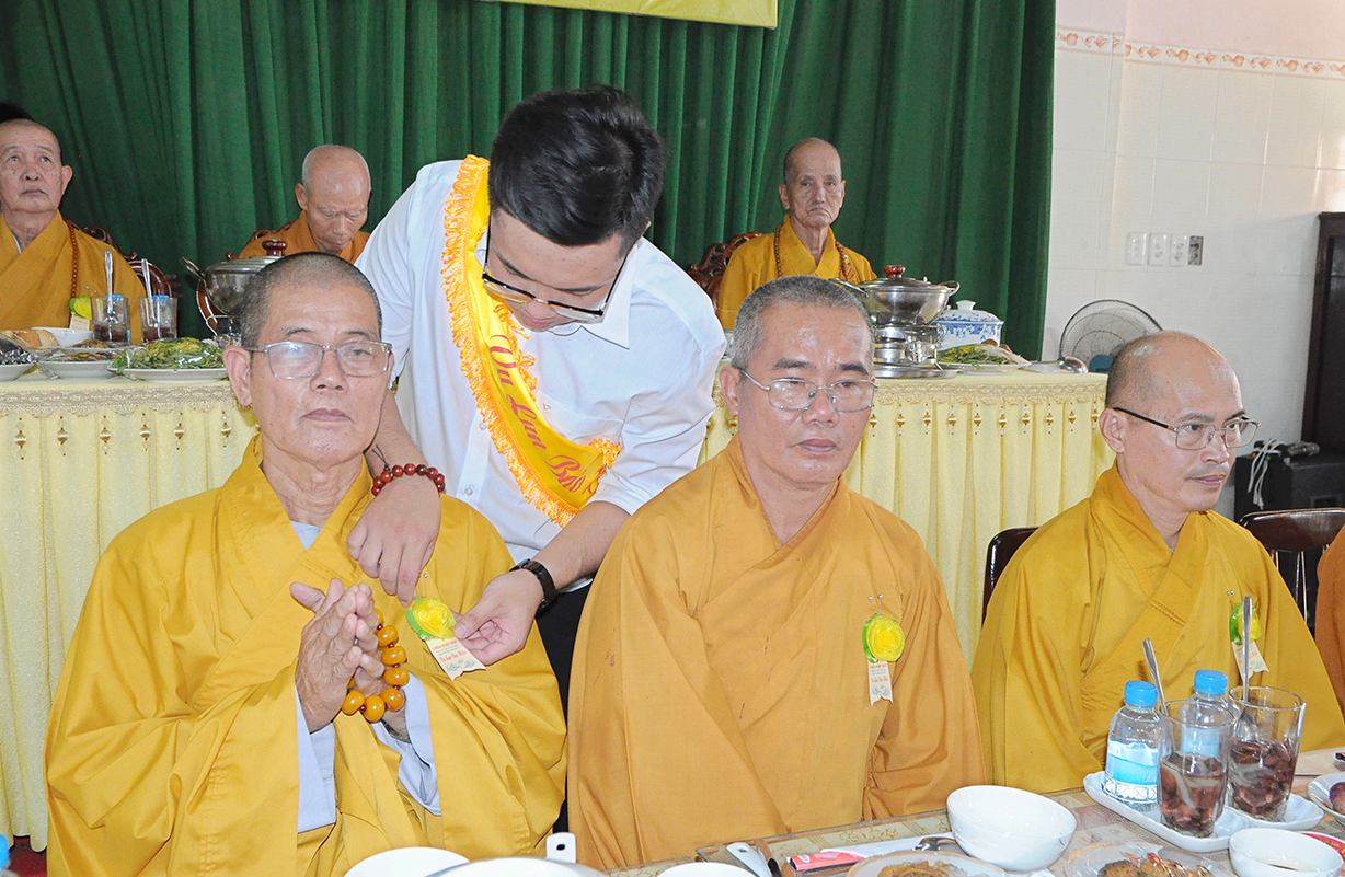 Quang lâm và chứng minh buổi lễ có sự hiện diện cao quý của: Trưởng lão Hòa thượng Thích Thiện Huệ – Thành viên HĐCM TƯ, Chứng minh BTS GHPGVN tỉnh Long An; HT. Thích Huệ Hồng, HT. Thích Quảng Ý, HT. Thích Thiện Tài – Đồng Chứng minh BTS GHPGVN tỉnh Long An; TT. Thích Quảng Tâm – UV HĐTS, Phó Trưởng BTS GHPGVN tỉnh Long An; cùng Chư Tôn đức Tăng trong thường trực BTS Phật giáo tỉnh, Chư tôn đức Tăng ni các huyện thị thành đồng về tham dự.