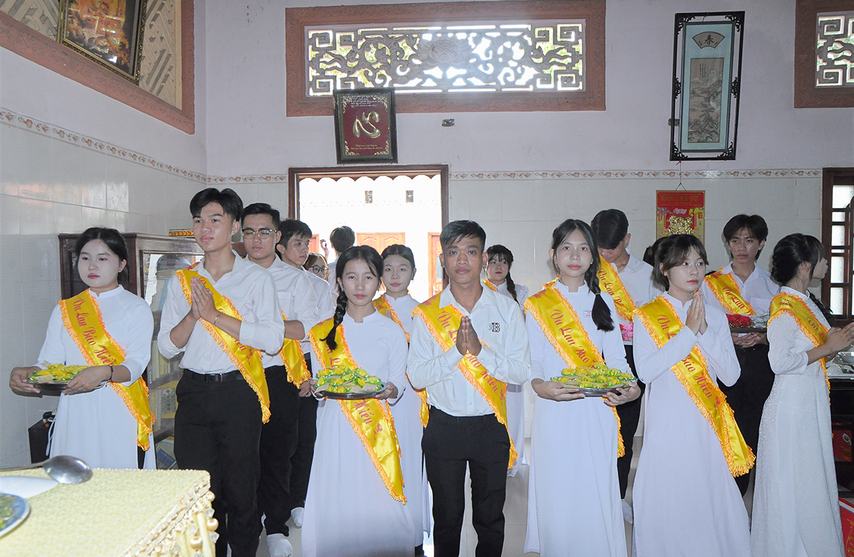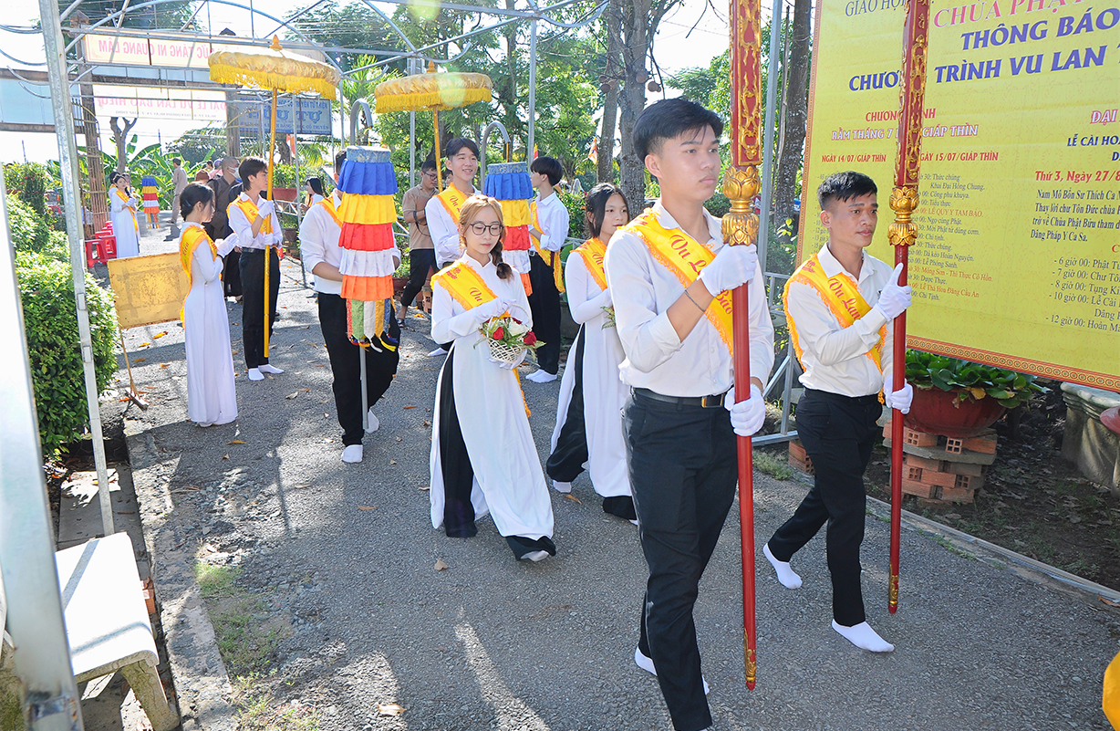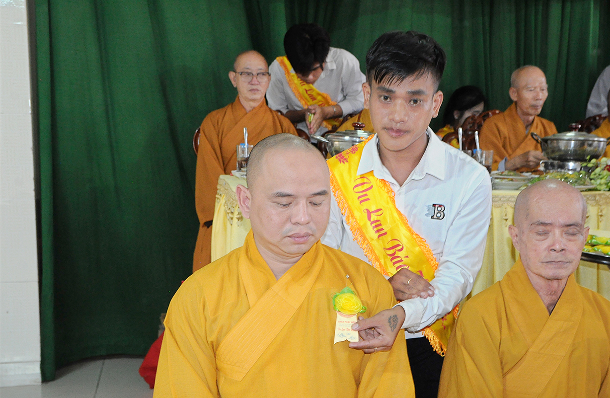 Nối tiếp buổi lễ, Chư Tôn đức đã hướng dẫn các em đội cài hoa hồng dâng những bông hoa tươi thắm, đậm tình ý nghĩa mùa hiếu hạnh lên Chư Tôn đức chứng minh, và Phật tử đạo tràng chùa Phật Bửu. Theo ý nghĩa, ai còn cha mẹ sẽ được cài lên ngực áo một đóa hoa hồng đỏ, những người con mất cha hoặc mất mẹ sẽ cài lên ngực áo một bông hồng màu hồng nhạt, ai mất cả cha và mẹ thì sẽ cài lên bông hồng trắng. Hoa hồng trắng mang màu tinh khiết ý nghĩa buồn thương, đồng thời nhắc nhở con người hãy sống thật tốt, thật ý nghĩa để những người ra đi cảm thấy tâm hồn được an nhiên, thanh thản.