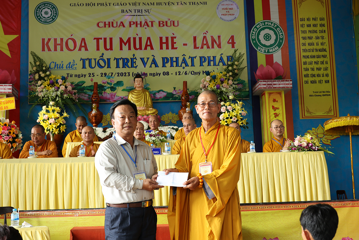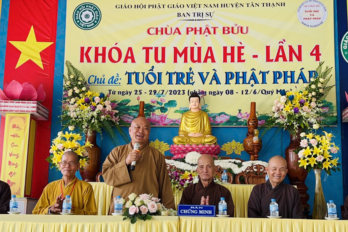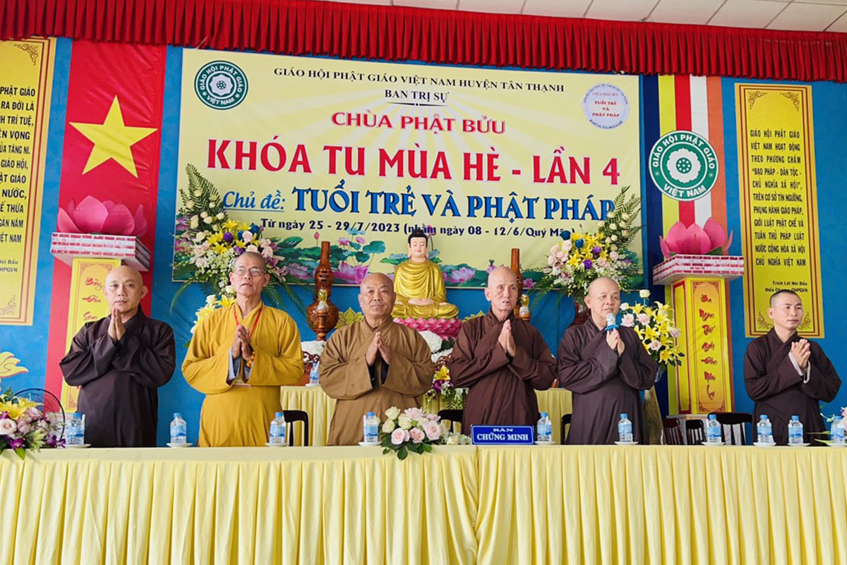 Được biết trước đó Hoà thượng Thích Minh Thiện- Uỷ viên HĐTS, Phó Ban Hoằng pháp trung ương, Trưởng Ban Trị sự GHPGVN tỉnh Long An; Hoà thượng Thích Chơn Tịnh- Trưởng Ban Từ Thiện báo Giác Ngộ đã đến thăm chia sẻ pháp thoại và ủng hộ tịnh tài trợ duyên cho khoá tu.