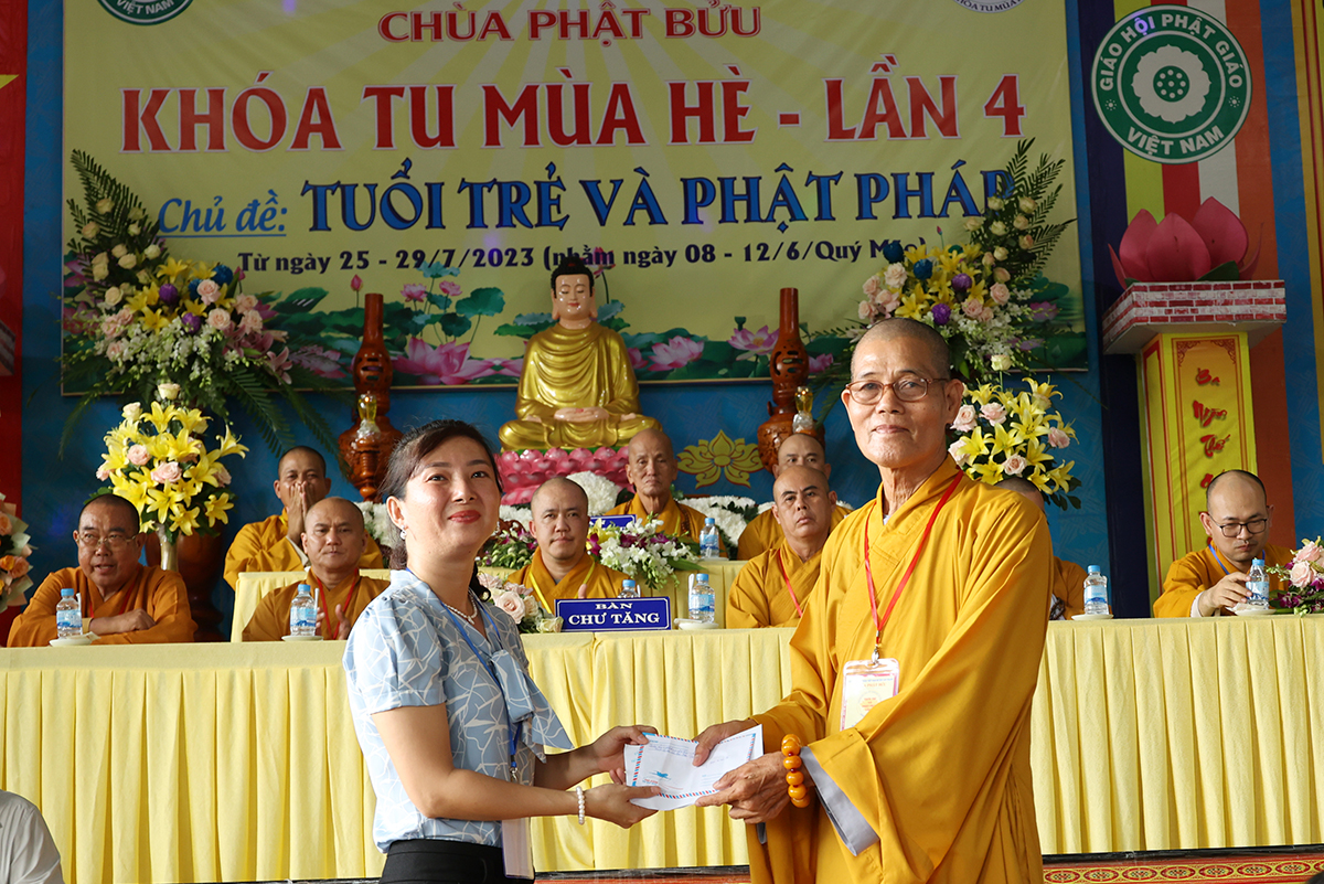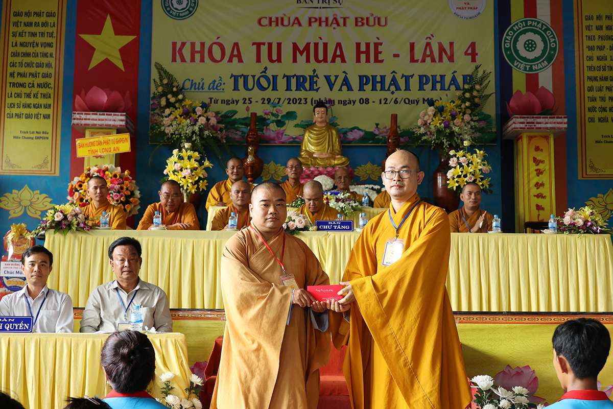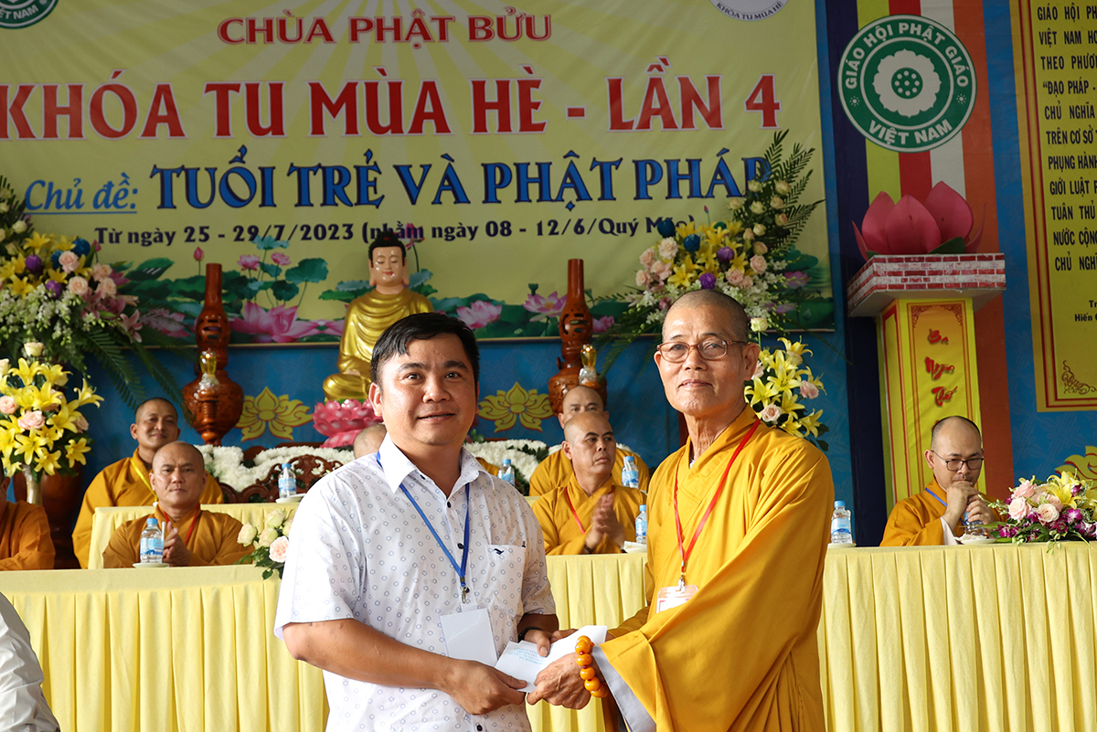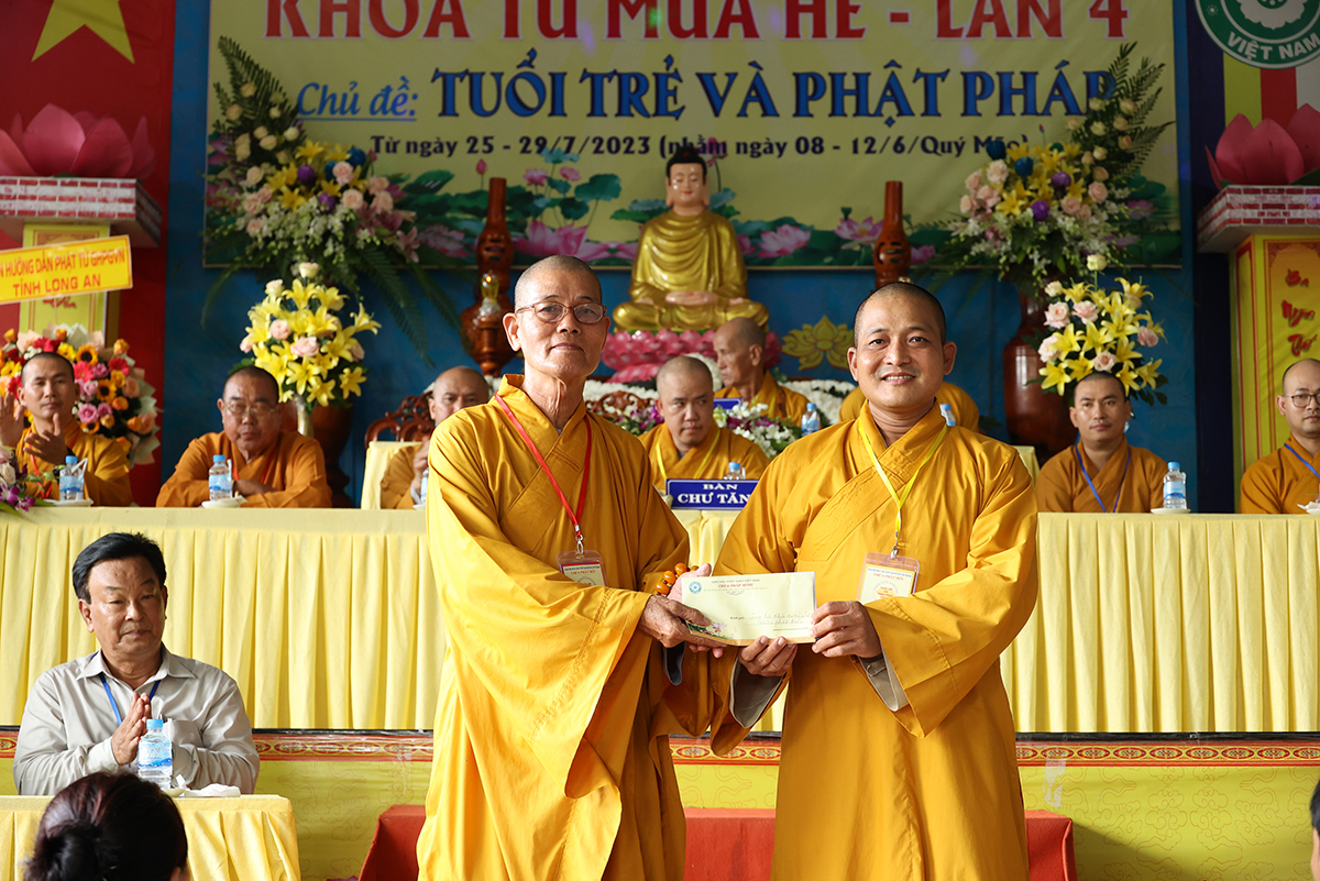 Được biết trước đó Hoà thượng Thích Minh Thiện- Uỷ viên HĐTS, Phó Ban Hoằng pháp trung ương, Trưởng Ban Trị sự GHPGVN tỉnh Long An; Hoà thượng Thích Chơn Tịnh- Trưởng Ban Từ Thiện báo Giác Ngộ đã đến thăm chia sẻ pháp thoại và ủng hộ tịnh tài trợ duyên cho khoá tu.