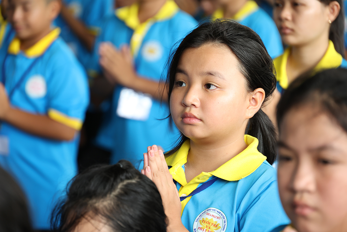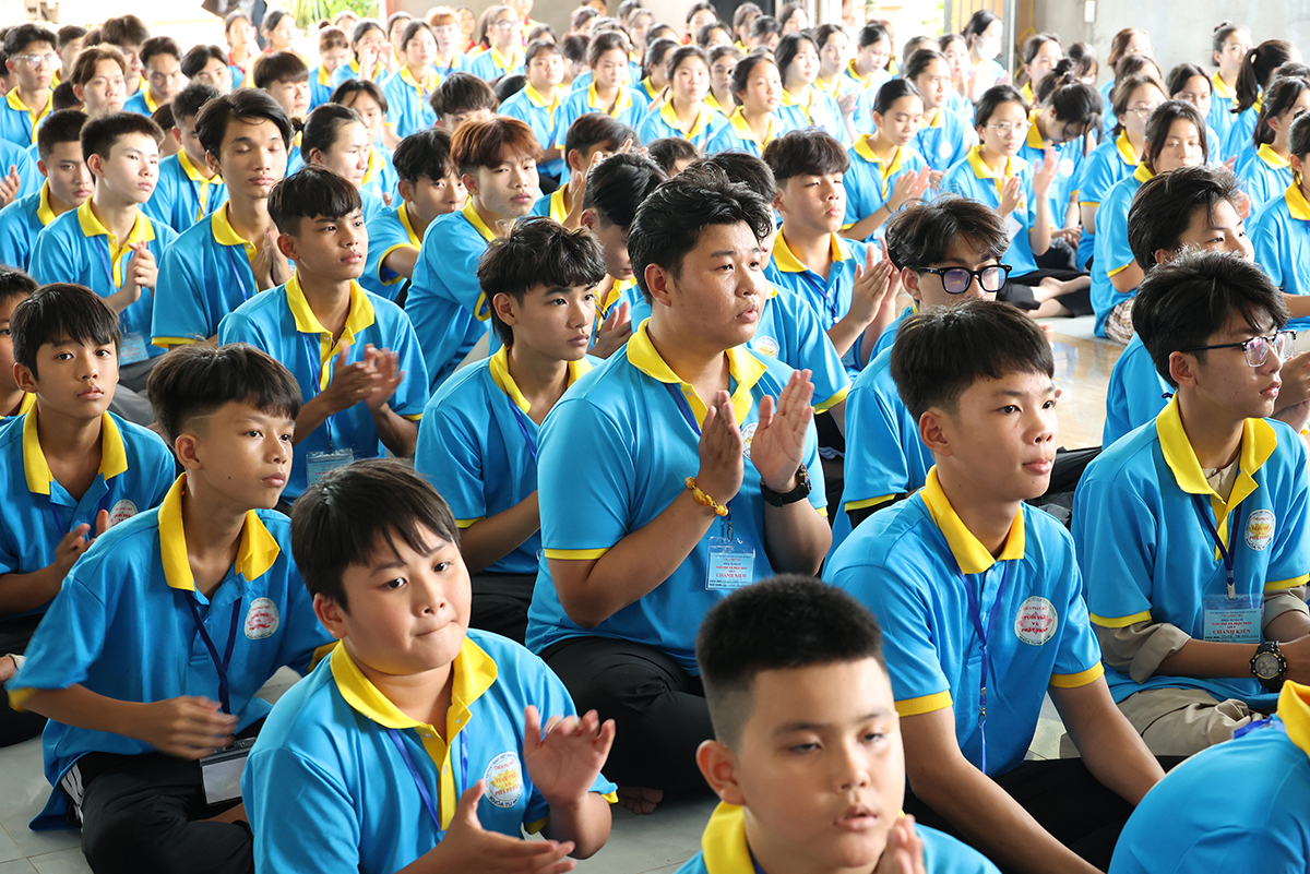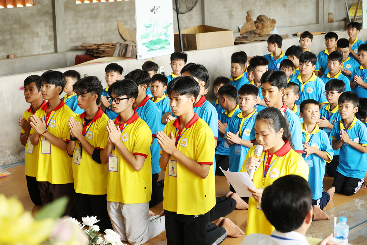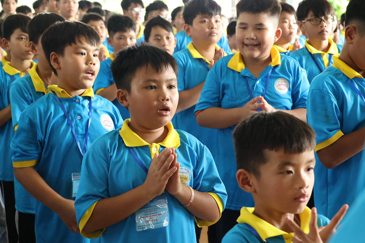 Bài hát “Khoá tu mùa hè” đã được toàn thể các em khoá sinh trình bày cúng dường đại chúng đã vang vọng khắp nơi trong bầu không khí tươi vui.