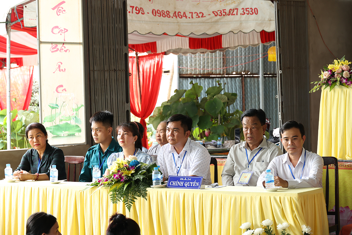 Đại diện chính quyền và các cơ quan hữu quan có Ông Nguyễn Văn Chung- Chủ tịch MTTQVN huyện Tân Thạnh; Ông Nguyễn Văn Thuật- Trưởng Ban Dân vận huyện Tân Thạnh; Bà Trần Lý Thanh Diệu- Chủ tịch MTTQVN thị trấn Tân Thạnh cùng đại diện lãnh đạo các sở, ban, ngành, đoàn thể.