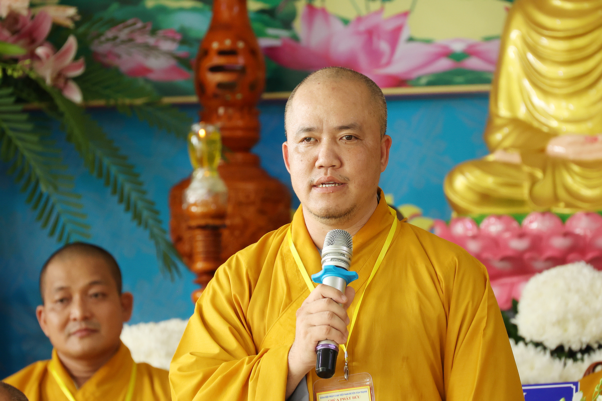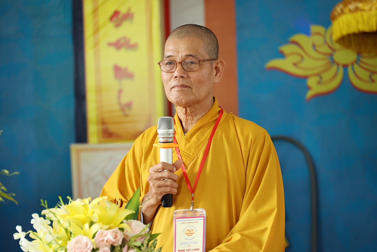 ĐĐ Thích Nguyên Lộc đã báo cáo kế hoạch tổ chức khoá tu đến với chư Tôn đức cùng đại chúng tham dự.
