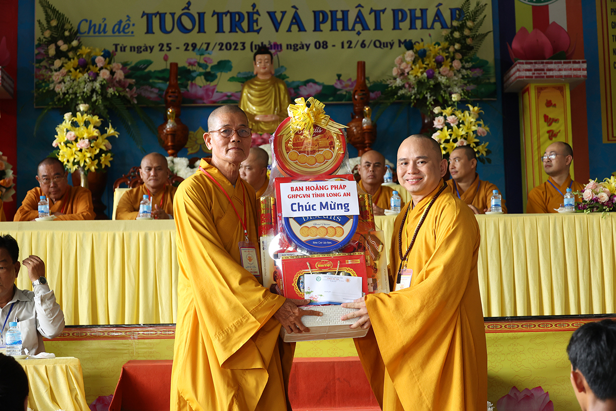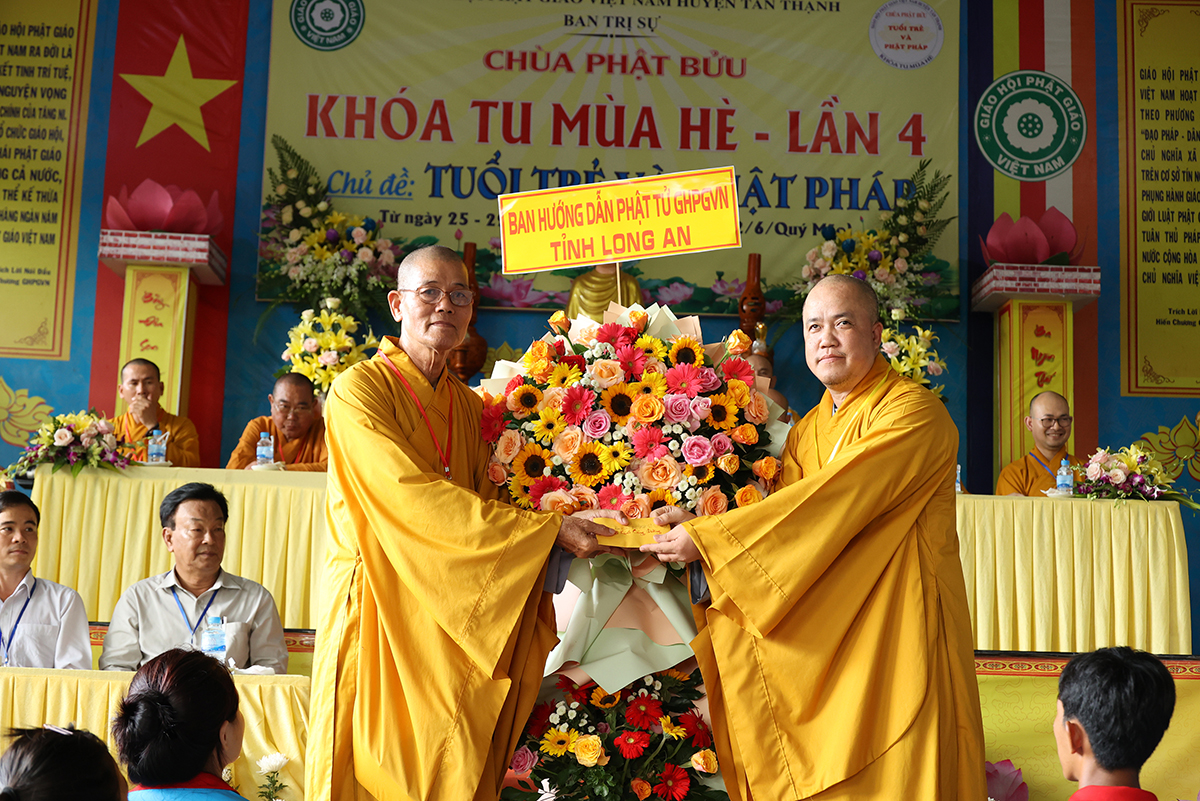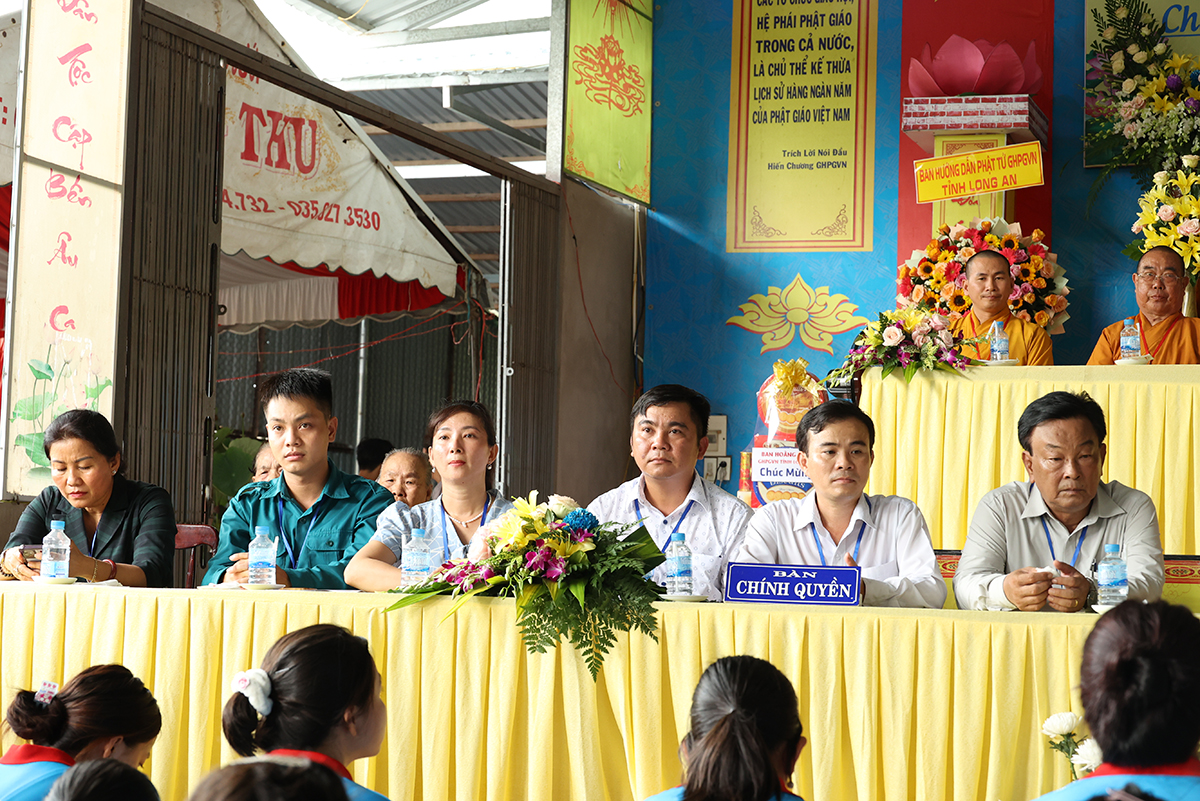 Chứng minh tham dự buổi lễ có Hoà thượng Thích Quảng Ý- Chứng minh Ban Trị sự GHPGVN tỉnh Long An, Chứng Minh BTS GHPGVN huyện Tân Thạnh; Đại đức Thích Lệ Duyên- Phó Ban Trị sự kiêm chánh thư ký Ban Trị sự GHPGVN tỉnh Long An; Đại đức Thích Lệ Ngôn- Phó Ban Trị sự kiêm trưởng Ban Hoằng Pháp GHPGVN tỉnh Long An; Đại đức Thích An Nhựt- Trưởng Ban Hướng dẫn Phật tử tỉnh Long An; Thượng toạ Thích Lệ Tấn- Uỷ viên Thường trực Ban Trị sự GHPGVN tỉnh Long An, Trưởng Ban Trị sự GHPGVN huyện Tân Thạnh; cùng quý Chư tôn đức trong Ban Trị sự tỉnh, Chư tôn đức trong Ban Trị sự huyện và 250 em khoá sinh đồng tham dự.