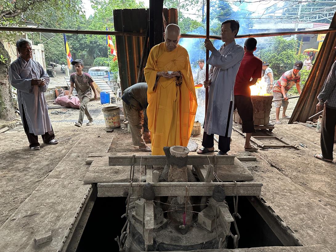 Chư Tôn đức giáo phẩm chứng minh và quý Nam nữ Phật tử đã trang nghiêm dâng hương bạch Phật, chú nguyện, sái tịnh, rót đồng đúc đại hồng chung chùa Vạn Linh.
