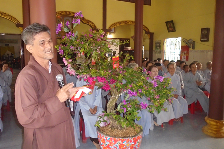 Thầy Thích Thiện Phước cũng thông tin trước tết chùa Cửu Long đã tổng kết khoá tu Bát Quan Trai năm 2017 gồm báo cáo tu học trong năm, thi hái hoa trí tuệ, , tuyên dương công đức phát thưởng và tết niên.