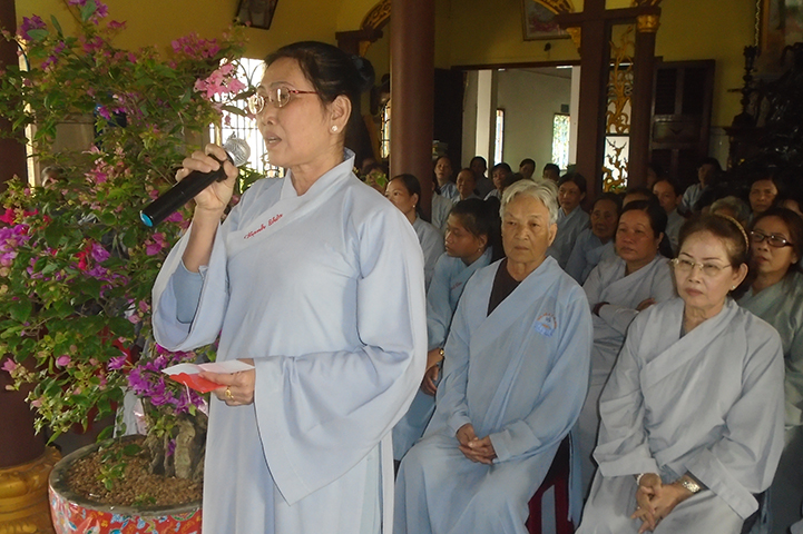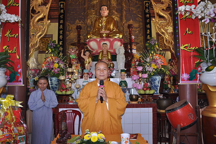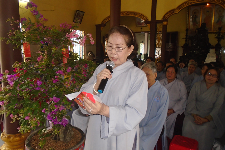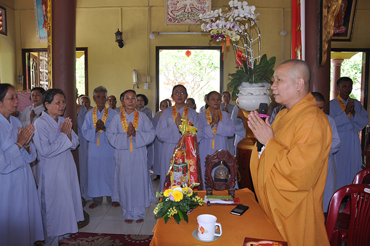 Chứng minh buổi lễ có Thượng toạ Thích Đức Hoàng- Phó Ban trị sự GHPGVN tỉnh Long An; Thượng toạ Thích Từ Thiện- Trưởng Ban trị sự huyện Tân Trụ; Thượng toạ Thích Thiện Xuân và hơn 140 Phật tử về tham dự.