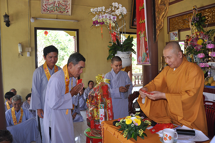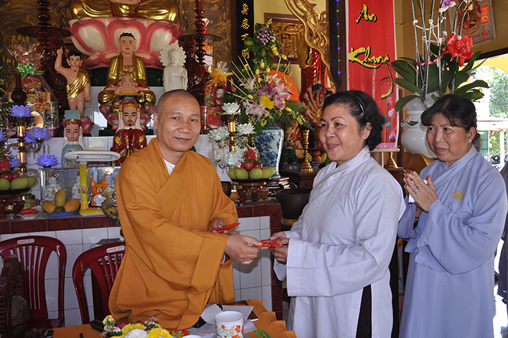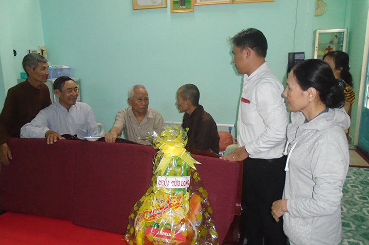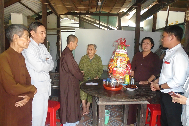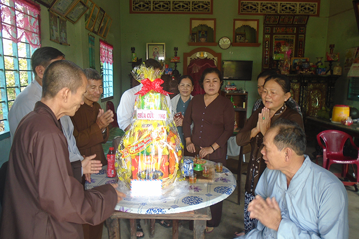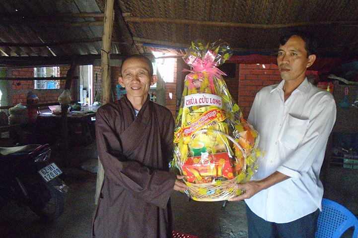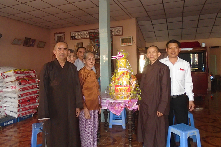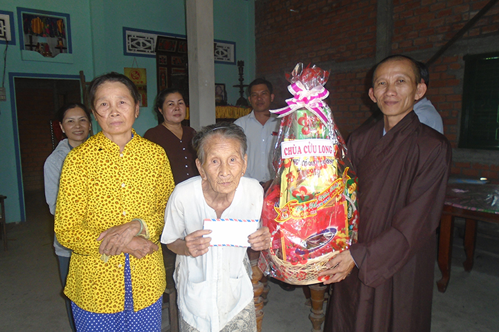 Ngoài ra trước tết thầy đã hướng dẫn Phật tử đến thăm hỏi chúc tết và tặng quà cho hơn 10 gia đình là những Phật tử có tuổi cao ở các xã Tân Phước Tây, Nhựt Ninh, Đức Tân, Bình Tịnh và thị trấn Tân Trụ đã có nhiều năm đến chùa Cửu Long tham dự các khoá tu, sám hối, công quả.
