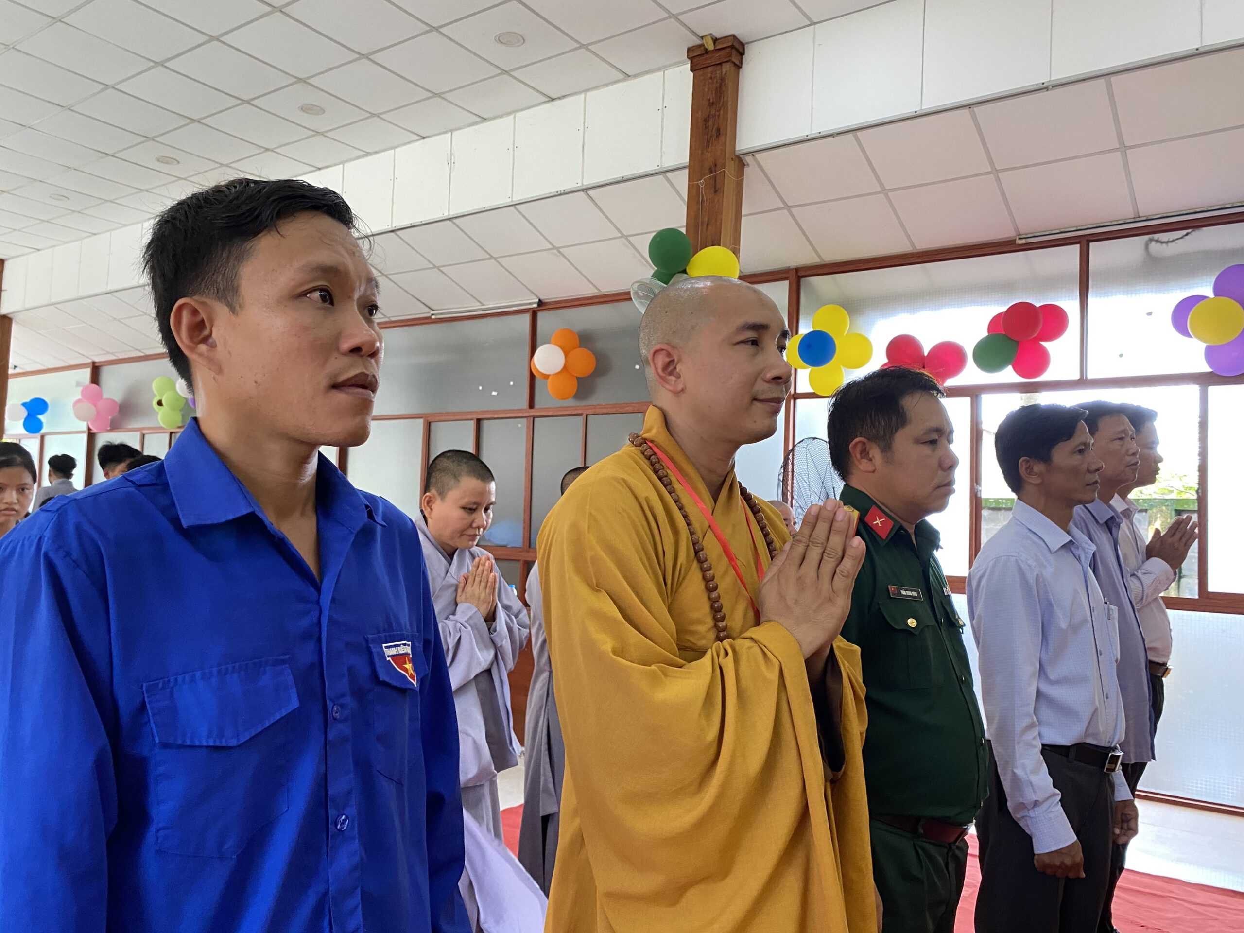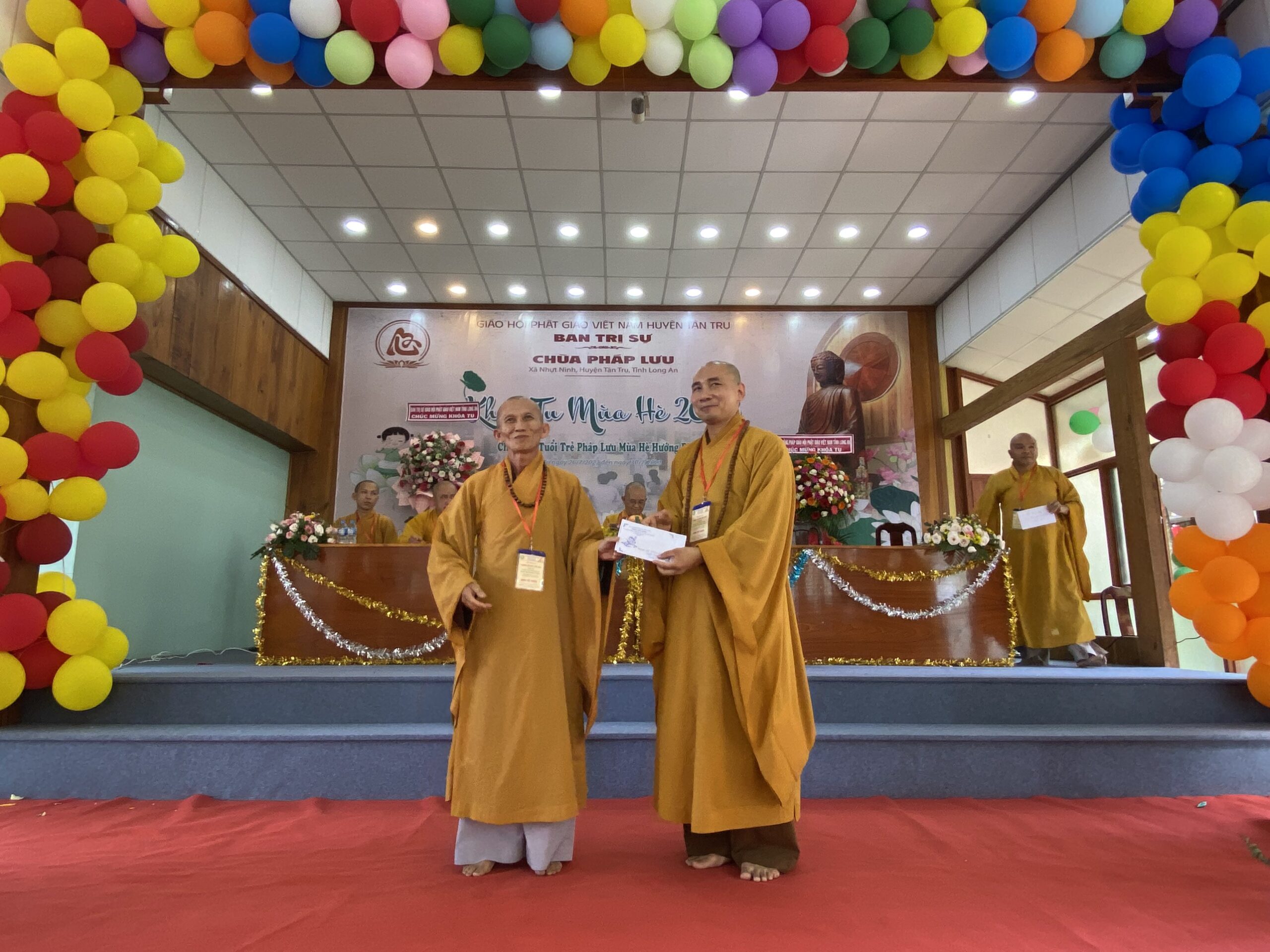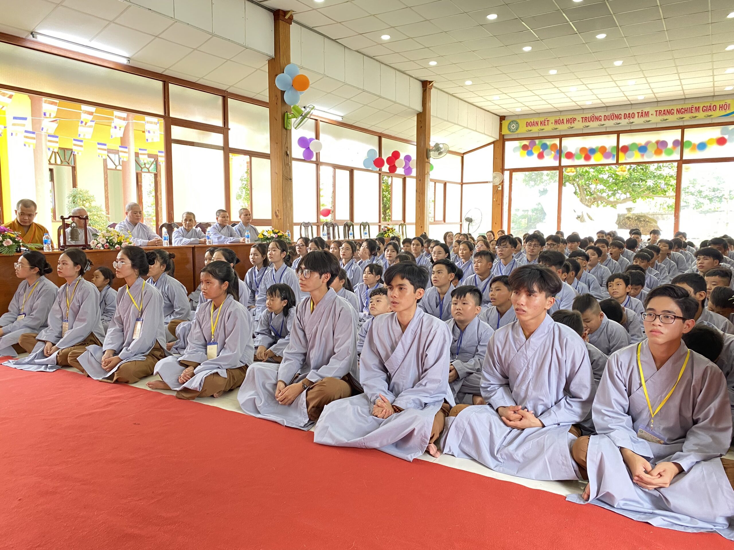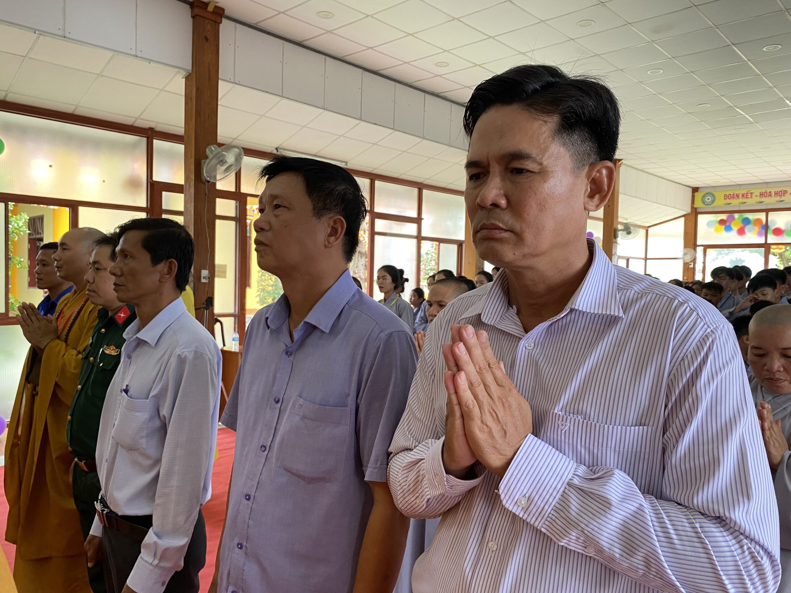 Chứng minh tham dự buổi lễ có Hòa thượng Thích Minh Thiện – UV HĐTS, Phó Trưởng Ban Hoằng pháp TƯ, Trưởng BTS GHPGVN tỉnh Long An; Đại đức Thích Lệ Ngôn- Phó Ban Trị sự kiêm trưởng Ban Hoằng Pháp GHPGVN tỉnh Long An; Đại đức Thích An Nhựt- Trưởng Ban Hướng dẫn Phật tử tỉnh Long An; Thượng toạ Thích Thiện Phước- CM BTS GHPGVN huyện Tân Trụ, Đại đức Thích Huệ Chơn Uỷ viên Ban Trị sự GHPGVN tỉnh Long An, Phó Trưởng ban Thường trực Ban Trị sự GHPGVN huyện Tân Trụ; cùng quý Chư tôn đức trong Ban Trị sự tỉnh, Chư tôn đức trong Ban Trị sự huyện và hơn 600 em khoá sinh đồng tham dự.