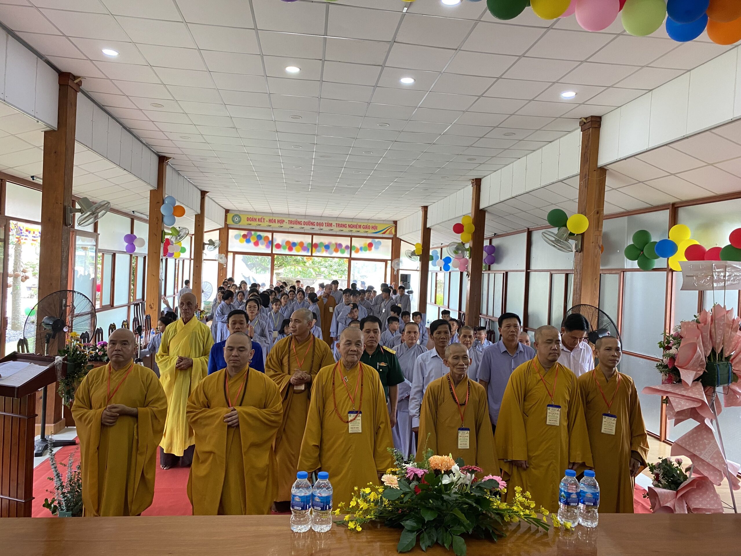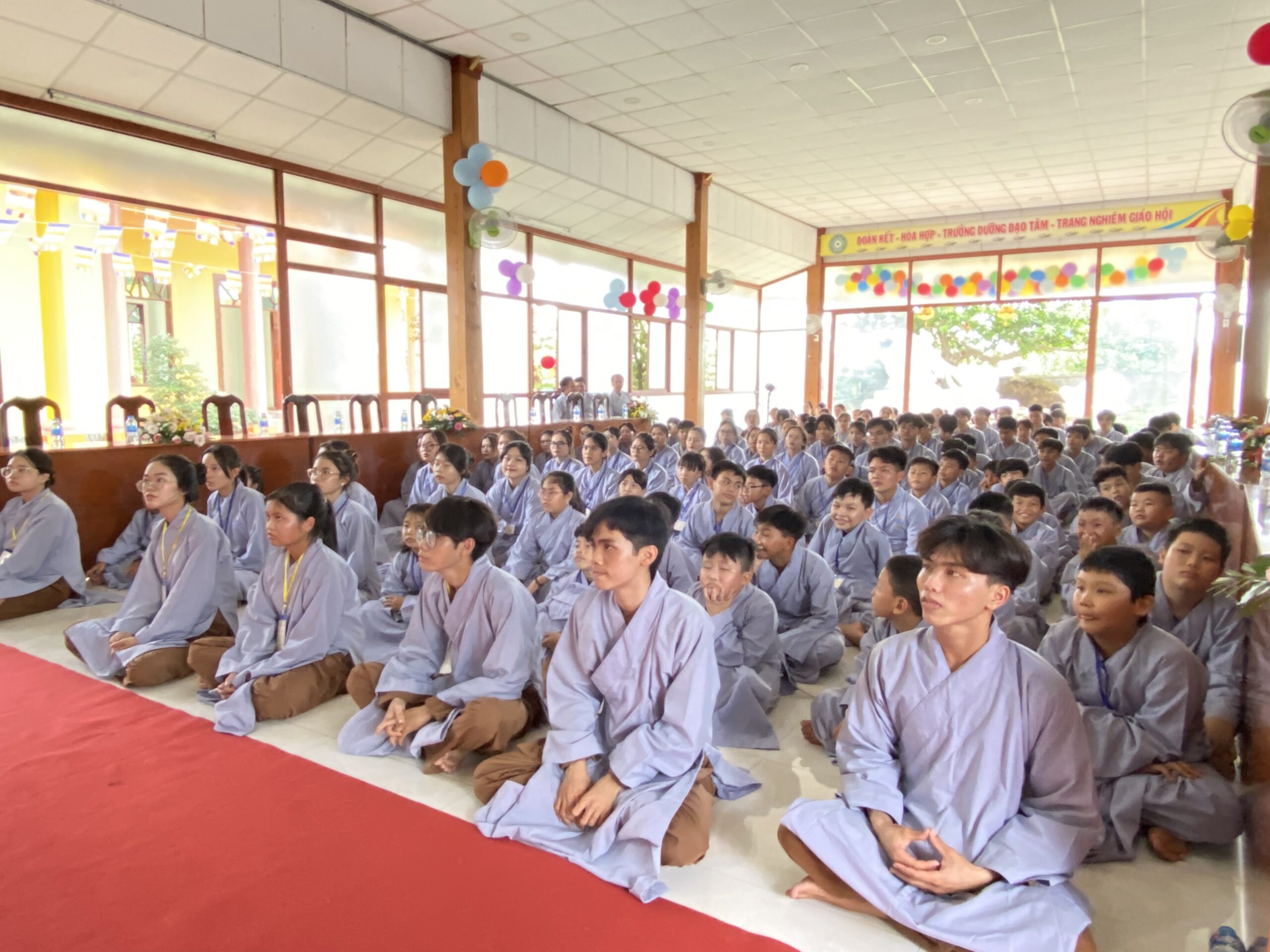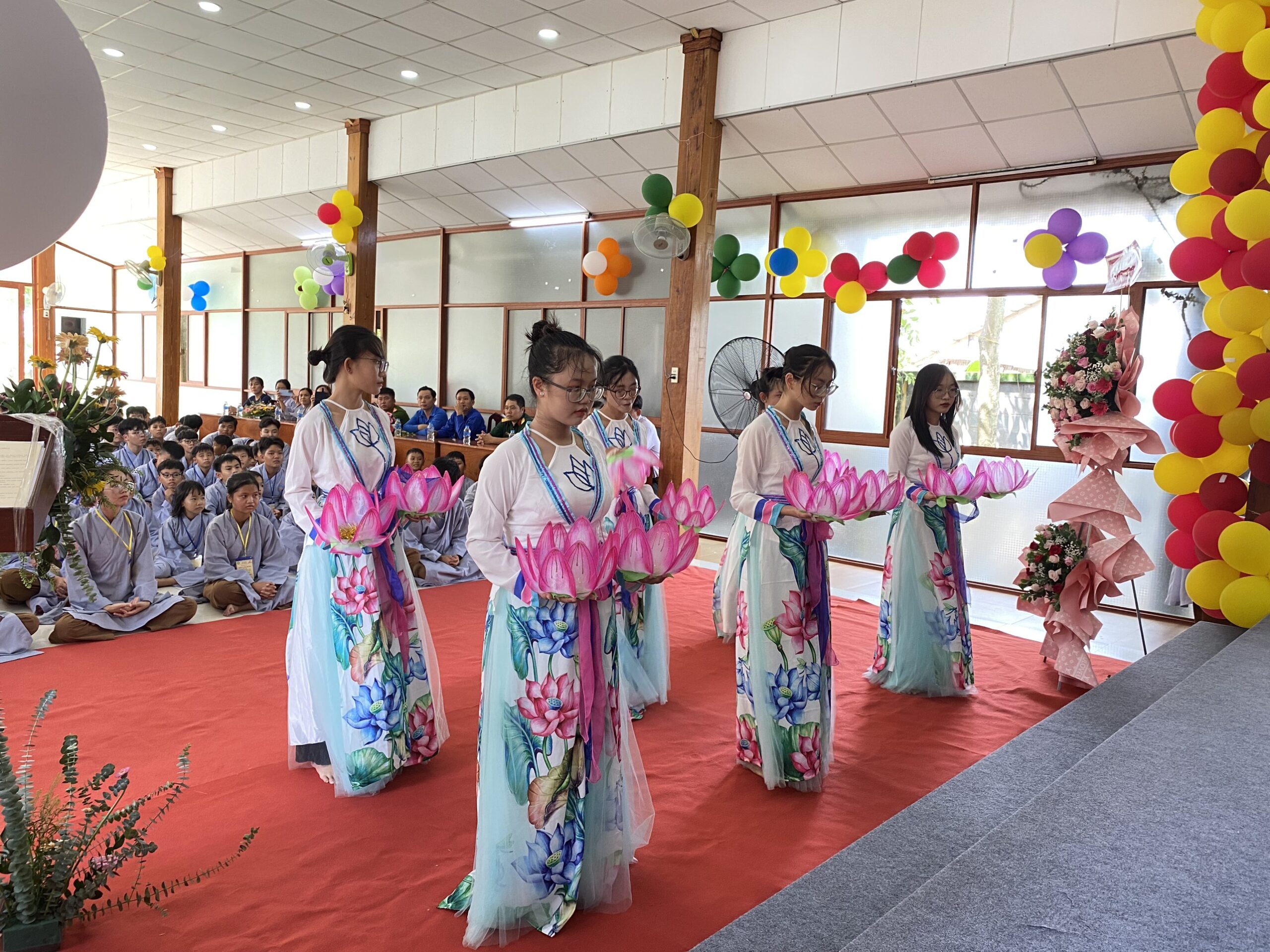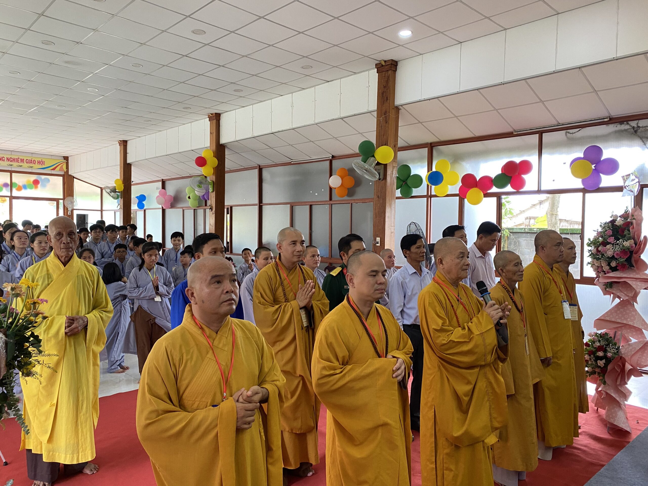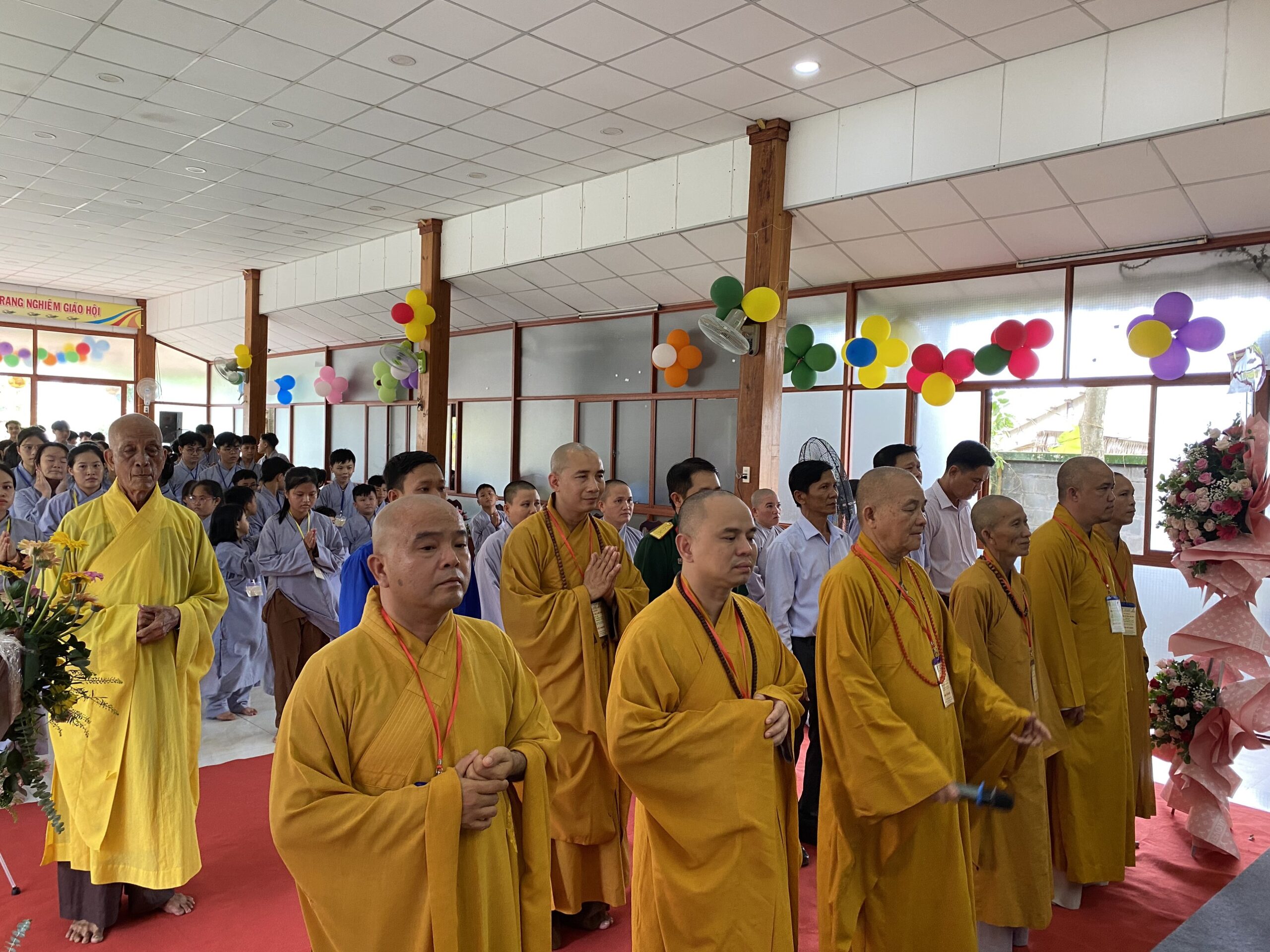 Chứng minh tham dự buổi lễ có Hòa thượng Thích Minh Thiện – UV HĐTS, Phó Trưởng Ban Hoằng pháp TƯ, Trưởng BTS GHPGVN tỉnh Long An; Đại đức Thích Lệ Ngôn- Phó Ban Trị sự kiêm trưởng Ban Hoằng Pháp GHPGVN tỉnh Long An; Đại đức Thích An Nhựt- Trưởng Ban Hướng dẫn Phật tử tỉnh Long An; Thượng toạ Thích Thiện Phước- CM BTS GHPGVN huyện Tân Trụ, Đại đức Thích Huệ Chơn Uỷ viên Ban Trị sự GHPGVN tỉnh Long An, Phó Trưởng ban Thường trực Ban Trị sự GHPGVN huyện Tân Trụ; cùng quý Chư tôn đức trong Ban Trị sự tỉnh, Chư tôn đức trong Ban Trị sự huyện và hơn 600 em khoá sinh đồng tham dự.