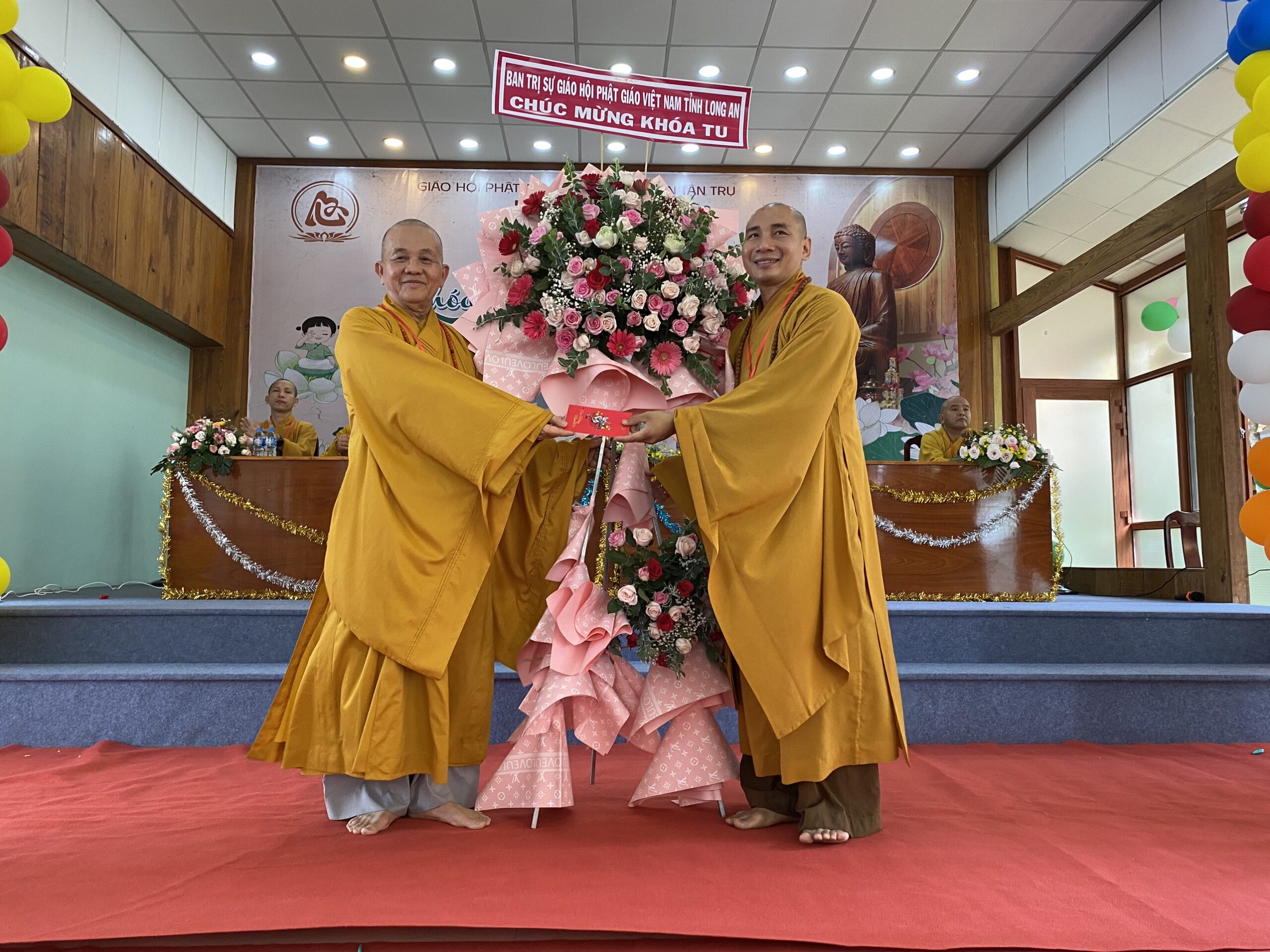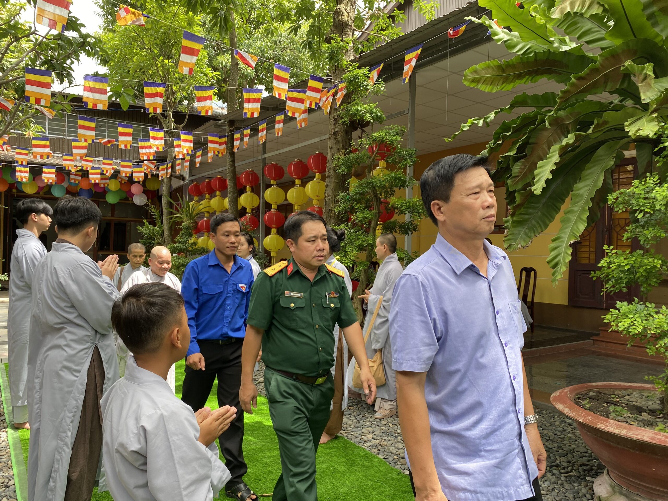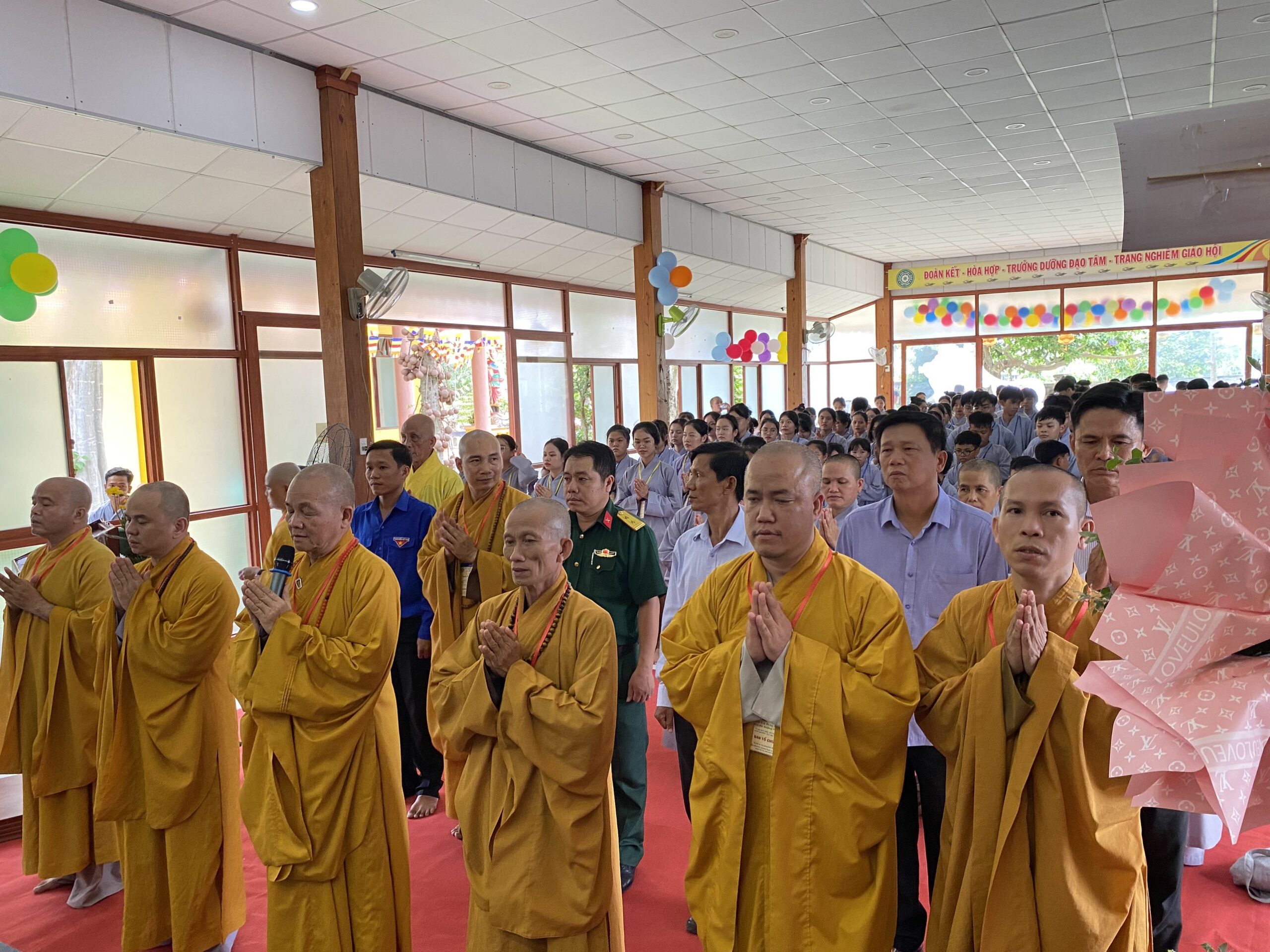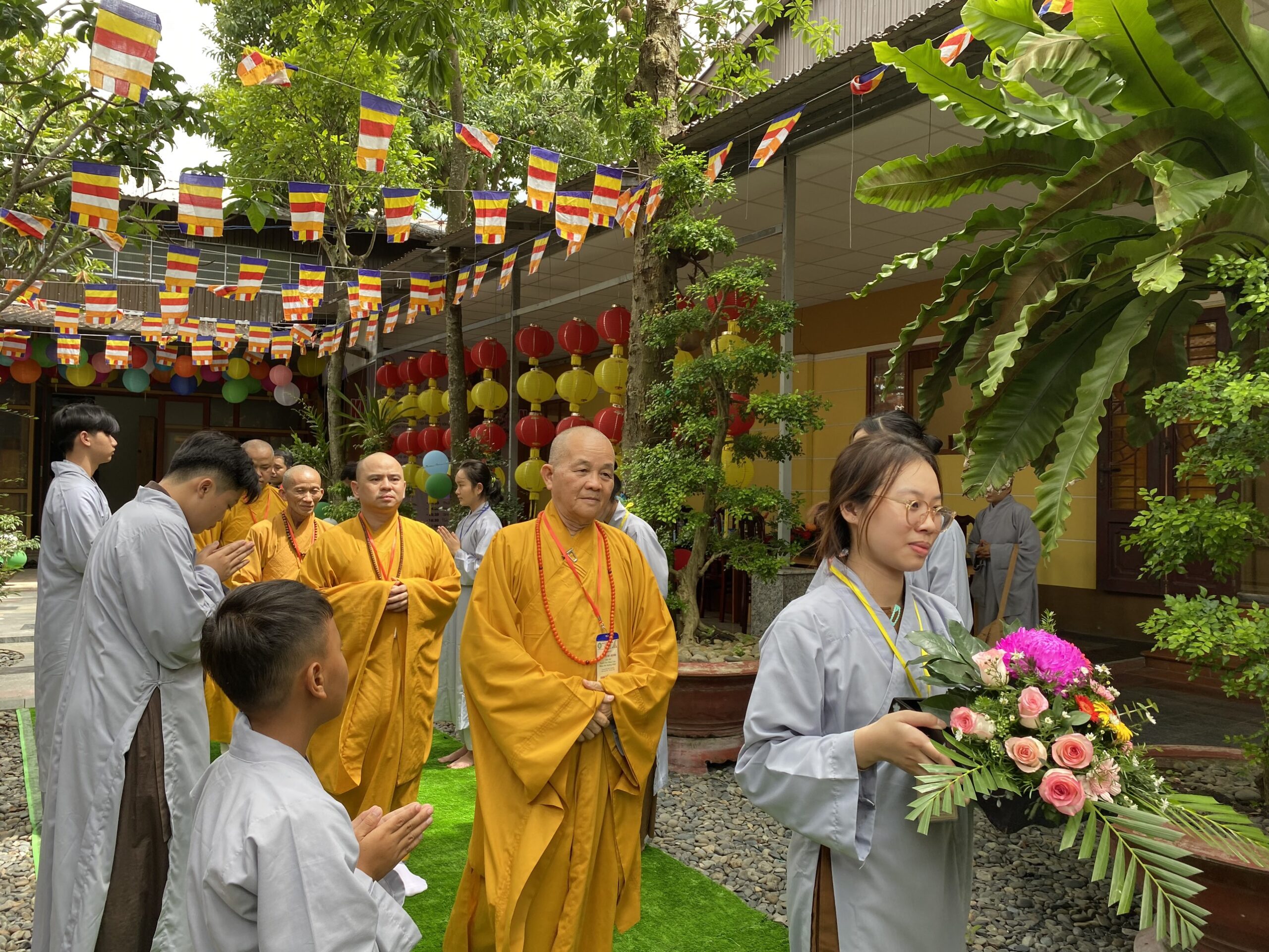 Chứng minh tham dự buổi lễ có Hòa thượng Thích Minh Thiện – UV HĐTS, Phó Trưởng Ban Hoằng pháp TƯ, Trưởng BTS GHPGVN tỉnh Long An; Đại đức Thích Lệ Ngôn- Phó Ban Trị sự kiêm trưởng Ban Hoằng Pháp GHPGVN tỉnh Long An; Đại đức Thích An Nhựt- Trưởng Ban Hướng dẫn Phật tử tỉnh Long An; Thượng toạ Thích Thiện Phước- CM BTS GHPGVN huyện Tân Trụ, Đại đức Thích Huệ Chơn Uỷ viên Ban Trị sự GHPGVN tỉnh Long An, Phó Trưởng ban Thường trực Ban Trị sự GHPGVN huyện Tân Trụ; cùng quý Chư tôn đức trong Ban Trị sự tỉnh, Chư tôn đức trong Ban Trị sự huyện và hơn 600 em khoá sinh đồng tham dự.