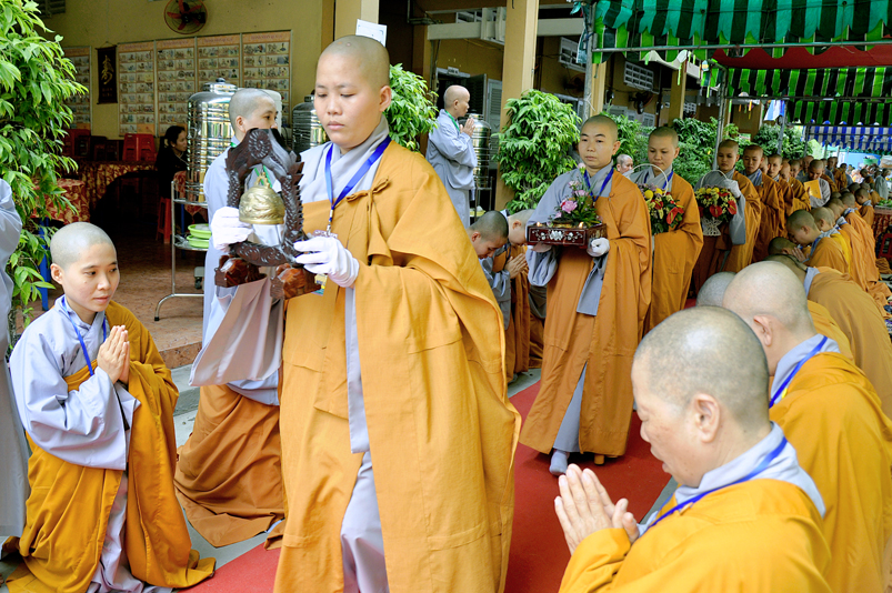 Đúng 16g, Lễ truyền giới Thức-xoa-ma-na kết thúc. Ban Nghi lễ cung thỉnh Chư Tôn Đức Thập sư hồi quy phương trượng. Ban Quản Giới tử tiếp tục xếp Đàn Tì-kheo.