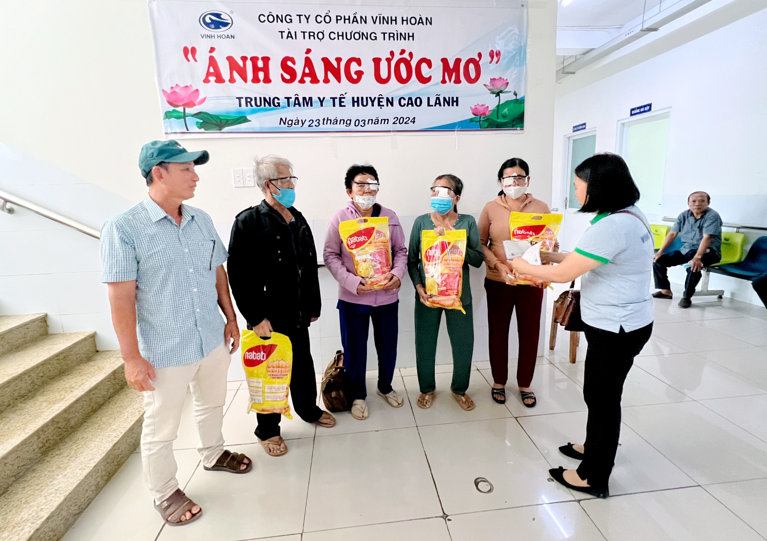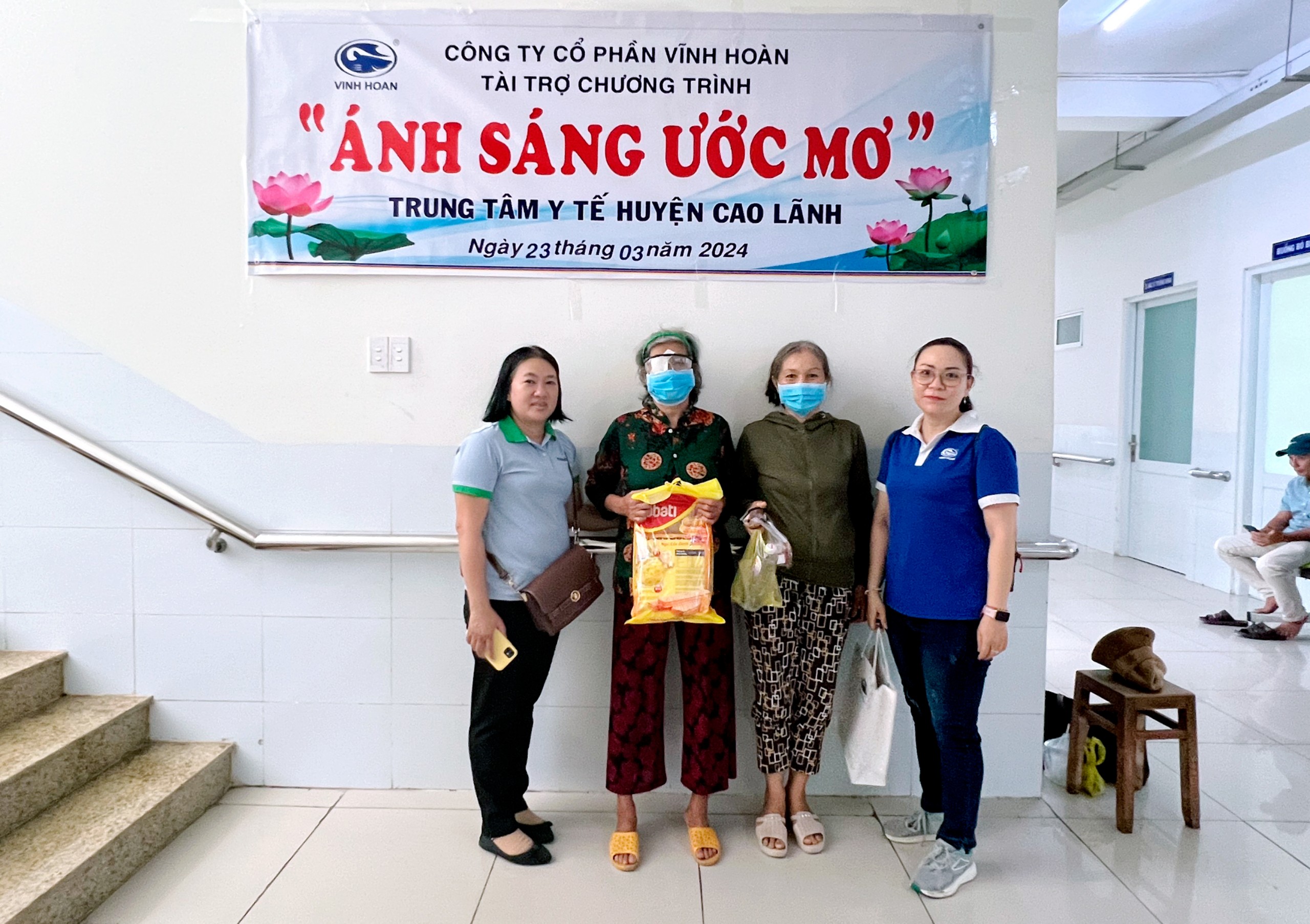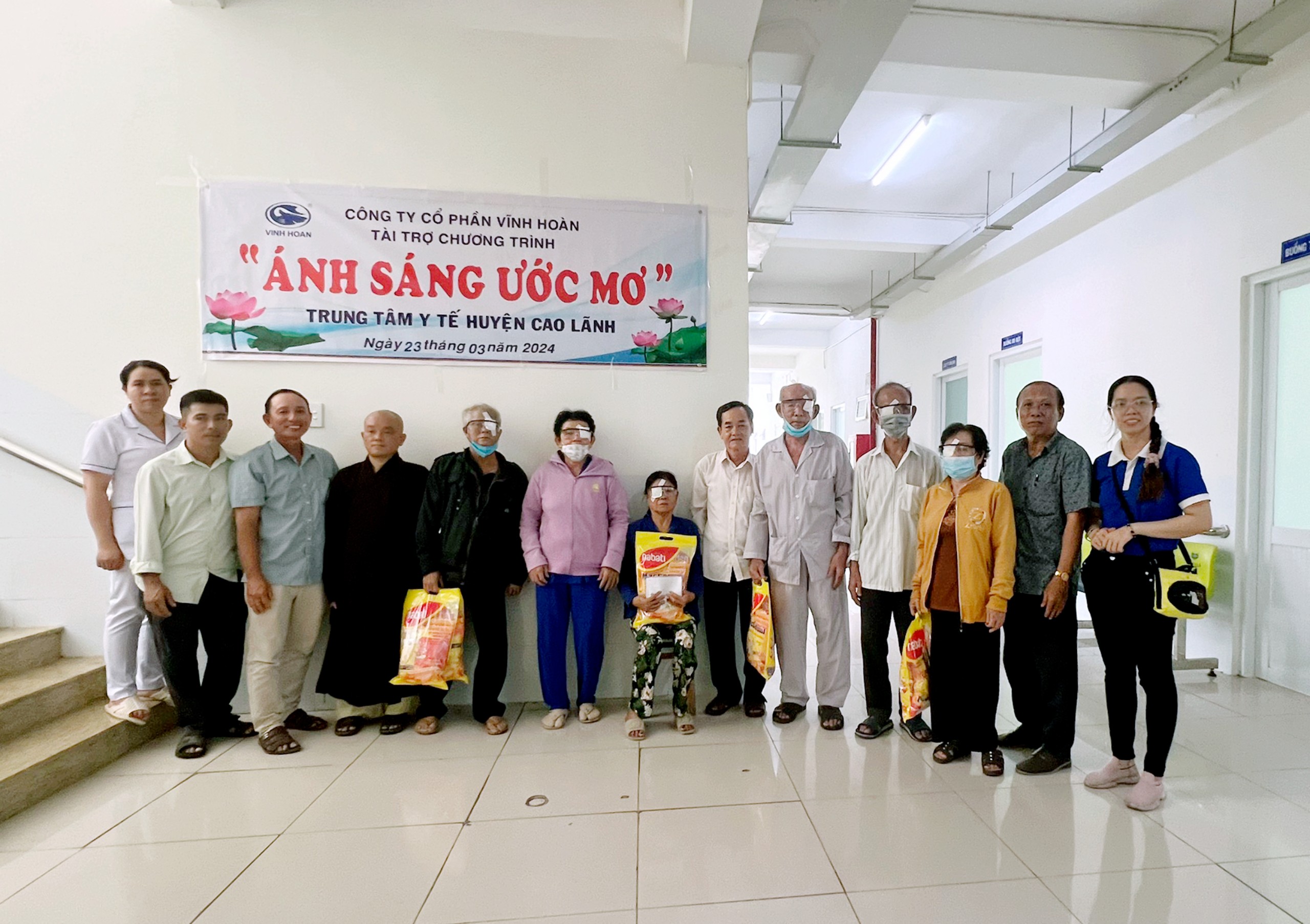 Khởi đầu năm Giáp Thìn, ngày 23- 24/03/ 2024, quý Lãnh đạo của Cty CP Vĩnh Hoàn và Đại đức Thích An Phúc – Ban từ thiện Tổ đình Kim Cang, ấp Bình Cang 1, xã Bình Thạnh, huyện Thủ Thừa, tỉnh Long An đã cùng đến Trung tâm y tế Huyện Cao Lãnh, tỉnh Đồng Tháp thực hiện chương trình Ánh sáng Ước mơ cho các bà con có hoàn cảnh khó khăn tại một số vùng huyện thị lân cận. Tổng số lần này là 109 ca bệnh.