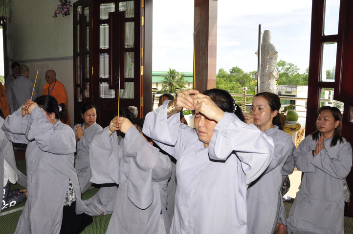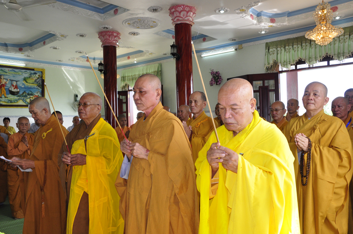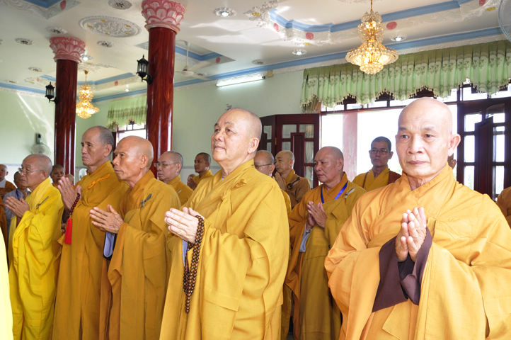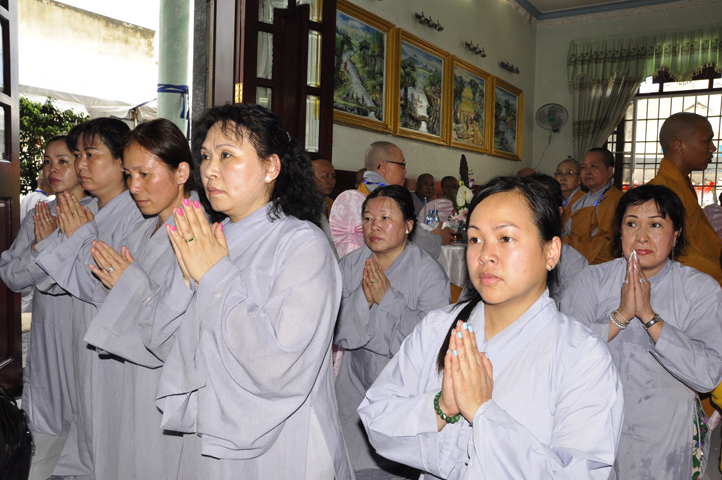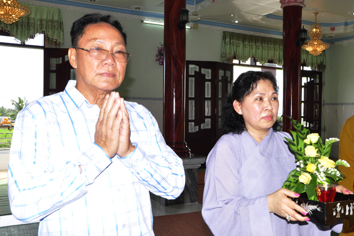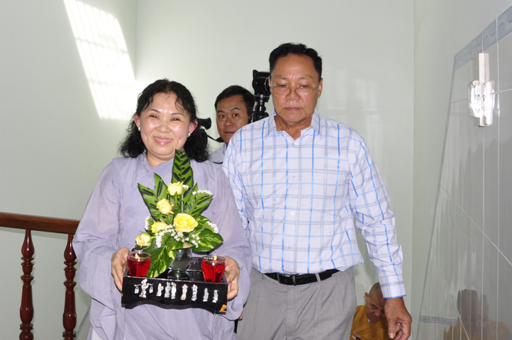 Từ mẫn, thân lâm chứng minh buổi lễ, gia đình Phật tử Ngọc Tuyết vô cùng xúc động và hoan hỷ được cung đón: HT. Thích Thiện Huệ – Chứng minh BTS GHPGVN tỉnh Long An; HT. Thích Minh Thiện – Ủy viên Hội Đồng Trị Sự trung ương, Phó ban Hoằng pháp trung ương, Trưởng Ban Trị sự GHPGVN tỉnh Long An, trụ trì chùa Thiên Châu; HT. Thích Tắc Phi – Chứng minh BTS GHPGVN huyện Bến Lức; cùng 500 quý chư tôn giáo phẩm, chư tôn thiền đức Tăng Ni.
