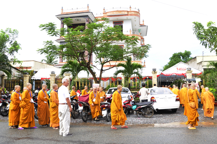 Được sự hướng dẫn của Ban Trị sự GHPGVN huyện Thủ Thừa, của bổn sư và sự đồng thuận của chính quyền sở tại; Vì lòng tin sâu Tam Bảo, và hiếu kính với mẹ cha, nhân lễ húy nhật thân mẫu – cụ bà Cổ Kim Huê, Phật tử Ngọc Tuyết sáng ngày 06/10/2017 ( 17 tháng 08/ Đinh Dậu), đã thành kính cung thỉnh 500 chư tôn đức giáo phẩm ba tỉnh: Bến Tre, Tiền Giang, Long An quang lâm tư gia thiết lễ chẩn tế và cúng dường Trai Tăng.