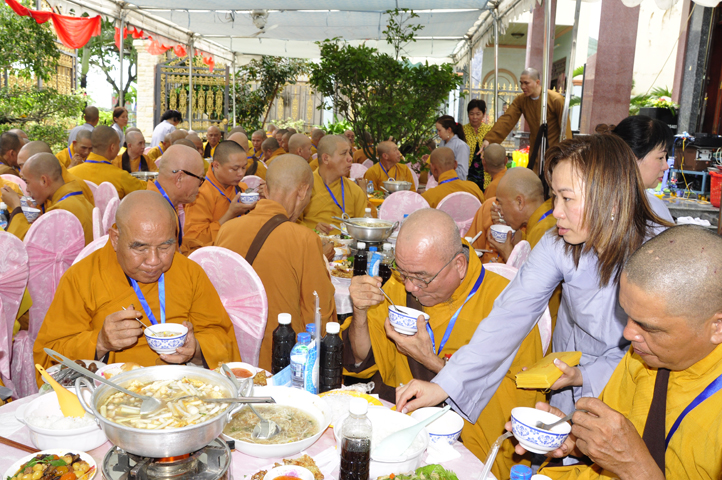 Trong chương trình, Phật tử Ngọc Tuyết cùng gia đình cung thỉnh quý chư tôn đức thiết lễ đàn tràng chẩn tế bạt độ gia tiên; và trang nghiêm như pháp thiết lễ cúng dường Trai Tăng lên 500 chư tôn đức Tăng Ni.