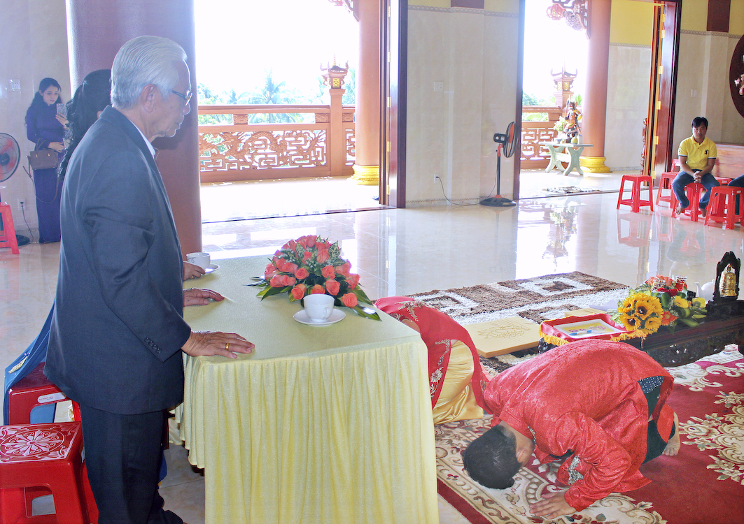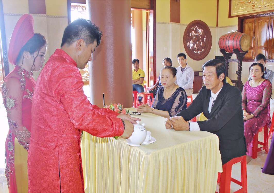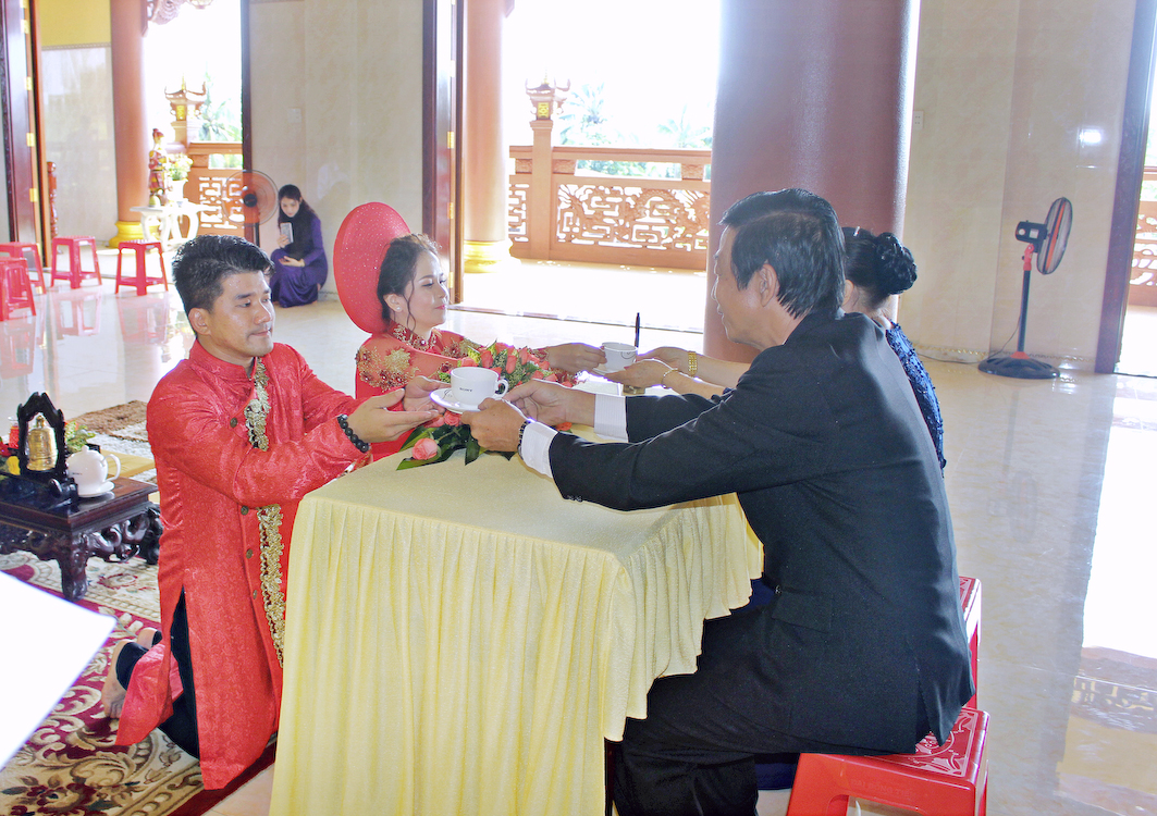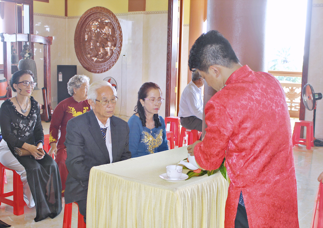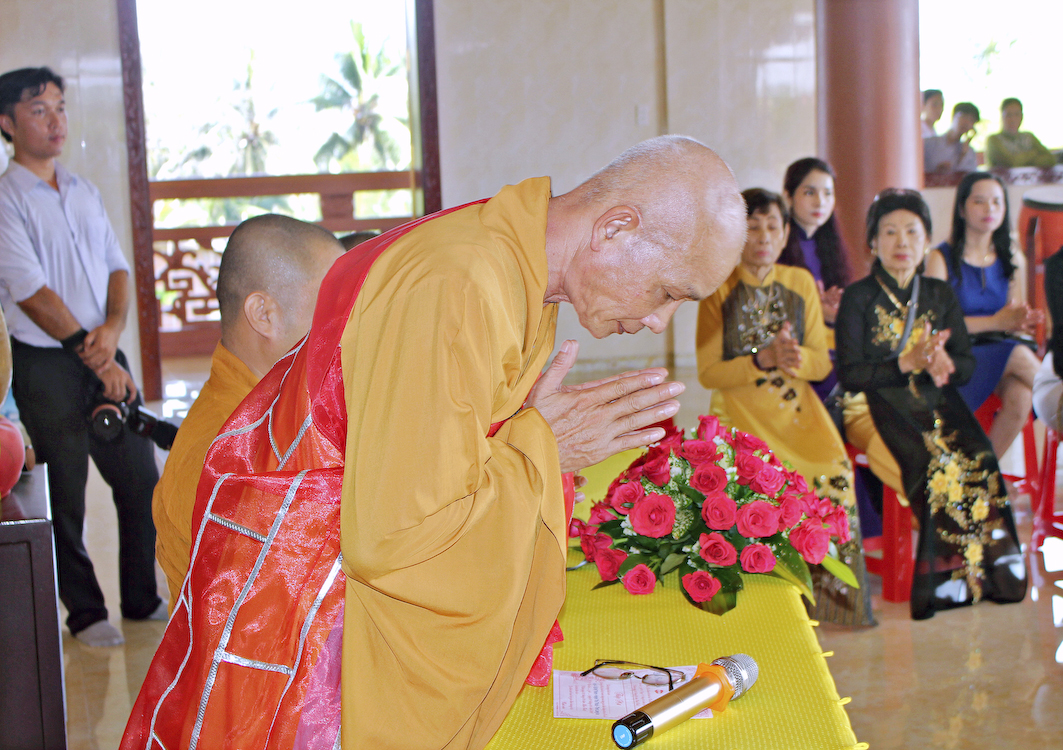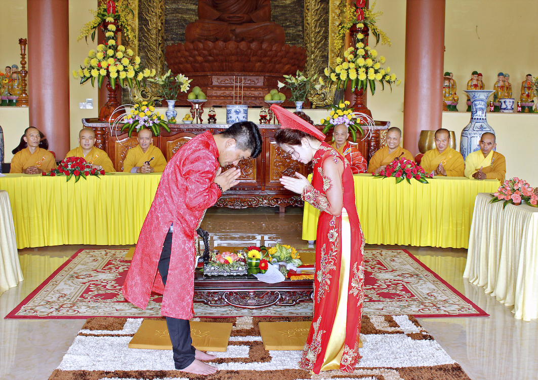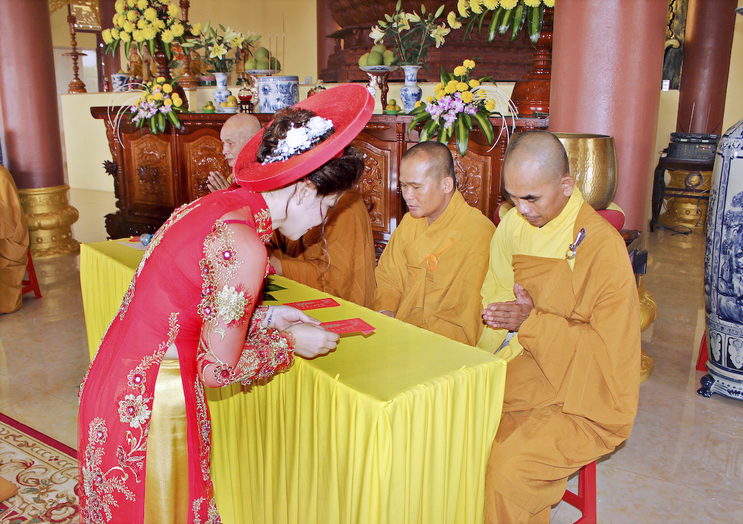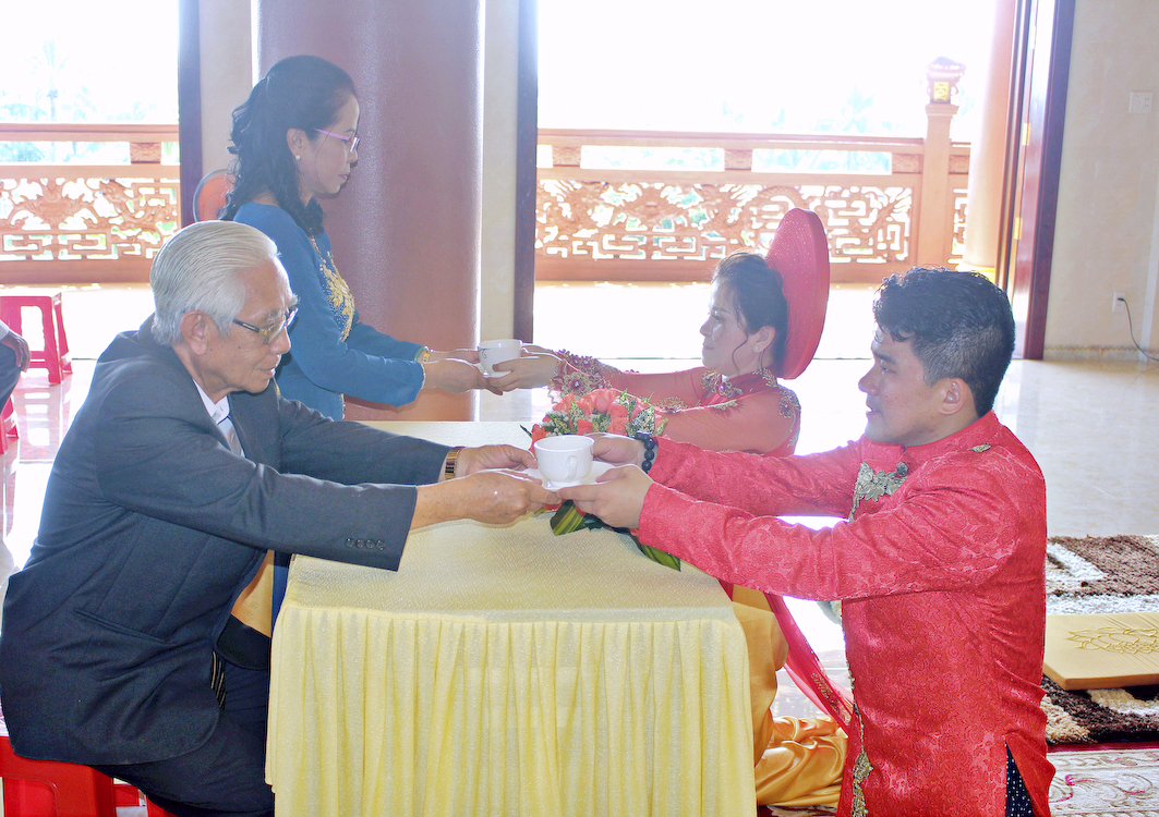 Đôi uyên ương Huỳnh Văn Hòa và Lê Thị Ngọc Mai đã nhận được rất nhiều lời chúc phúc và quà tặng của chư Tôn đức chứng minh, chư Tôn đức Tại tổ đình, cùng các Phật tử xa gần đạo bạn. Đồng thời cả hai đều hứa hẹn sẽ yêu thương, bảo vệ nhau đến ngày ‘răng long đầu bạc’. Đối trước chư Tôn đức, hai Phật tử đã đảnh lễ tạ ơn Cha Mẹ, đấng sanh thành đã dày công nuôi dưỡng người bạn đời của mình’ và tiếp đó cả hai vị đồng đảnh lễ tri ân chư Tôn đức.