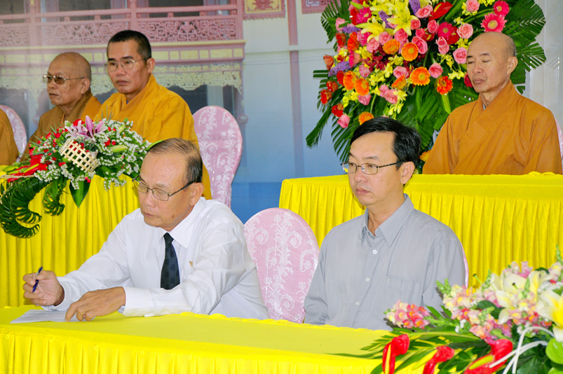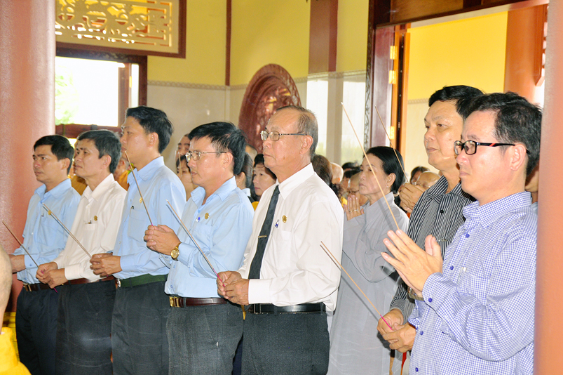 Về chính quyền có sự hiện diện của các vị khách quý cấp tỉnh: Ông Nguyễn Thanh Sơn- Uỷ viên Thường trực, Trưởng ban Dân Tộc – Tôn Giáo – MTTQVN tỉnh Long An; Ông Nguyễn Hoàng Đạt – Phó phòng Dân Tộc – Tôn Giáo, Ban Dân Vận Tỉnh uỷ tỉnh Long An; ông Nguyễn Thanh Tâm- Phó phòng nghiệp vụ ban Tôn giáo tỉnh Long An; ông Nguyễn Văn Thắm- Thường vụ huyện Uỷ- Chủ tịch UBMTTQ huyện Thủ Thừa; ông Nguyễn Văn Sanh- Phó Ban Dân vận huyện Uỷ huyện Thủ Thừa;ông Trần Ngọc Chiến- Trưởng phòng Nội vụ huyện Thủ Thừa; ông Châu Ngọc Quang- Bí Thư Đảng Uỷ, Chủ tịch HĐND xã Nhị Thành; ông Nguyễn Văn Dứt- Chủ Tịch UBND xã Nhị Thành, cùng quý vị trong đoàn huyện, thị các cấp ban ngành đoàn thể địa phương sở tại và hơn 700 Phật tử đồng tham dự lễ.