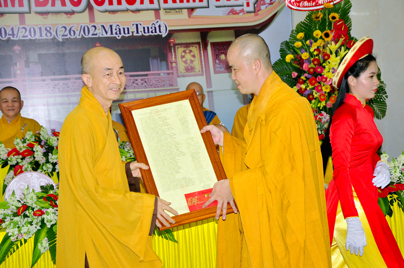 Về tham dự và chứng minh buổi lễ Lạc Thành, Ban tổ chức được cung thỉnh chư Tôn đức Giáo phẩm Thường trực GHPGVN tỉnh Long An: HT. Thích Thiện Huệ- Chứng minh BTS GHPGVN tỉnh Long An; HT. Thích Minh Thiện- UVHĐTS, Phó Trưởng Ban Hoằng pháp TƯ, Trưởng Ban Trị sự GHPGVN tỉnh Long An; HT. Thích Thiện Tâm- Phó ban trị sự GHPGVN tỉnh Long An; TT. Thích Minh Thọ- Uỷ viên HĐTSTƯ, Phó ban trị sự GHPGVN tỉnh Long An; TT. Thích Quảng Tâm- Uỷ viên HĐTSTƯ, Phó thường trực Ban trị sự GHPGVN tỉnh Long An; HT. Thích Huệ Bạch- Trưởng Ban trị sự GHPGVN huyện Cần Giuộc; HT. Thích Quảng Ý- Trưởng Ban trị sự GHPGVN liên huyện Tân Thạnh-Kiến Tường- Mộc Hoá- Vĩnh Hưng; HT. Thích Thiện Phúc- Trưởng Ban trị sự GHPGVN liên huyện Đức Hoà- Đức Huệ; HT. Thích Tắc Phi- Chứng minh Ban trị sự GHPGVN huyện Bến Lức; TT. Thích Từ Thiện- Trưởng Ban trị sự GHPGVN huyện Tân Trụ; ĐĐ. Thích Lệ Trí- Uỷ viên HĐTSTƯ, Phó ban trị sự GHPGVN tỉnh Long An; ĐĐ. Thích Lệ Duyên- Uỷ viên HĐTSTƯ, Chánh thư ký Ban trị sự GHPGVN tỉnh Long An; ĐĐ. Thích Hóa Minh- Trưởng Ban trị sự GHPGVN huyện Thủ Thừa; NT. Thích nữ Tuệ Đăng- Phó ban trị sự GHPGVN tỉnh Long An; NT. Thích nữ Gương Liên- Phó Ban trị sự GHPGVN tỉnh Long An; NT. Thích nữ Như Hương- Trưởng Ban trị sự GHPGVN huyện Thạnh Hoá; NS. Thích nữ Diệu Phước- Phó ban trị sự GHPGVN tỉnh Long An cùng chư Tôn đức Tăng Ni trụ trì các tự viện về tham dự.
