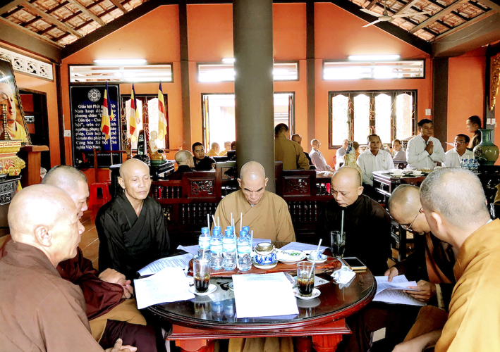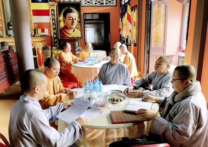 Thông qua bản báo cáo Tổng kết công tác Phật sự năm 2018, chư Tôn đức là trưởng các ban đầu ngành, như: Tăng sự, Pháp chế, Hoằng pháp và Hướng dẫn Phật tử đóng góp ý kiến đến Ban Thường trực để xây dựng bản phương hướng hoàn chỉnh và thiết thực hơn.