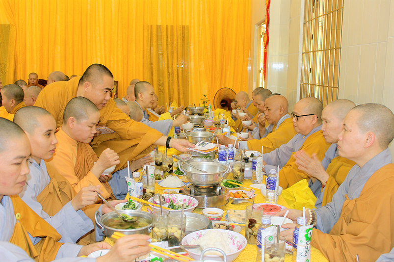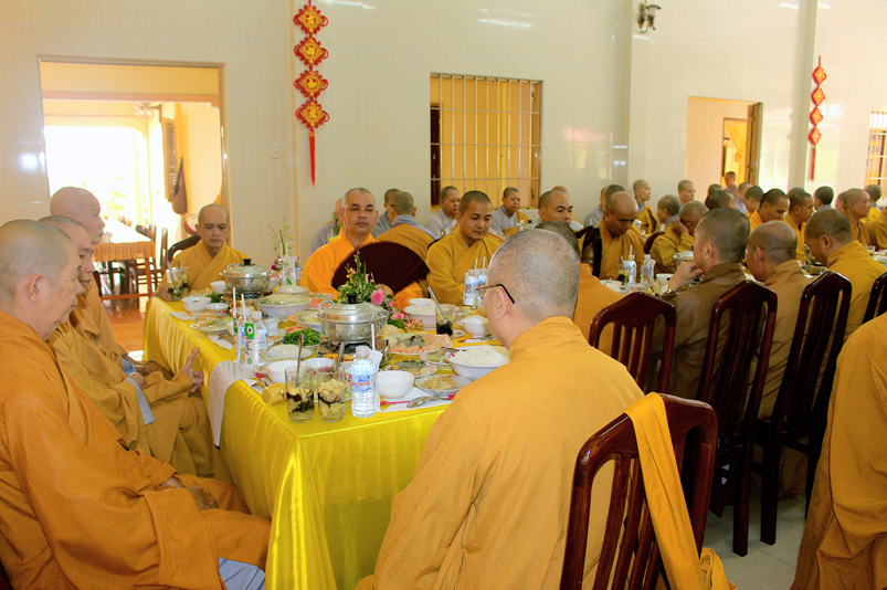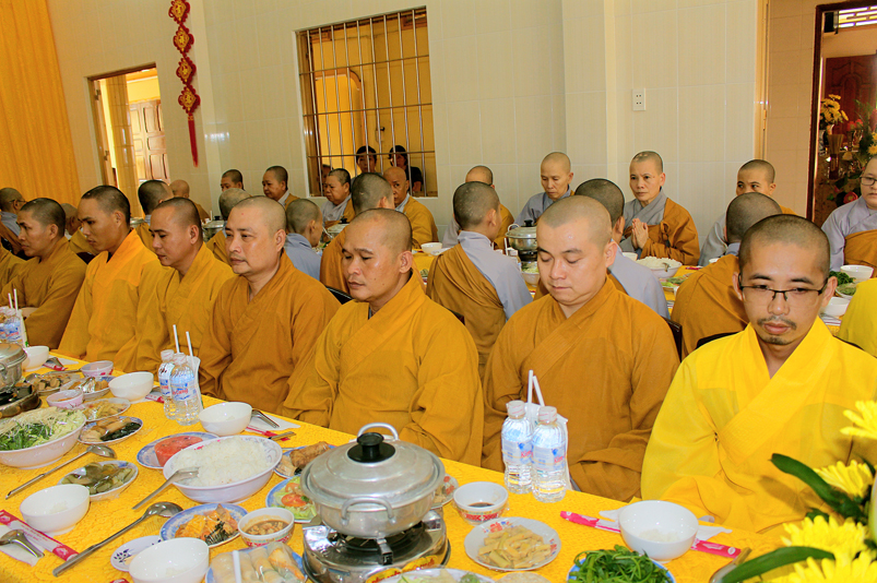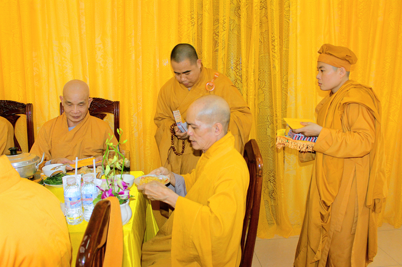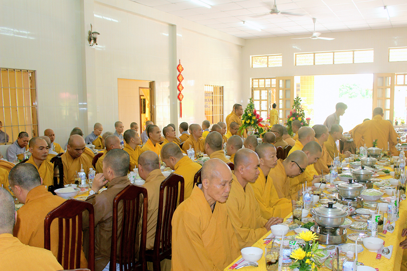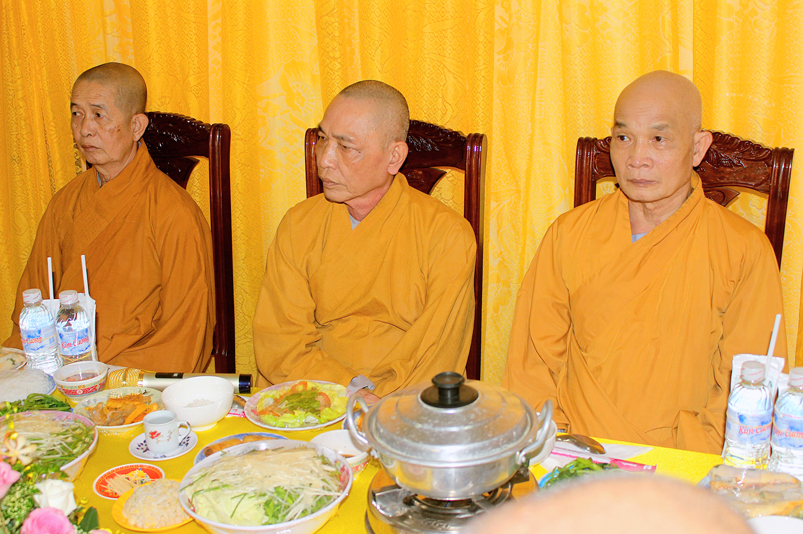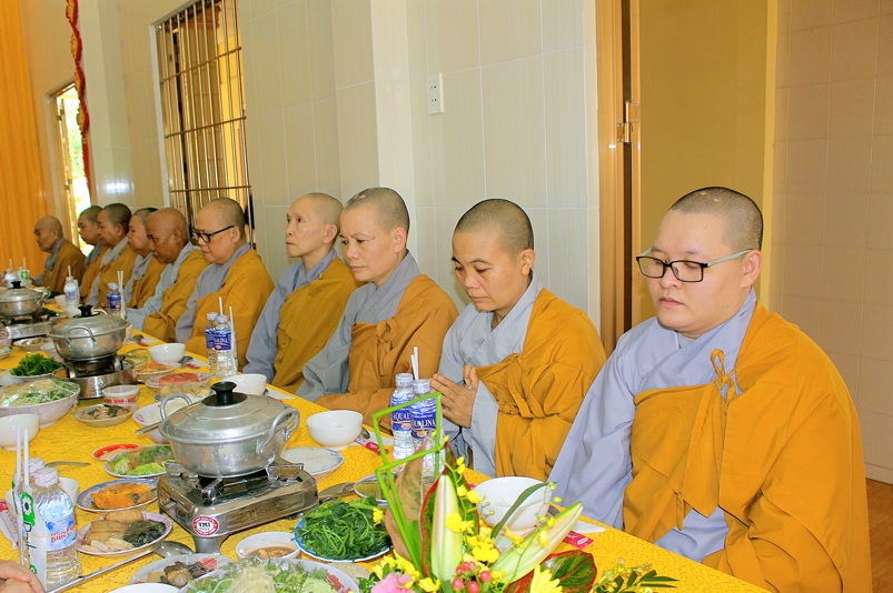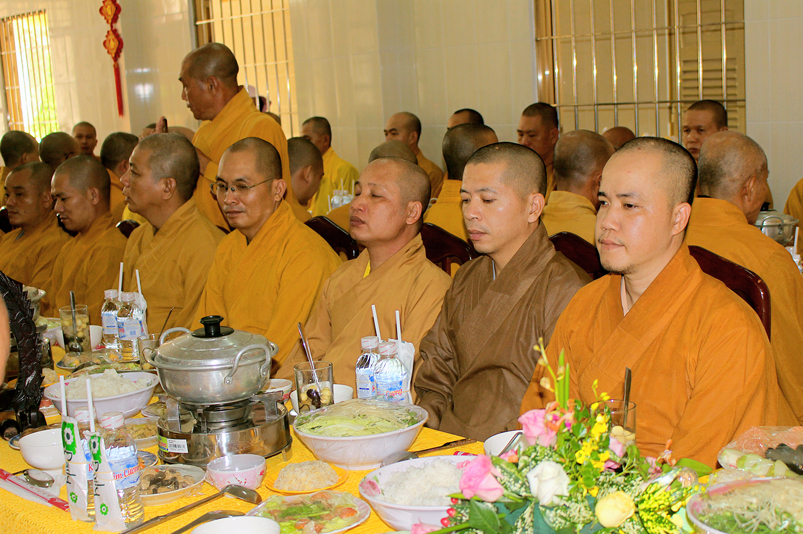 Sau khi kết thúc các nghi thức tụng niệm, cung tiến Giác linh, môn nhân pháp quyến đã cung thỉnh chư Tôn đức Giáo phẩm Ban Trị sự GHPGVN tỉnh Long An cùng chư Tôn đức Tăng Ni tại chứng dự trai đường.