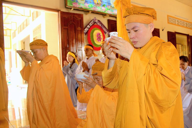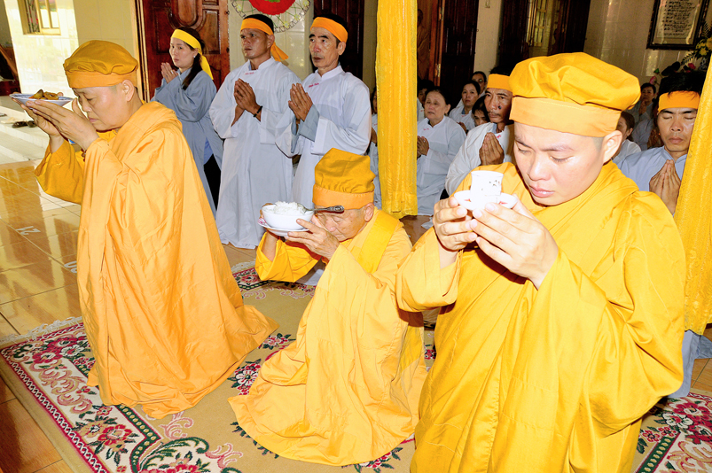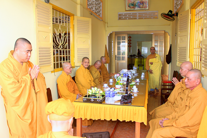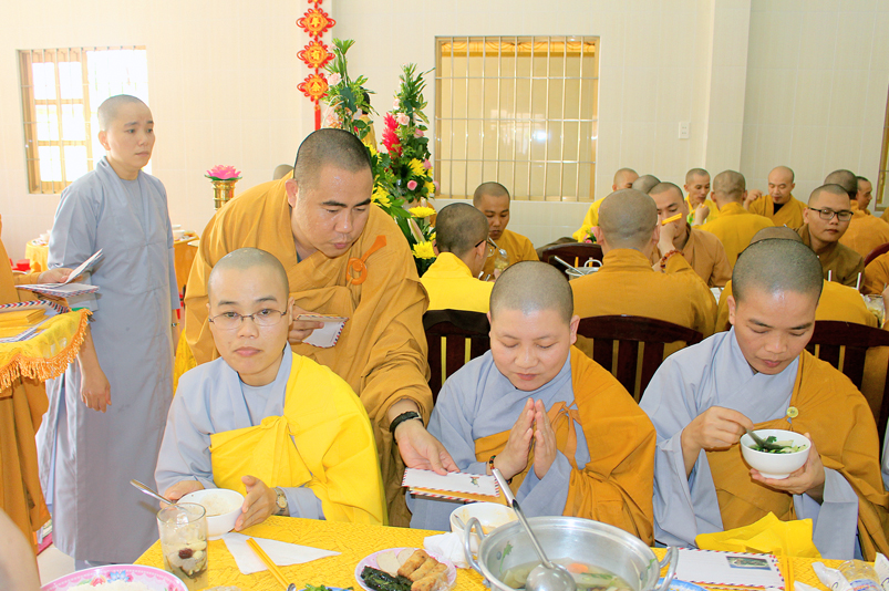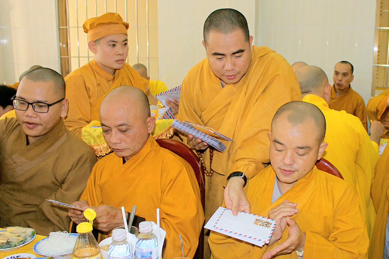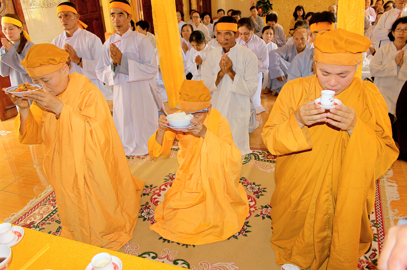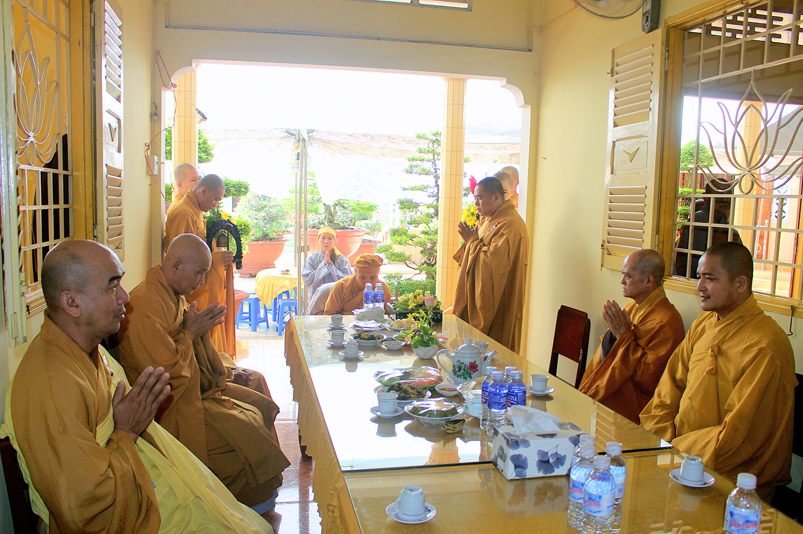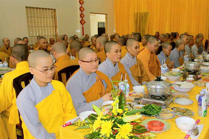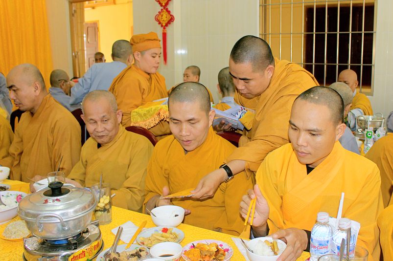 Sau khi kết thúc các nghi thức tụng niệm, cung tiến Giác linh, môn nhân pháp quyến đã cung thỉnh chư Tôn đức Giáo phẩm Ban Trị sự GHPGVN tỉnh Long An cùng chư Tôn đức Tăng Ni tại chứng dự trai đường.