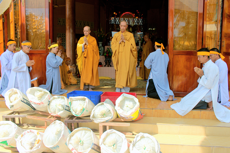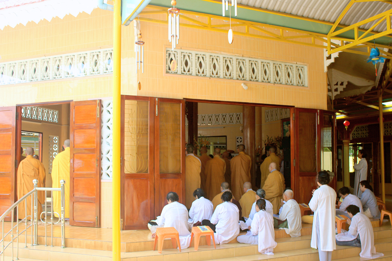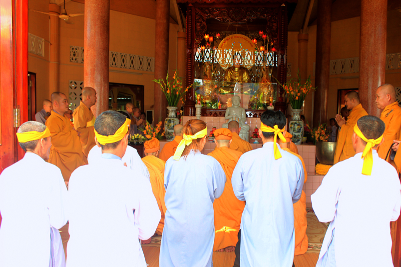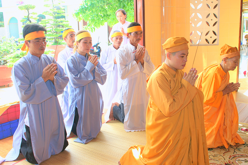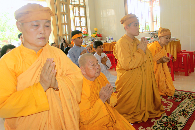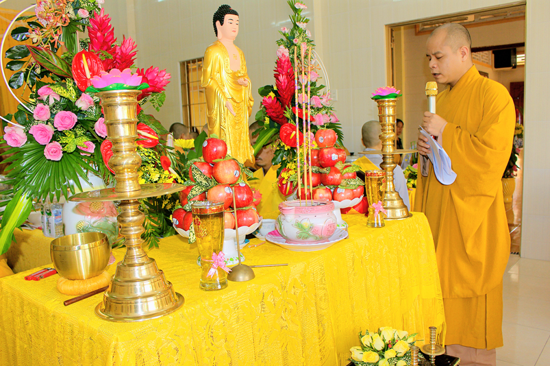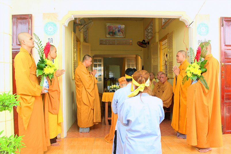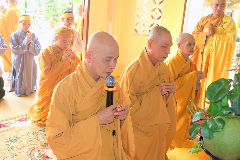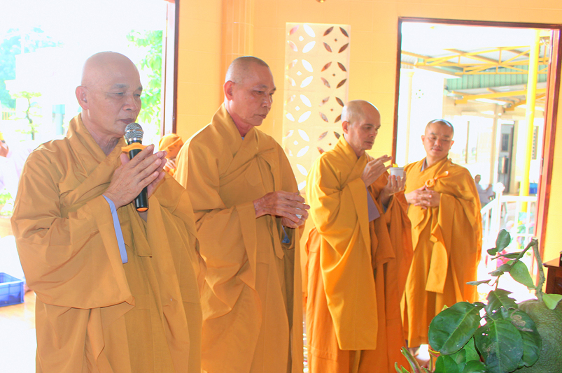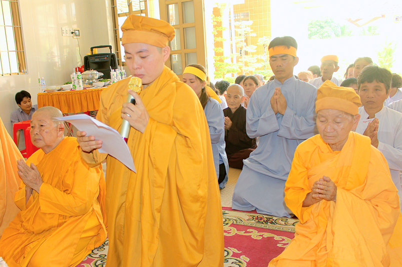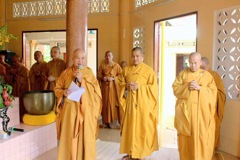 Vào lúc 8h, chư Tôn đức Tăng Ni trụ trì các tự viện thuộc huyện Tp. Tân An,Thủ Thừa, Bến Lức, Châu Thành đã quang lâm Tịnh xá, tham dự nghi thức cúng Ngọ cúng dường hồi hướng công đức cho Pháp quyến.