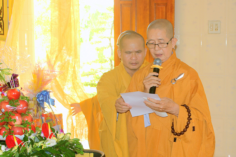 Đại đức Thích Hoá Minh thay mặt toàn thể môn đồ pháp quyến tuyên dương công đức Ni trưởng (bậc long tượng của Ni giới huyện Thủ Thừa) có nhiều đóng góp to lớn trọng sự nghiệp hoằng dương Chánh pháp của Phật giáo huyện nhà. Đại đức tri ân Chư tôn đức nhị bộ tăng già chấn tích quang lâm chú nguyện, chứng minh trai lễ hồi hướng công đức đến chúc nguyện cố Ni trưởng cao đăng phẩm vị và chúc sức khoẻ đến quý Ngài.