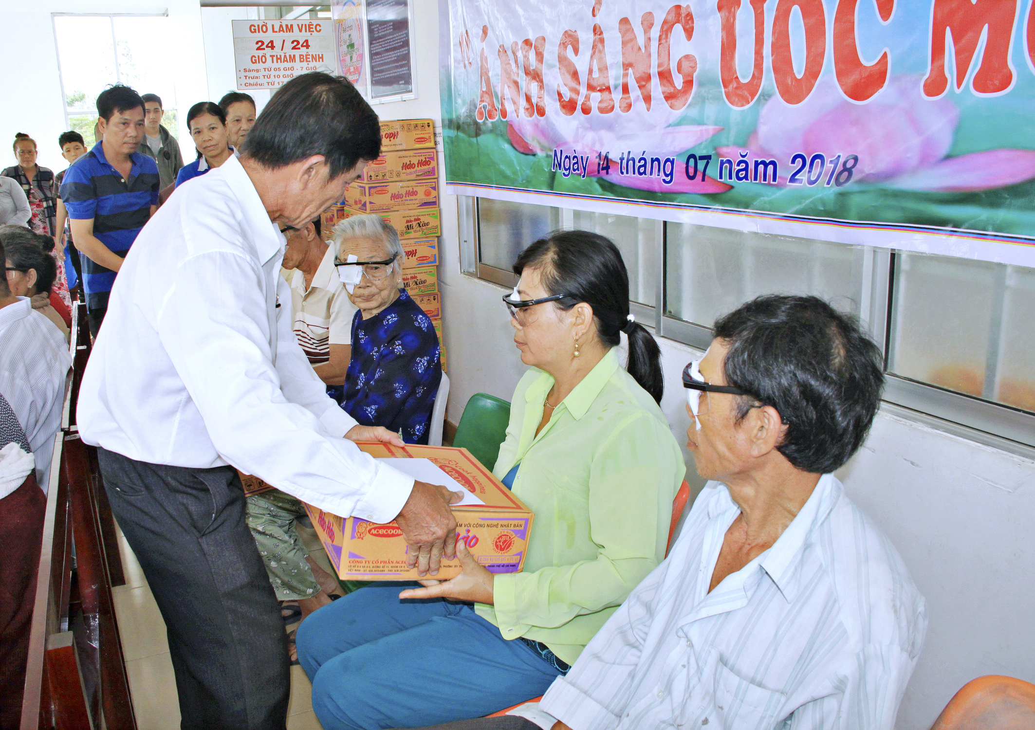 Theo chương trình đã hẹn trước, các Y Bác sĩ, điều dưỡng tại ca trực đã ân cần đón tiếp đoàn và hướng dẫn đưa bệnh nhân vào khu vực phẫu thuật, tiến hành các khâu xét nghiệm cần thiết. Khoảng 9 giờ, các ca phẫu thuật mắt được thực hiện, mọi việc diễn ra vô cùng thuận lợi tốt đẹp. Sau khi phẫu thuật, các bệnh nhân đều nhận được một phần quà & bao thư tiền mặt của nhà tài trợ trao tặng cùng cập mắt kính che bụi do tiệm Kính Duy Cường Tp. Tân An tỉnh Long An.