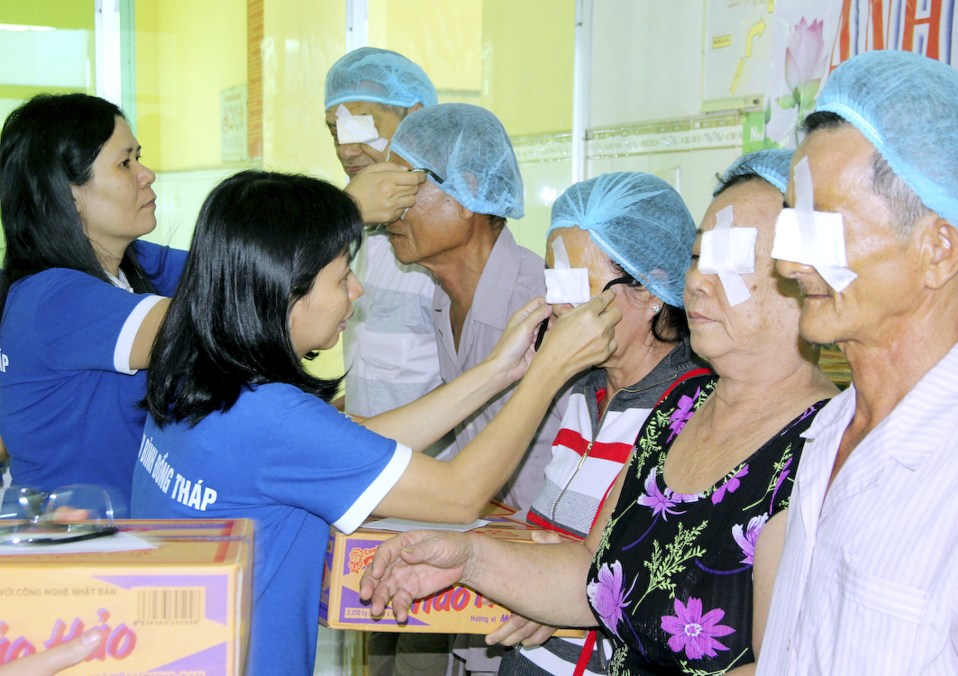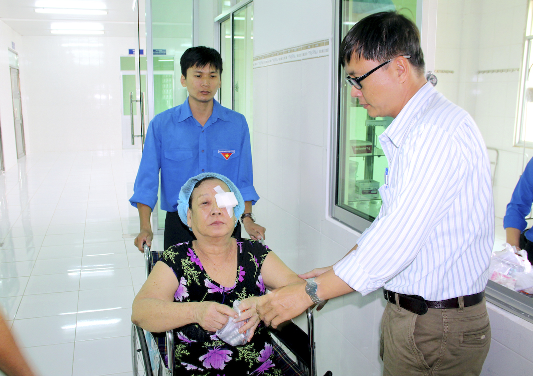 Đúng 6h00 sáng, đoàn xuất phát đến Trung tâm Y tế huyện Thanh Bình để thăm và phát quà cho bà con đã phẫu thuật xong. Được biết, lần này có 68 ca phẫu thuật. Đại Đức Thích An Phúc đại diện cho đoàn cũng như nhà tài trợ thăm hỏi sức khỏe đến bà con sau khi phẫu thuật xong. Sau đó Đại đức đã gửi tặng đến bà con mỗi người một phần quà nhỏ kèm theo một bao thư trị giá 100.000 VNĐ (một trăm nghìn đồng) và một cặp kính để che bụi.