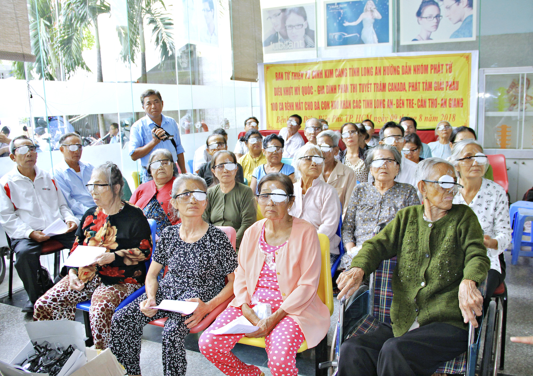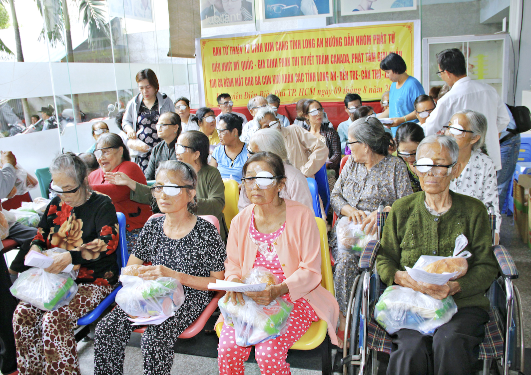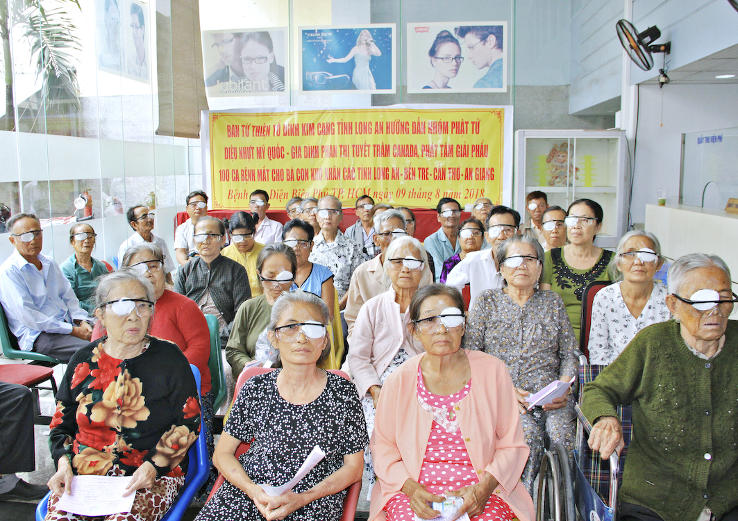 Tuy nhiên, do lịch trình thời gian không thuận tiện để thực hiện cùng lúc hai sự việc nên Ban từ Thiện Tổ đình Kim Cang đã đại diện cho nhóm Phật tử Diệu Nhựt và gia đình Phan Thị Tuyết Trâm Canada, đến bệnh viện Điện Biên Phủ Tp.HCM, tài trợ 100 ca phẫu thuật mắt cho bà con ở các tỉnh Long An, Bến Tre, Cần Thơ, An Giang.