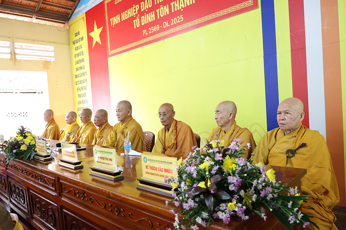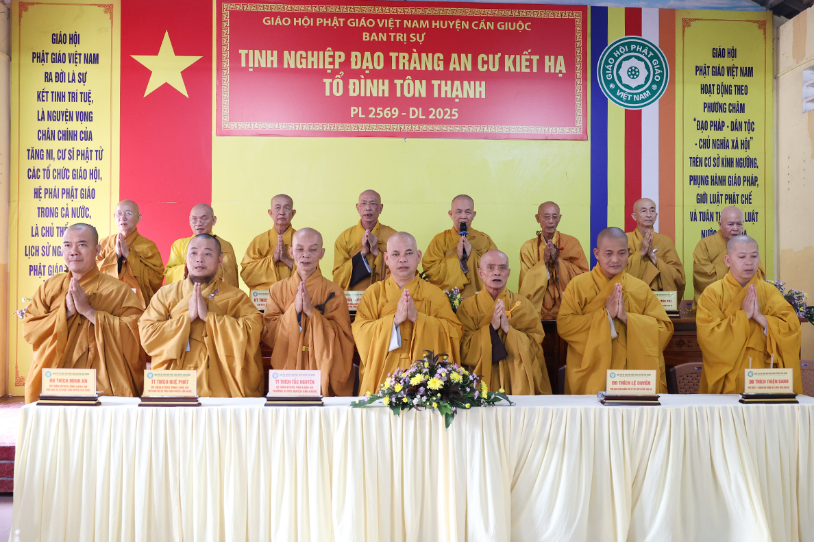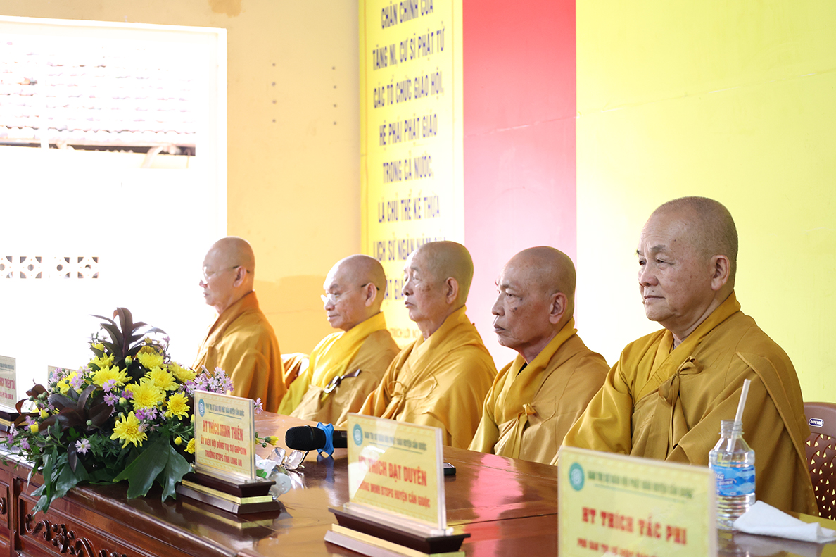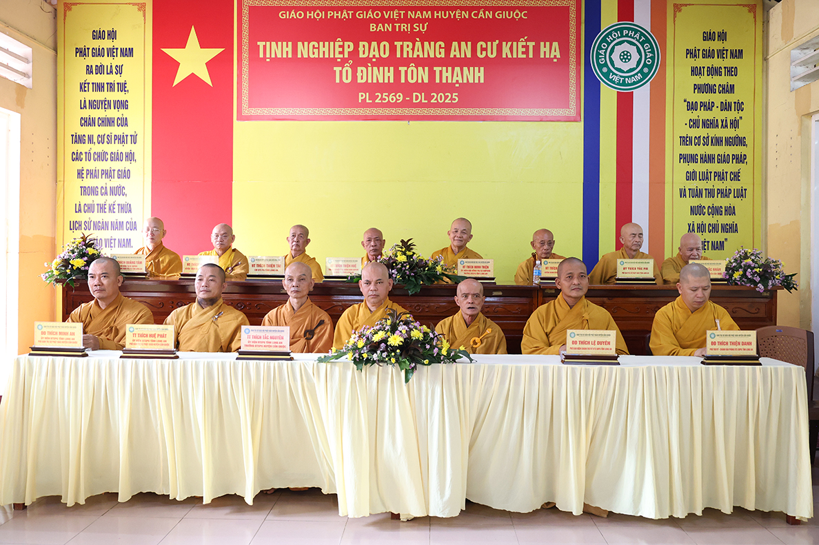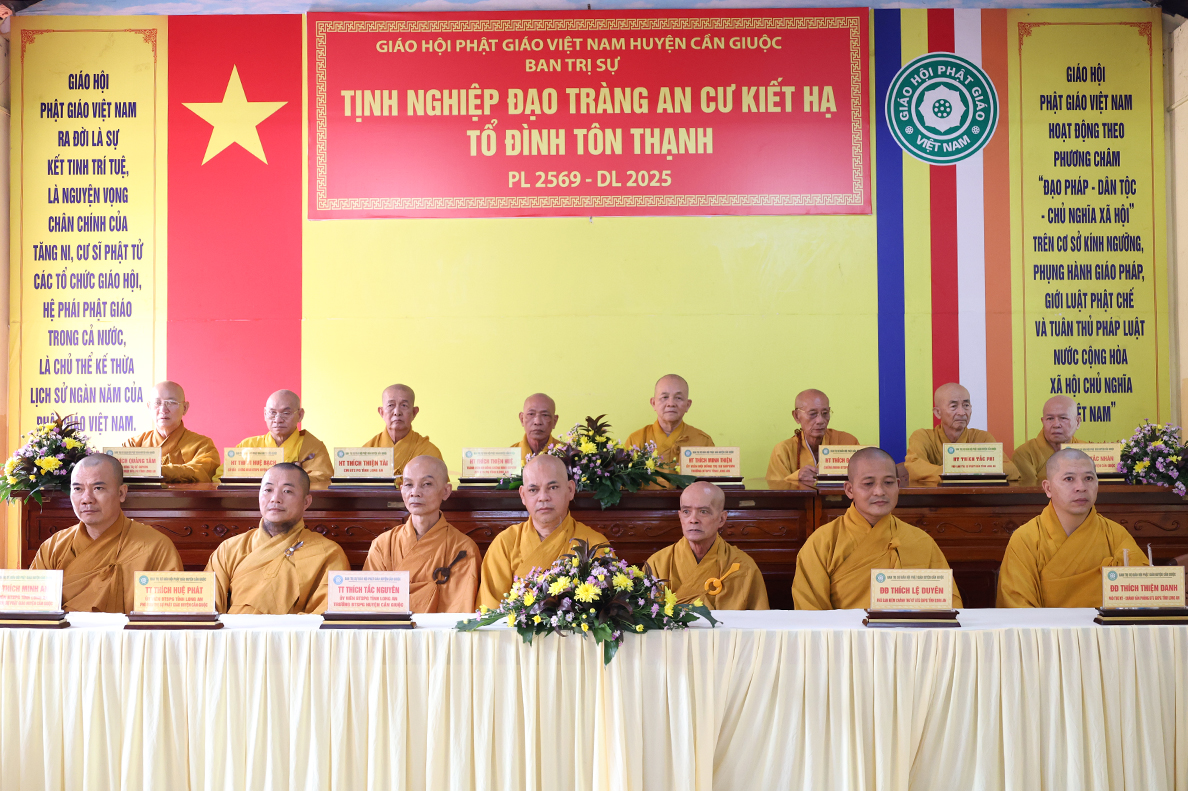 Quang lâm về chứng minh và tham dự buổi lễ có: Trưởng lão HT. Thích Thiện Huệ – Thành viên HĐCM, Chứng minh BTS GHPGVN tỉnh Long An; HT. Thích Thiện Tài – Chứng minh BTS GHPGVN tỉnh; HT. Thích Minh Thiện – UV HĐTS, Phó ban Hoằng pháp TƯ, Trưởng BTS GHPGVN tỉnh, Trưởng ban Chỉ đạo An cư Kiết hạ tỉnh Long An; TT. Thích Quảng Tâm – UV HĐTS, Phó Trưởng Ban Thường trực BTS GHPGVN tỉnh; HT. Thích Tắc Phi – Phó BTS kiêm Trưởng ban Pháp chế GHPGVN tỉnh; HT. Thích Huệ Bạch, HT. Thích Đạt Duyên, HT. Thích Tắc Nhàn – đồng chứng minh BTS GHPGVN huyện Cần Giuộc; ĐĐ. Thích Lệ Duyên – Phó ban kiêm Chánh Thư ký BTS GHPGVN tỉnh; TT. Thích Tắc Nguyên – UVTT BTS GHPGVN tỉnh, Trưởng BTS GHPGVN huyện Cần Giuộc; Chư tôn đức Ban Thường trực BTS GHPGVN tỉnh Long An, huyện Cần Giuộc, Chư tôn đức là hành giả an cư về tham dự.