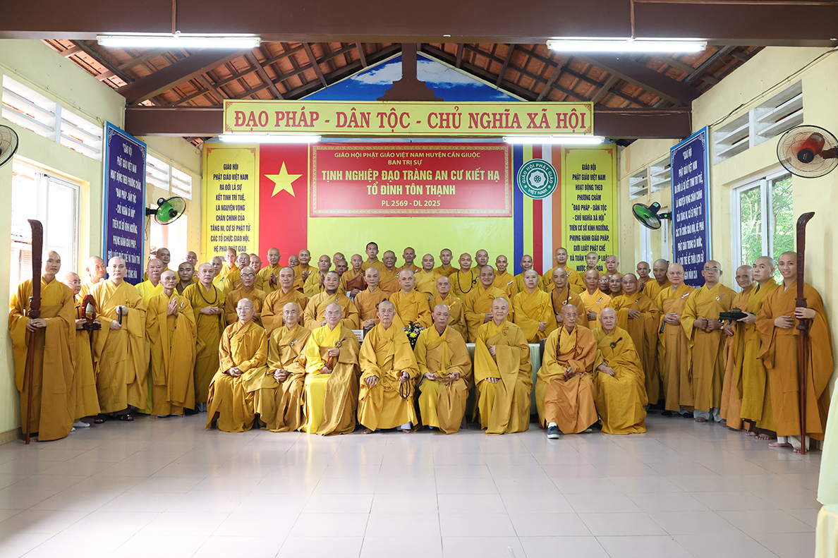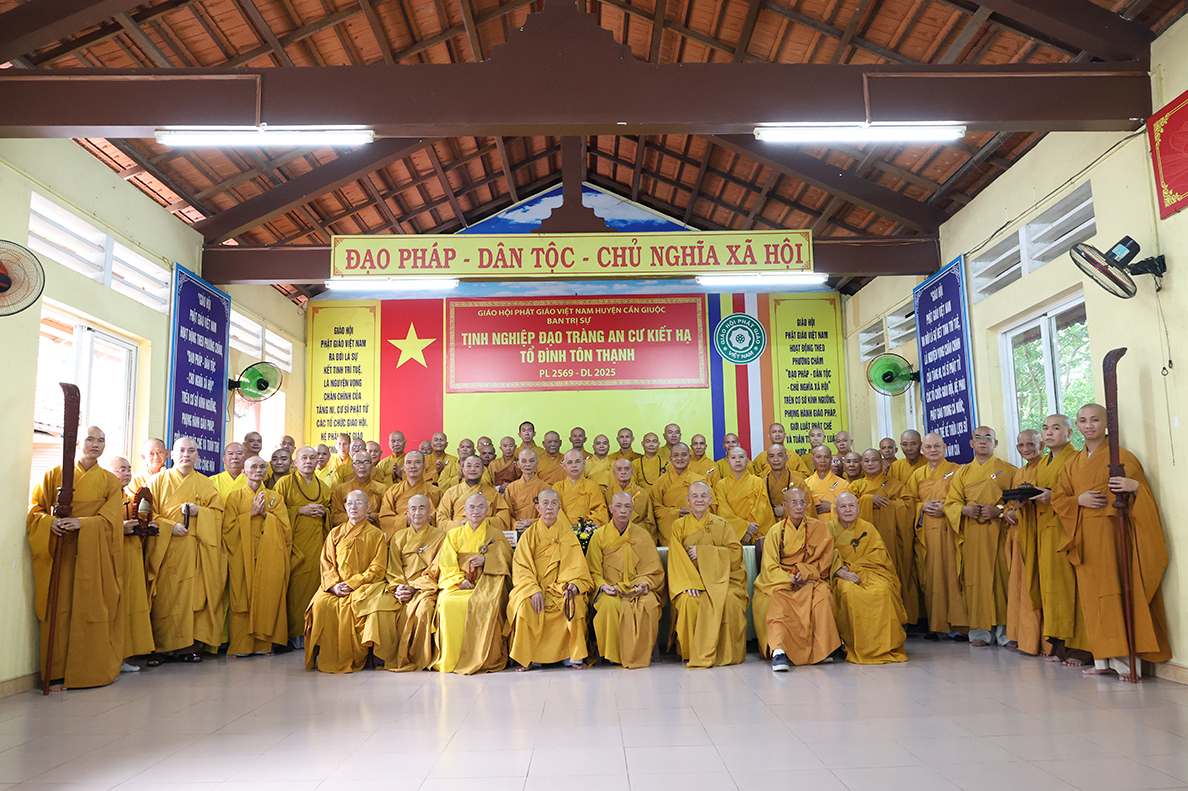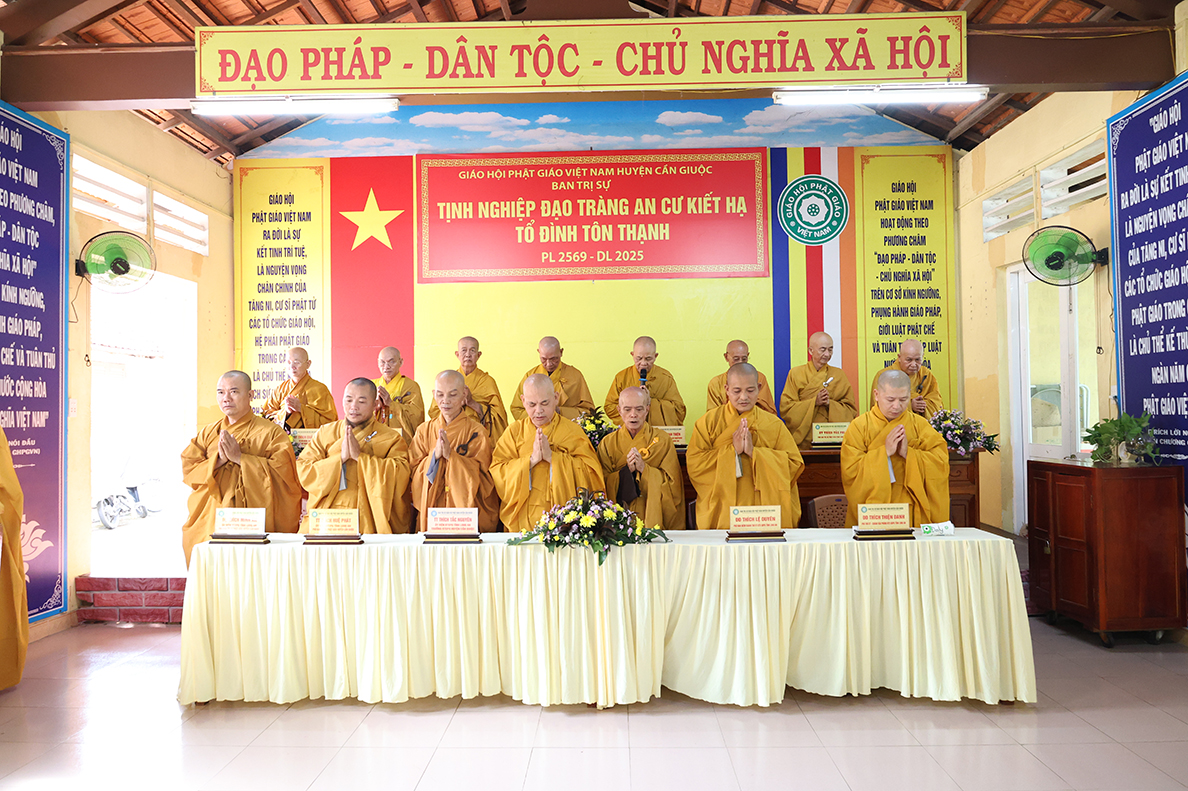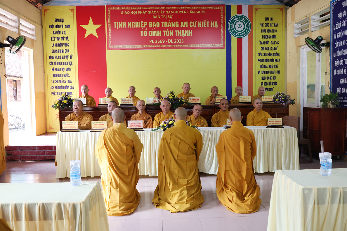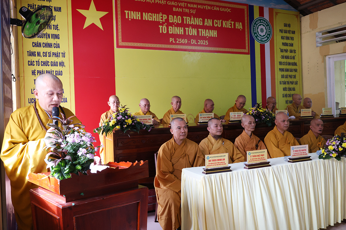 Quang lâm về chứng minh và tham dự buổi lễ có: Trưởng lão HT. Thích Thiện Huệ – Thành viên HĐCM, Chứng minh BTS GHPGVN tỉnh Long An; HT. Thích Thiện Tài – Chứng minh BTS GHPGVN tỉnh; HT. Thích Minh Thiện – UV HĐTS, Phó ban Hoằng pháp TƯ, Trưởng BTS GHPGVN tỉnh, Trưởng ban Chỉ đạo An cư Kiết hạ tỉnh Long An; TT. Thích Quảng Tâm – UV HĐTS, Phó Trưởng Ban Thường trực BTS GHPGVN tỉnh; HT. Thích Tắc Phi – Phó BTS kiêm Trưởng ban Pháp chế GHPGVN tỉnh; HT. Thích Huệ Bạch, HT. Thích Đạt Duyên, HT. Thích Tắc Nhàn – đồng chứng minh BTS GHPGVN huyện Cần Giuộc; ĐĐ. Thích Lệ Duyên – Phó ban kiêm Chánh Thư ký BTS GHPGVN tỉnh; TT. Thích Tắc Nguyên – UVTT BTS GHPGVN tỉnh, Trưởng BTS GHPGVN huyện Cần Giuộc; Chư tôn đức Ban Thường trực BTS GHPGVN tỉnh Long An, huyện Cần Giuộc, Chư tôn đức là hành giả an cư về tham dự.