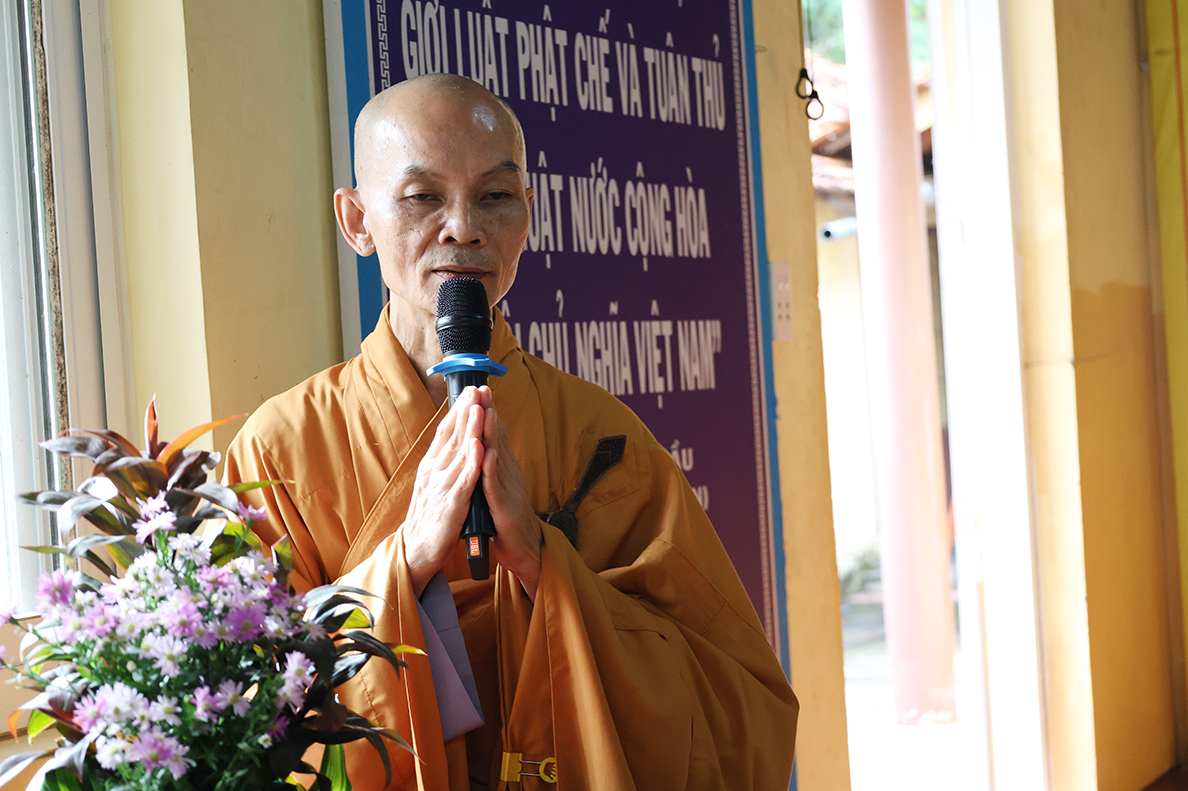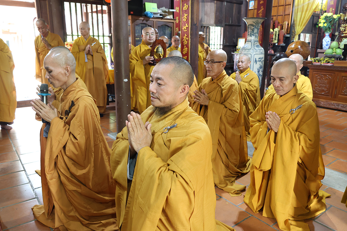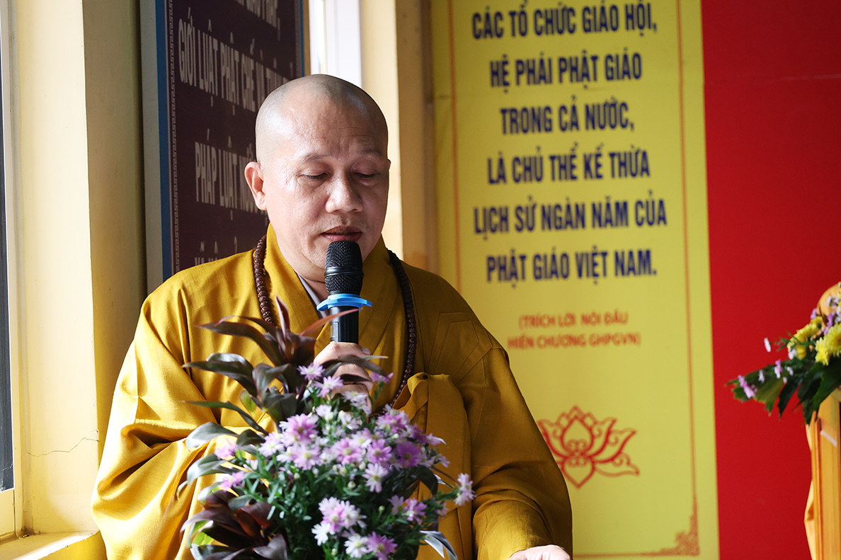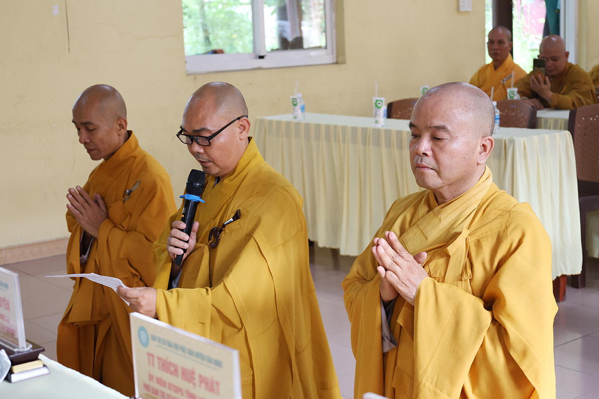 Tiếp đó, TT Thích Tắc Nhiên đại diện Chư hành giả an cư đã dâng lời phát nguyện tri ân sâu sắc đến Chư Tôn đức Giáo phẩm các cấp đã từ bi tạo điều kiện thuận duyên cho hành giả an cư tu học trong ba tháng. Đồng thời, chư hành giả cũng y cứ theo Thanh quy và thời khóa đã định để tinh tấn hành trì, giữ gìn giới luật, thúc liễm thân tâm, trau dồi Giới – Định – Tuệ.
