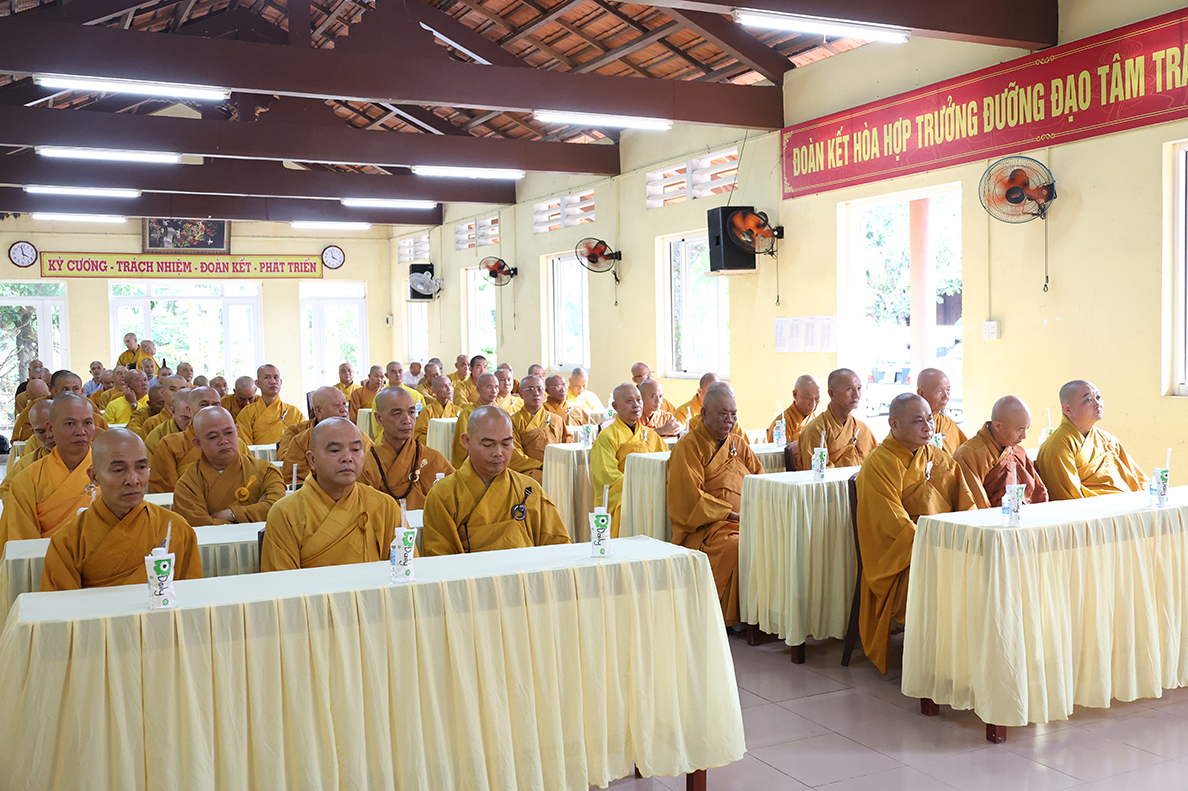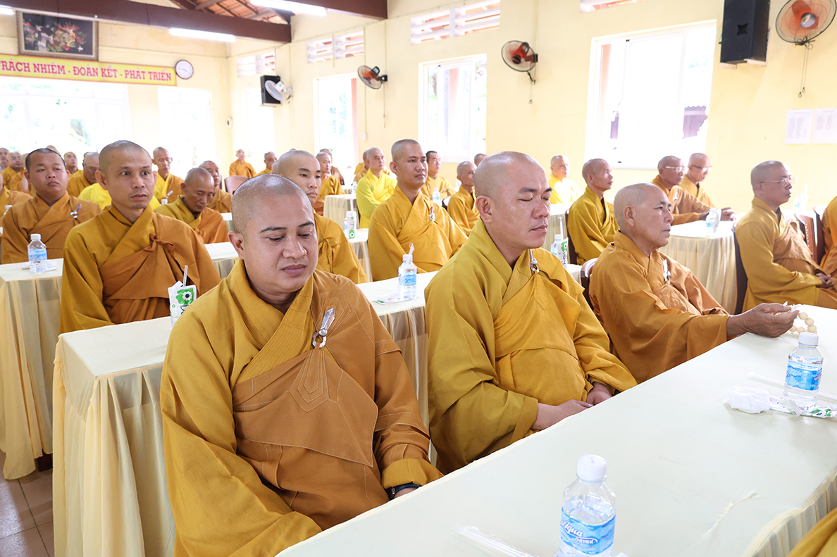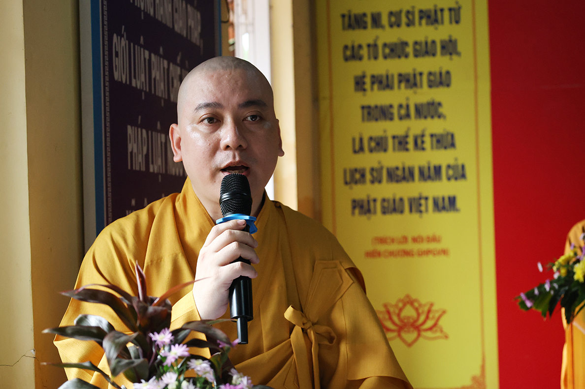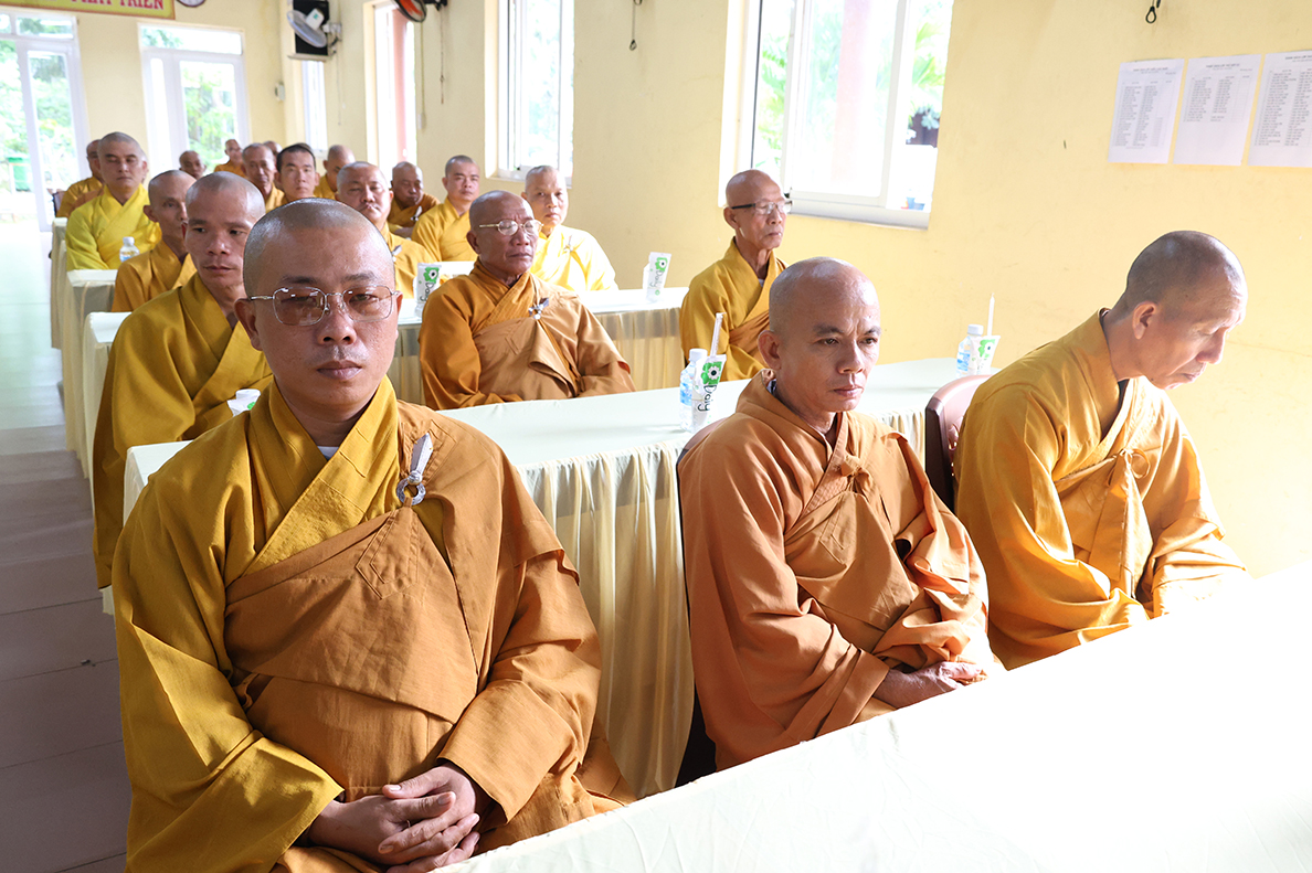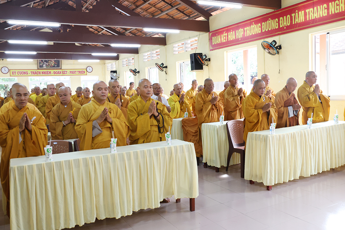 Tiếp đó, TT Thích Tắc Nhiên đại diện Chư hành giả an cư đã dâng lời phát nguyện tri ân sâu sắc đến Chư Tôn đức Giáo phẩm các cấp đã từ bi tạo điều kiện thuận duyên cho hành giả an cư tu học trong ba tháng. Đồng thời, chư hành giả cũng y cứ theo Thanh quy và thời khóa đã định để tinh tấn hành trì, giữ gìn giới luật, thúc liễm thân tâm, trau dồi Giới – Định – Tuệ.
