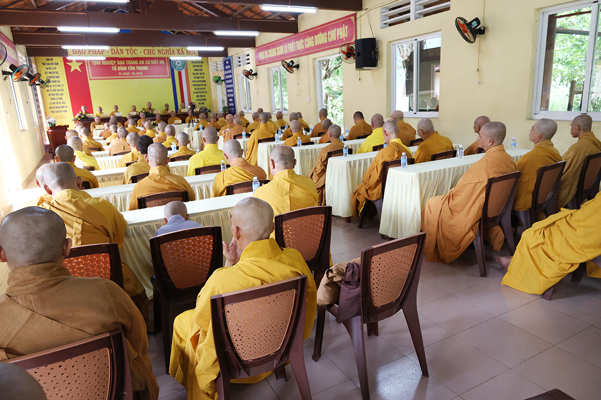 Đãi lao Hòa thượng Luật sư ban lời giáo giới đến chư hành giả, Hòa thượng Thích Minh Thiện đã ân cần sách tấn, động viên Ban Chức sự Hạ trường và tán thán công đức của chư hành giả đã vân tập về Tổ đình Tôn Thạnh để thực hiện truyền thống An cư. Hòa thượng nhấn mạnh rằng An cư là một truyền thống cao đẹp của Tăng đoàn, là dòng suối pháp thanh lương nuôi dưỡng thân tâm và huệ mạng của người xuất gia. Do đó, Hòa thượng mong mỏi chư hành giả tuân theo Thanh quy thời khóa, trau dồi Giới – Định – Tuệ, giữ gìn pháp bảo Như Lai, làm cho chánh pháp được trường tồn, tạo duyên lành cho chúng sanh nương tựa Tam bảo và gieo trồng hạt giống Bồ-đề ngõ hầu tăng trưởng một hạ lạp và thành tựu tất cả các phước duyên trong suốt thời gian an cư tu học.