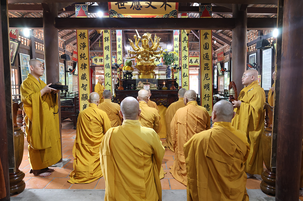 Trước khi tiến hành lễ Khai hạ An cư, đại chúng cùng vân tập về nơi Tổ đường niêm hương cẩn bạch và đảnh lễ chư vị Tổ sư, sau đó quang lâm về nơi chánh điện cử niêm hương bạch Phật, đại chúng cùng đảnh lễ Tam Bảo.