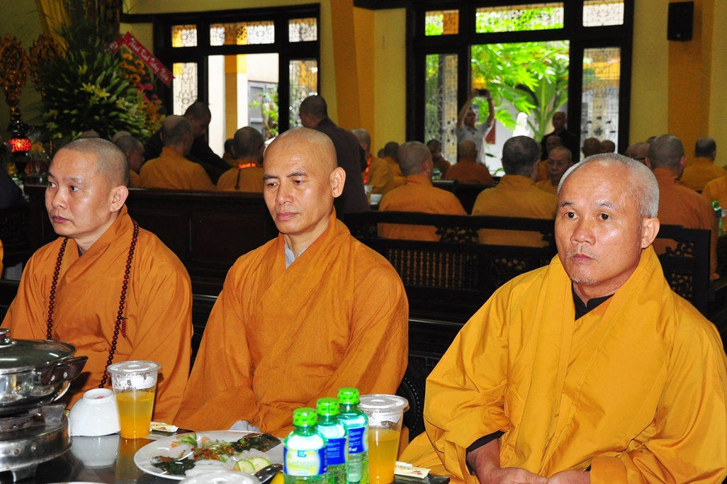 Sau nghi thức tưởng niệm, TT Thích Thanh Phong: Trưởng ban KTTC TƯ, Trụ trì tổ đình Vĩnh Nghiêm và môn đồ pháp quyến cung thỉnh Chư Tôn đức Tăng Ni quang lâm trai đường chứng minh lễ cúng dường trai tăng.